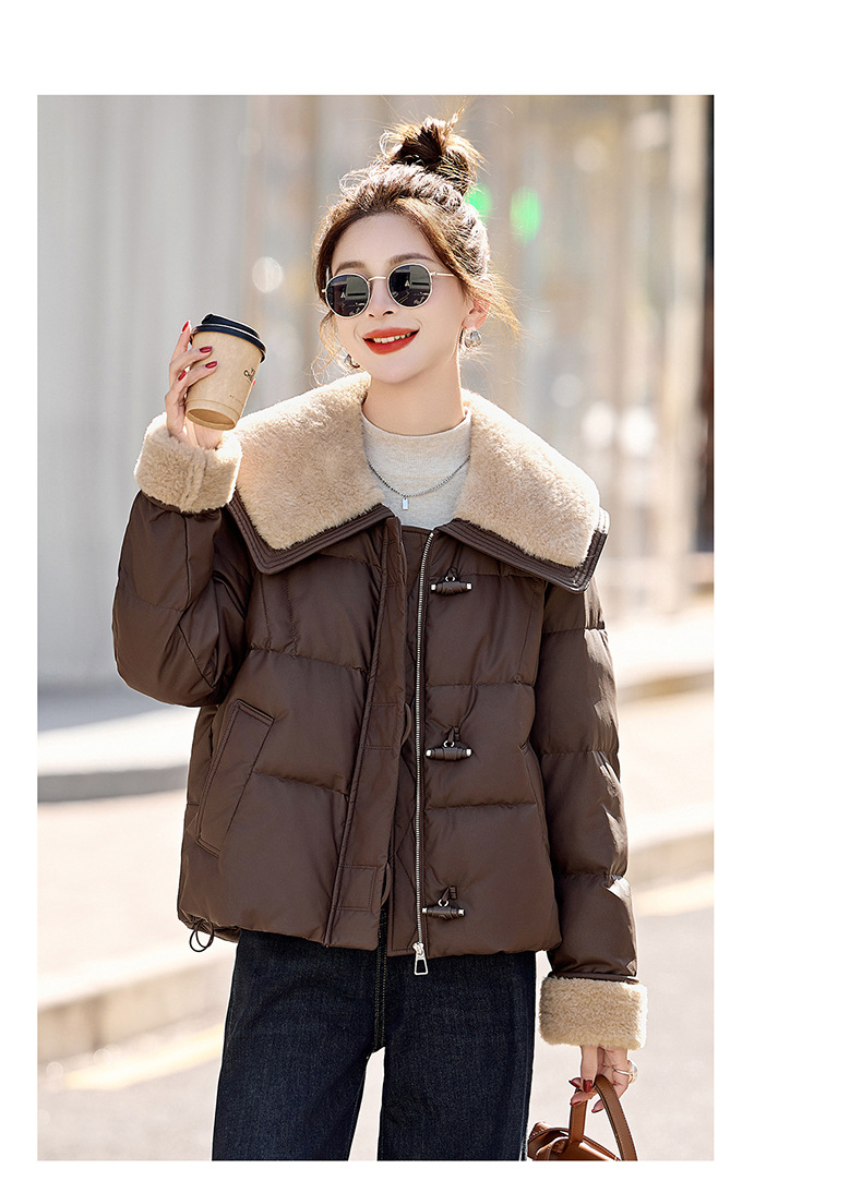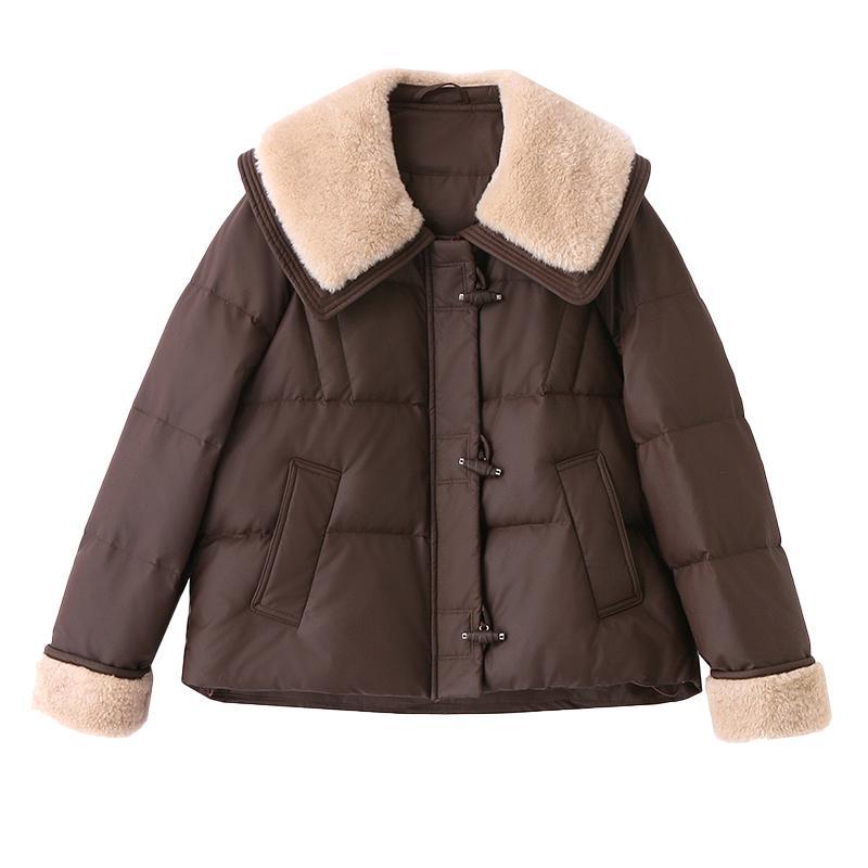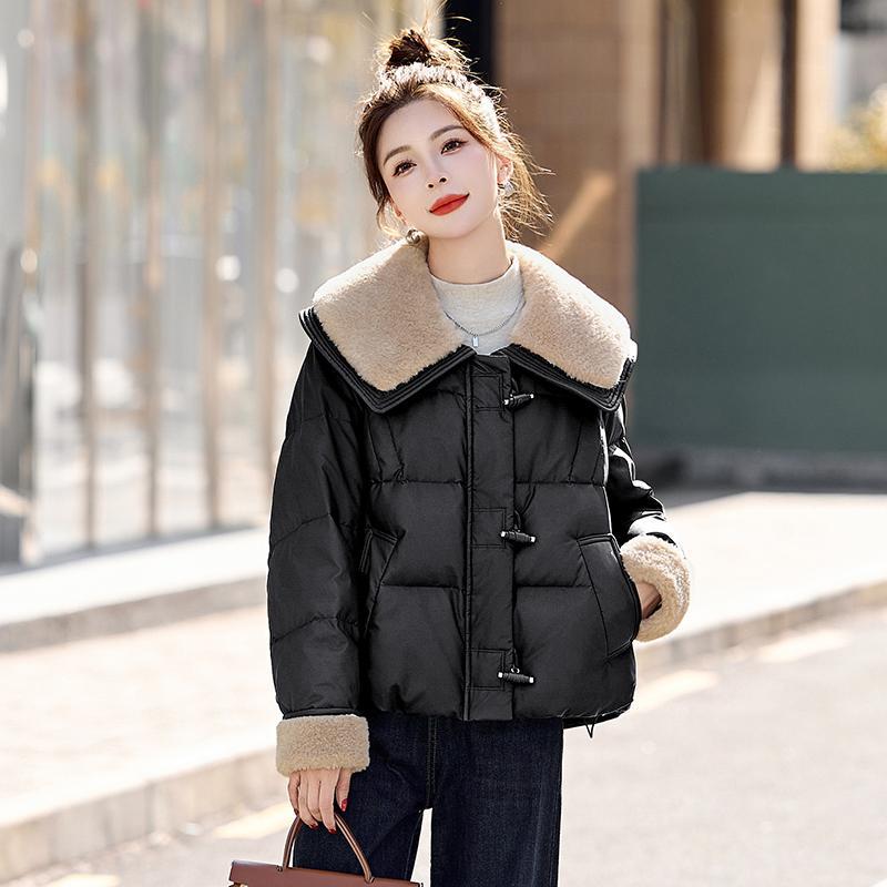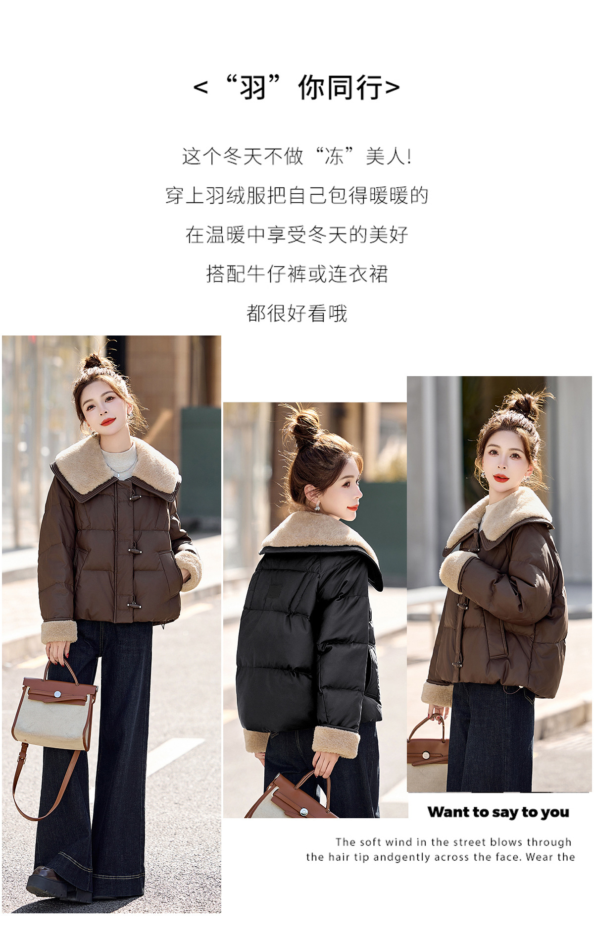 여성용 짧은 다운 재킷 2025년 겨울 신상품, 작은 체형을 위한 고급스럽고 세련된 디자인의 두꺼운 화이트 덕다운 코트