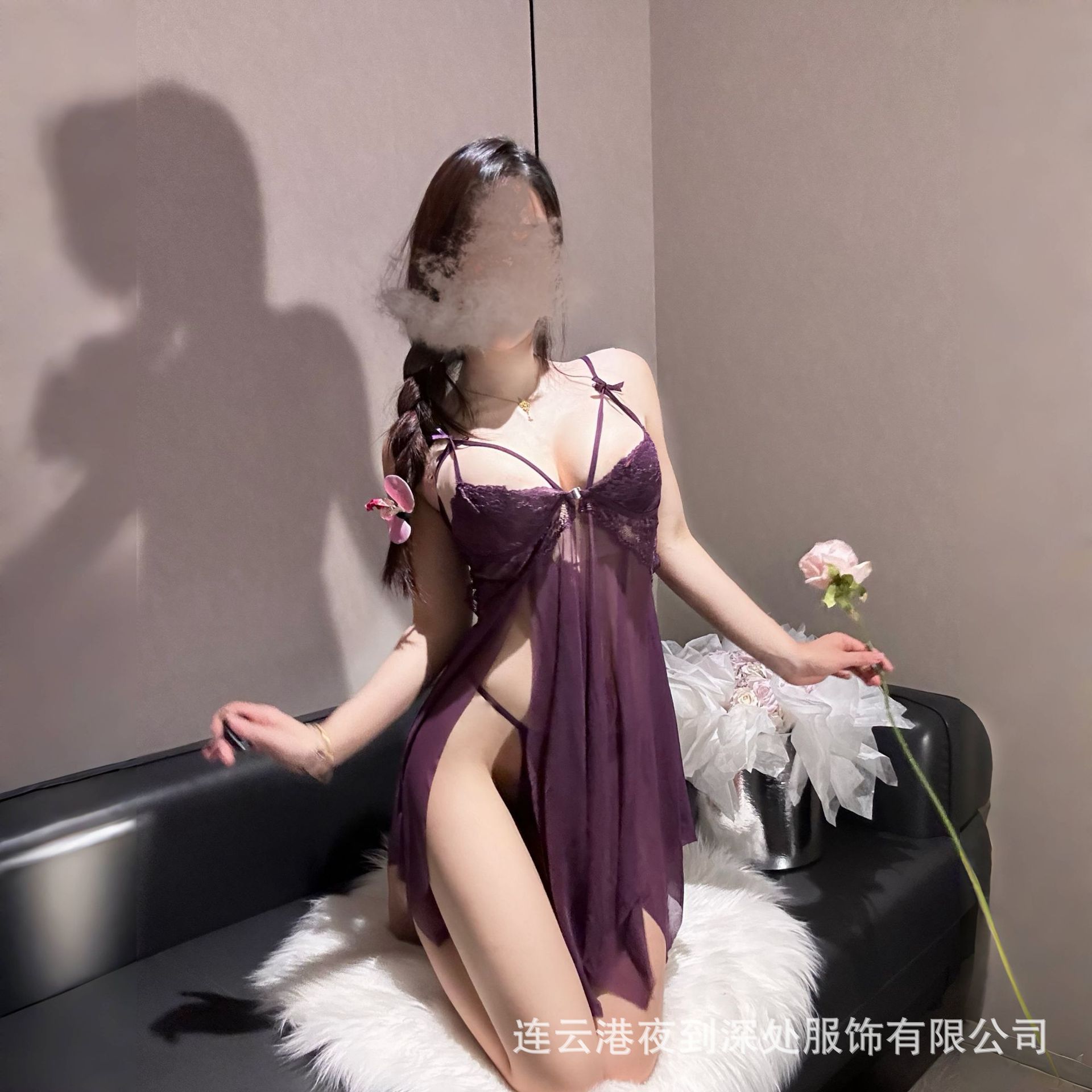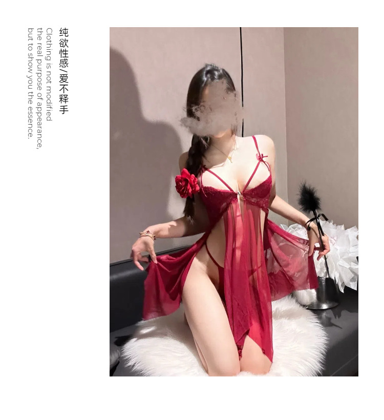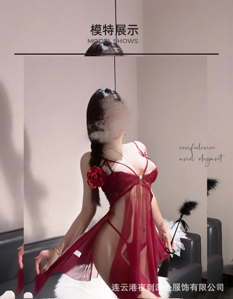 밤부터 깊은 섹시 속옷 섹시 레이스 유혹 스트랩 나이트 드레스 핫 할로우 꽃 꽃잎 스커트 여성의 투명 잠옷
