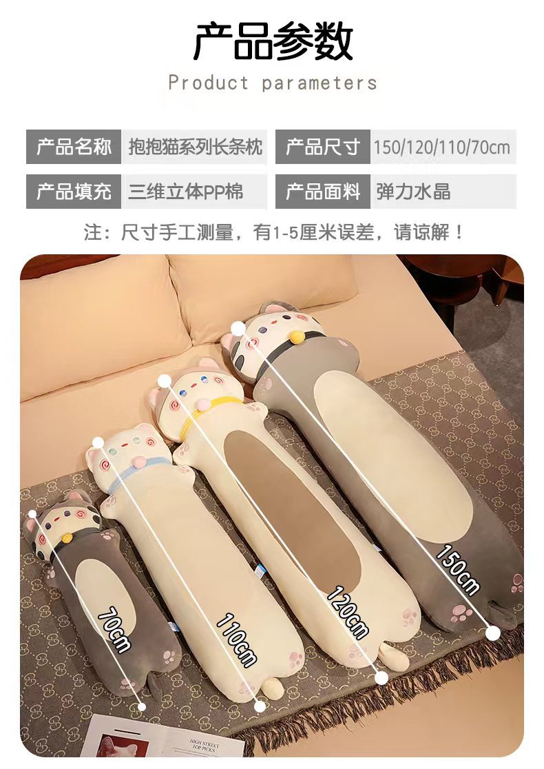 국경 간 포옹 고양이 시리즈 긴 베개 고양이 인형 어린이 수면 편안한 장난감 잠자는 인형 도매