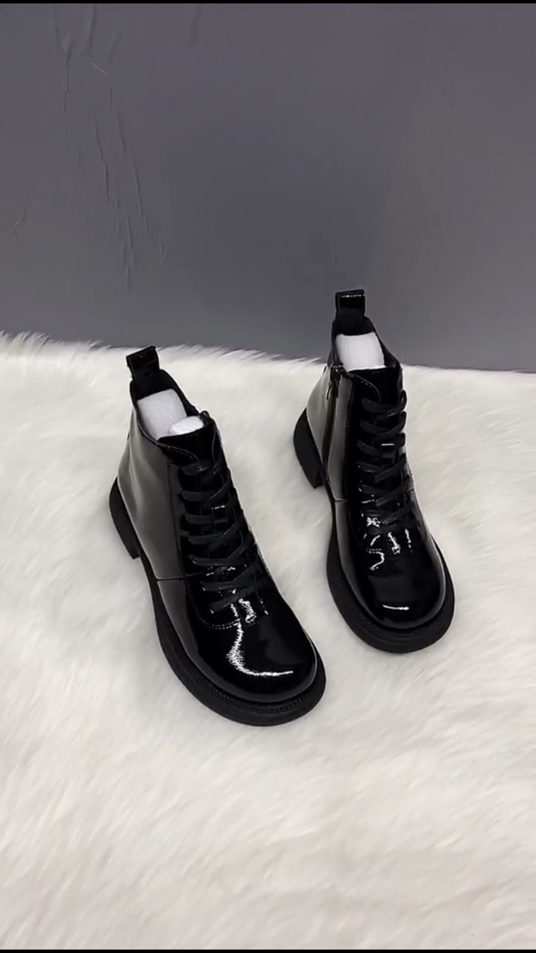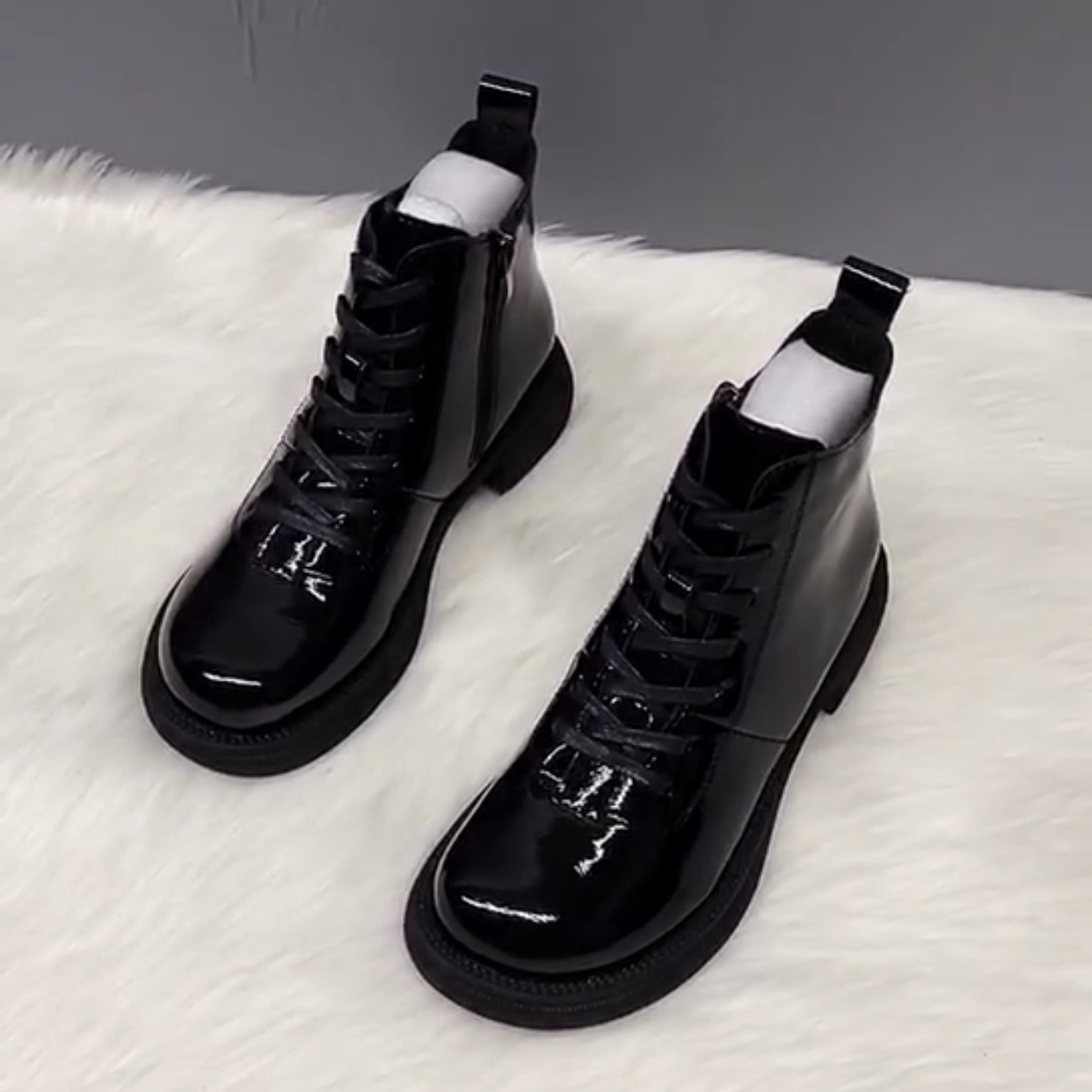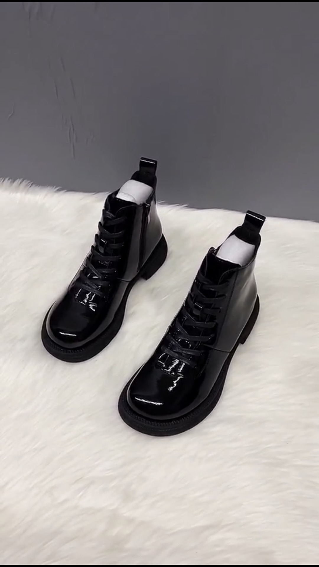 외국식 마틴 부츠 여성 영국 가을과 겨울 새로운 레이스 업 망고 헤드 쇼트 부츠 청키 힐 플랫 스프링 싱글 부츠 기모 코튼 부츠