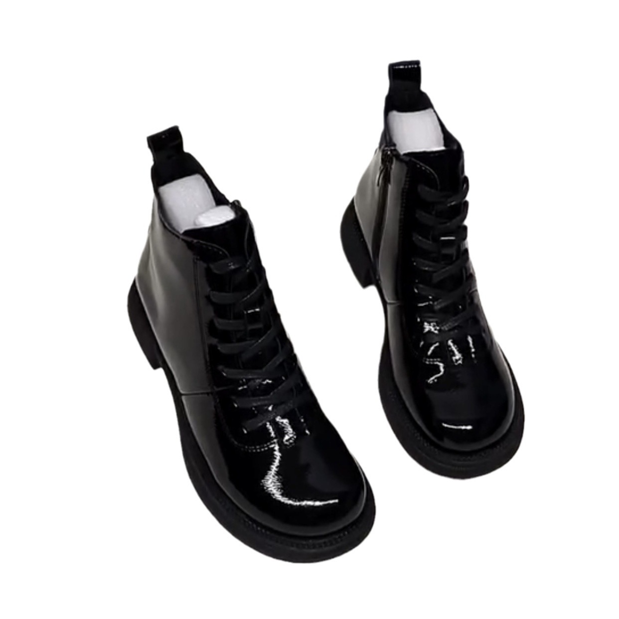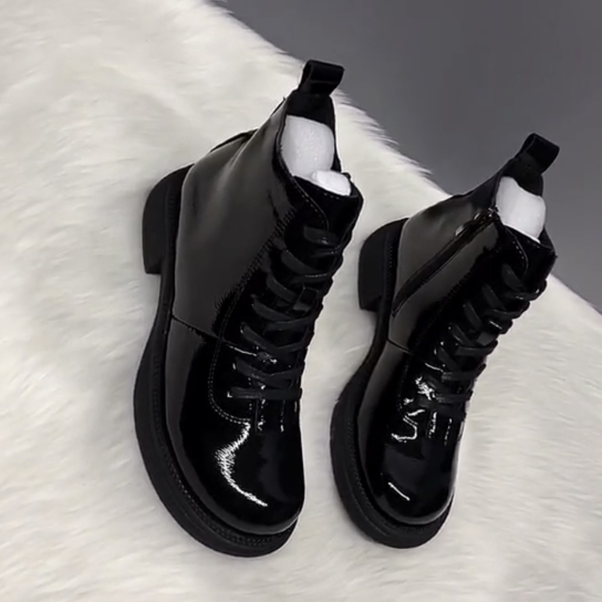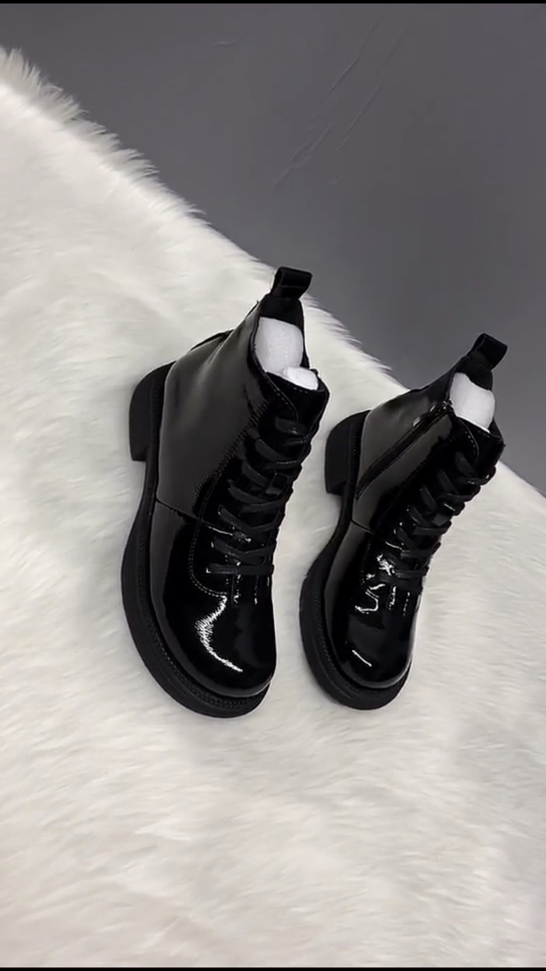 외국식 마틴 부츠 여성 영국 가을과 겨울 새로운 레이스 업 망고 헤드 쇼트 부츠 청키 힐 플랫 스프링 싱글 부츠 기모 코튼 부츠