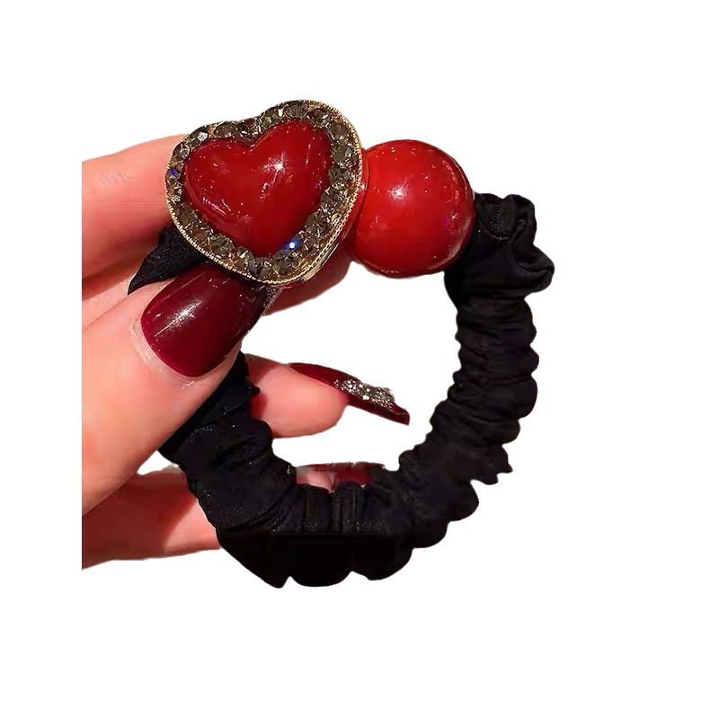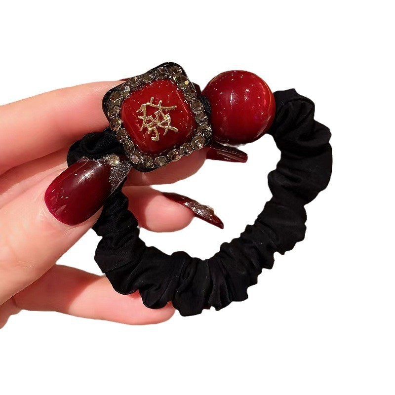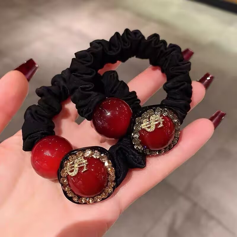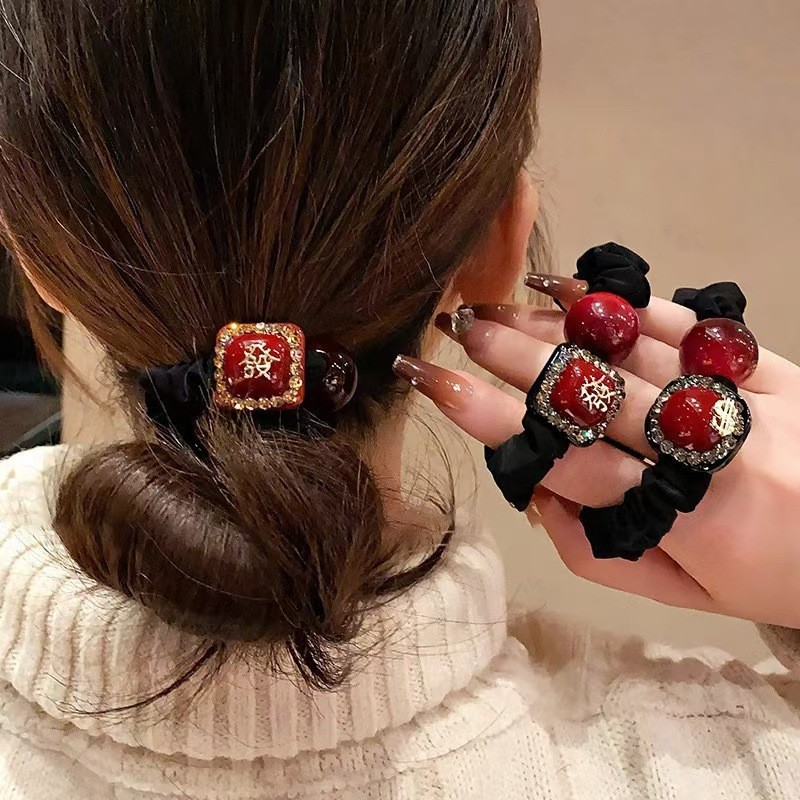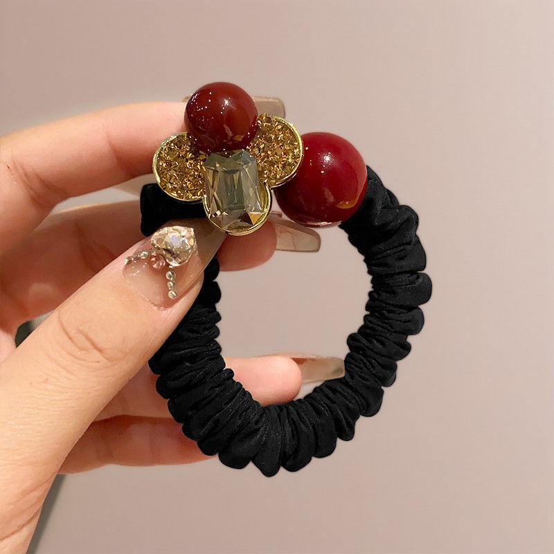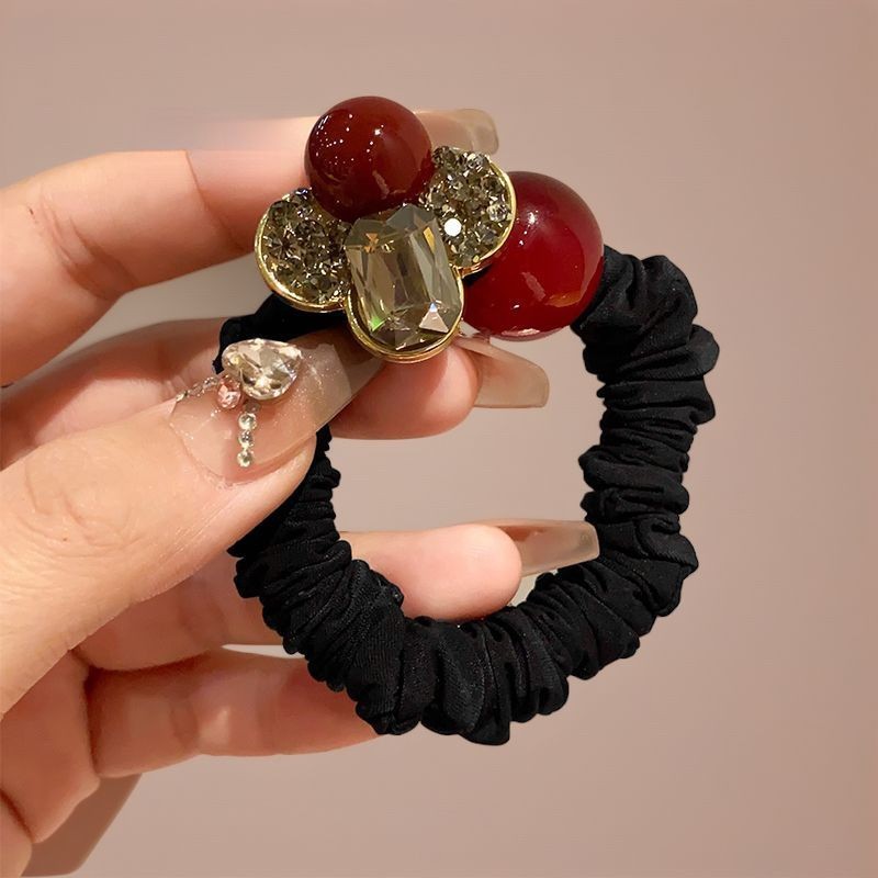 축제적인 작은 장 모양의 머리끈, 심플하고 우아한 여성용 헤어끈, 고급스러운 한국 스타일, 다용도 포니테일 헤어 액세서리, 고탄성 라인스톤