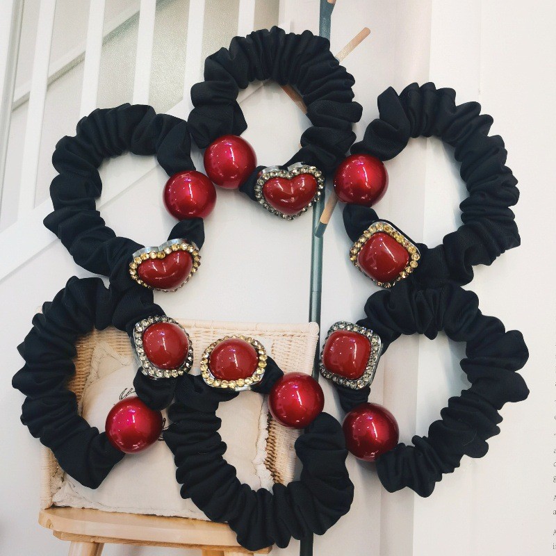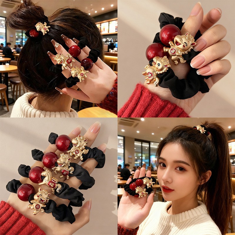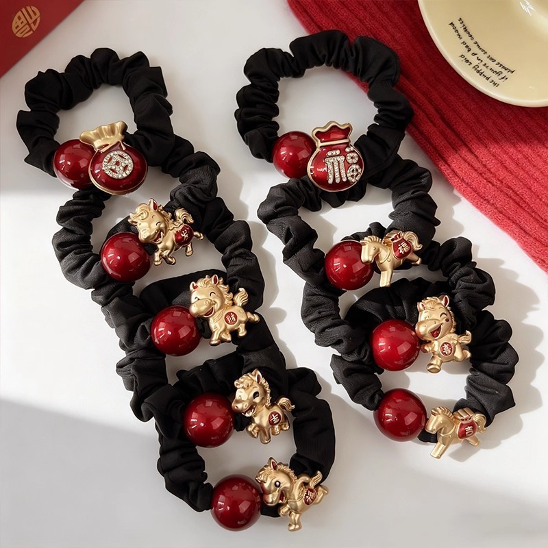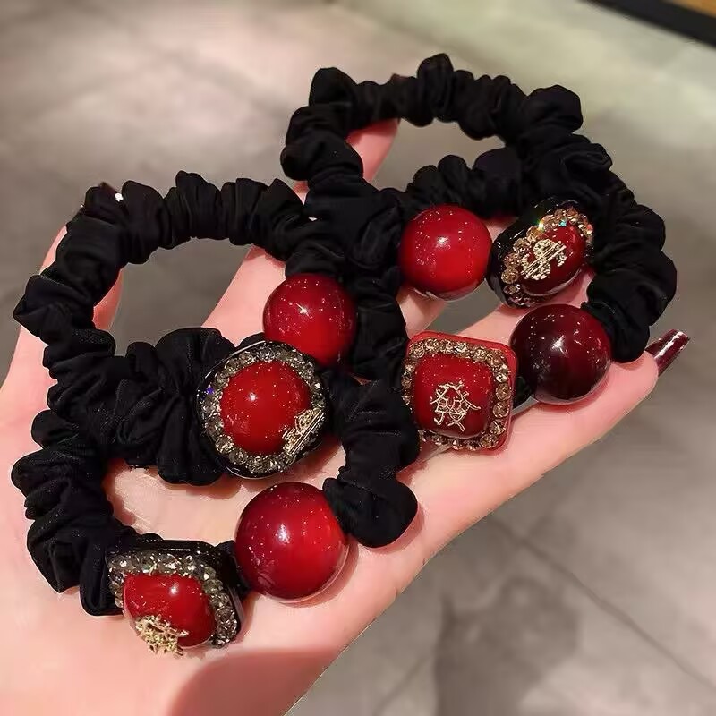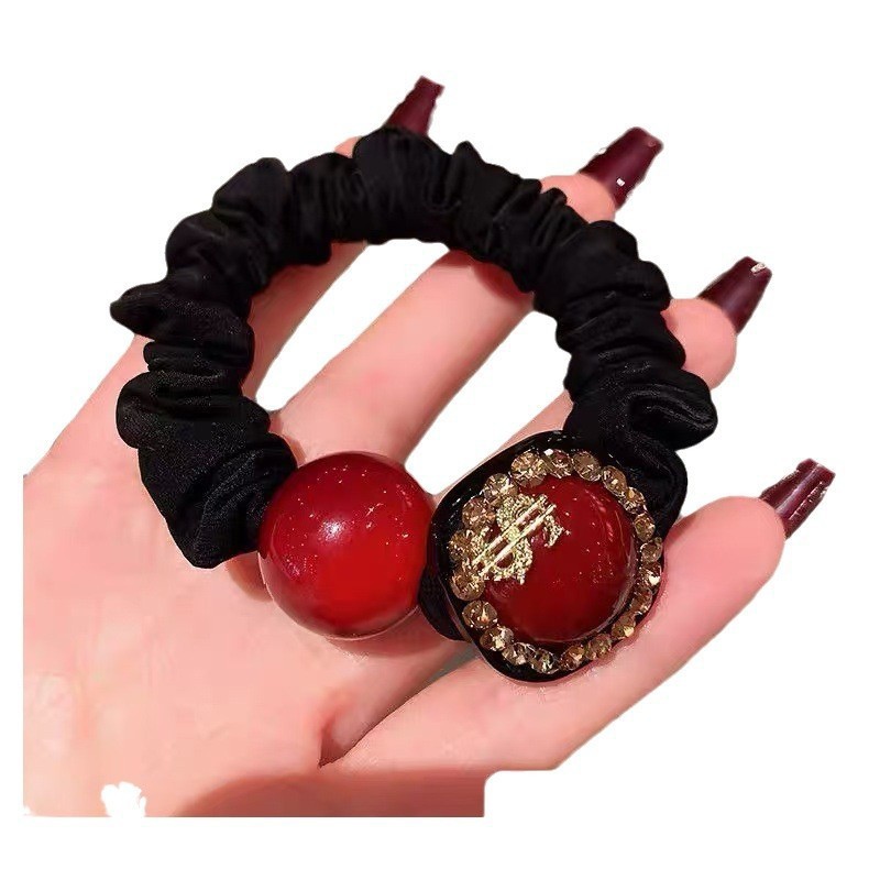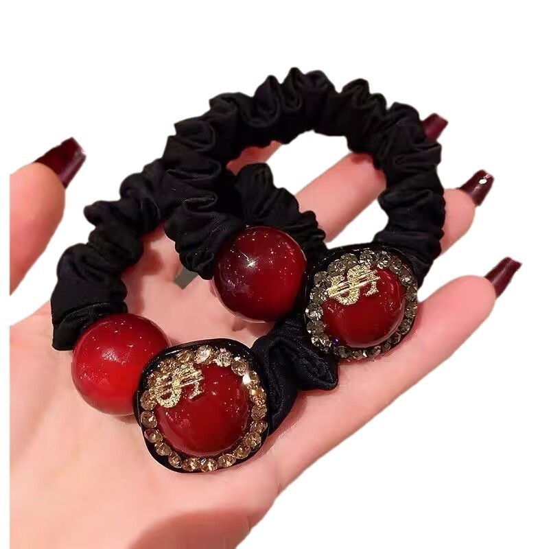 축제적인 작은 장 모양의 머리끈, 심플하고 우아한 여성용 헤어끈, 고급스러운 한국 스타일, 다용도 포니테일 헤어 액세서리, 고탄성 라인스톤