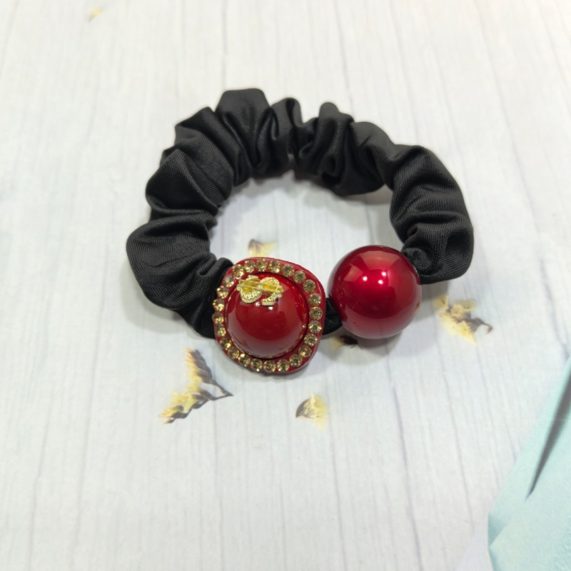 $-샴페인 라인스톤 건 그레이 하단 머리끈
