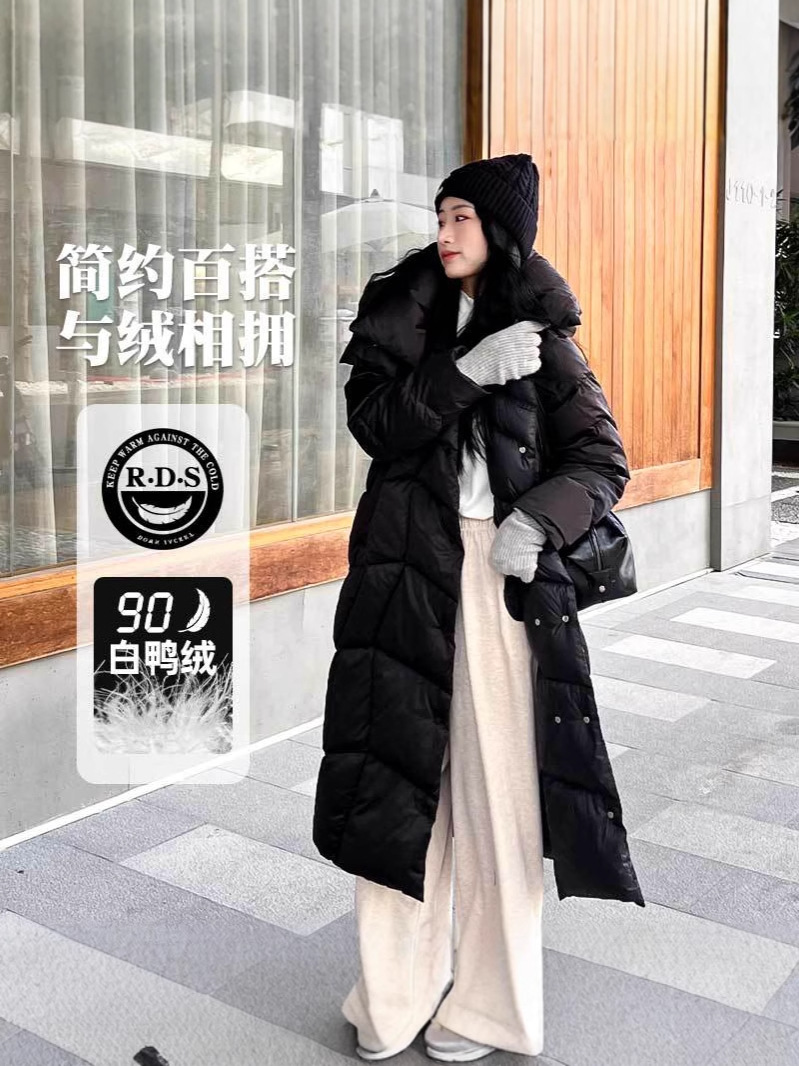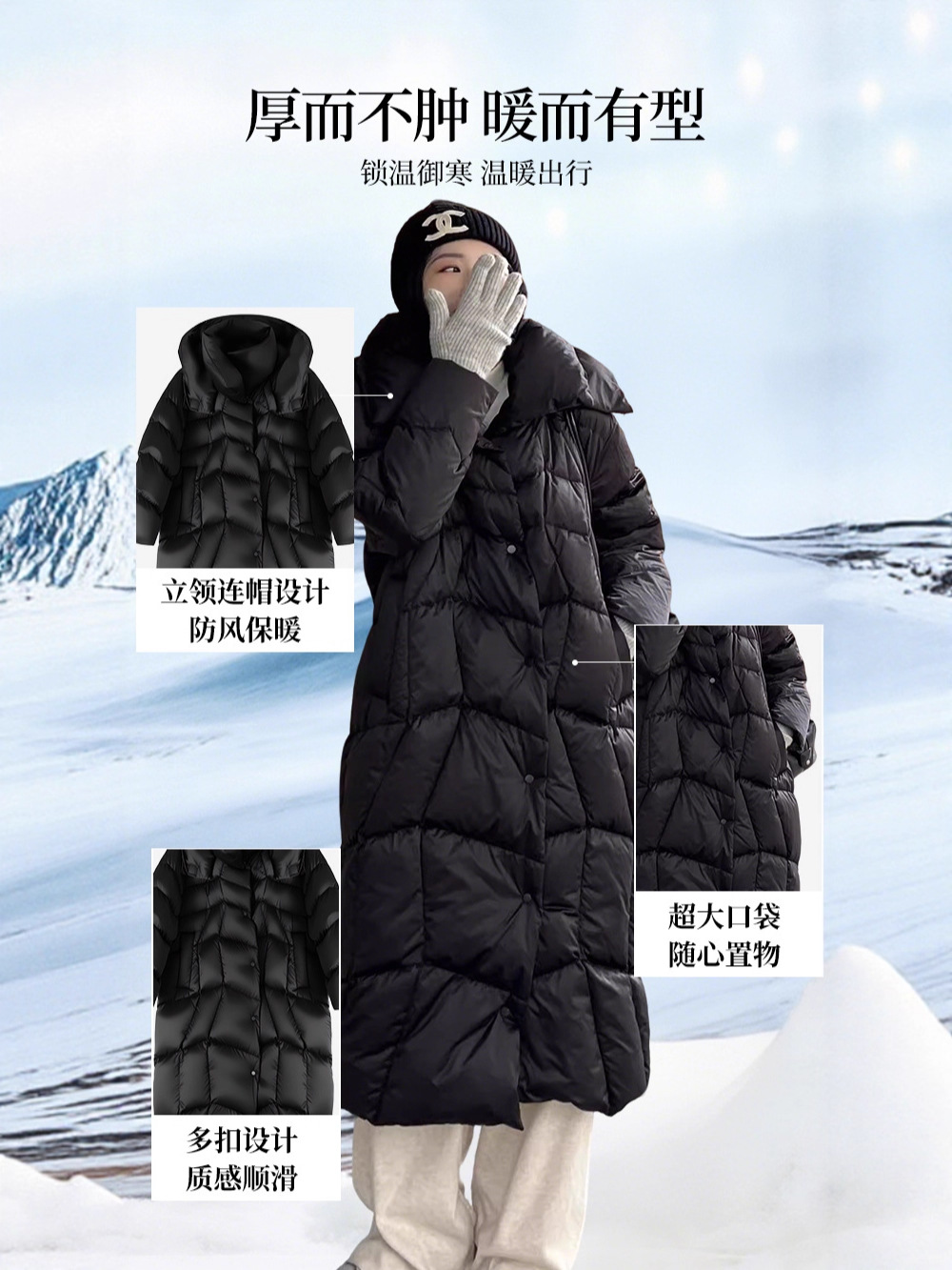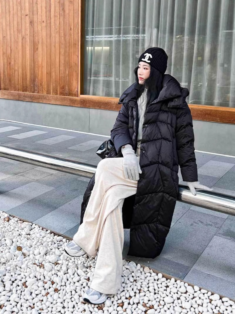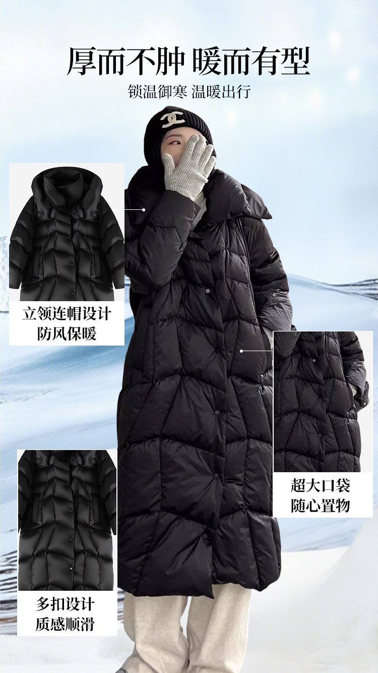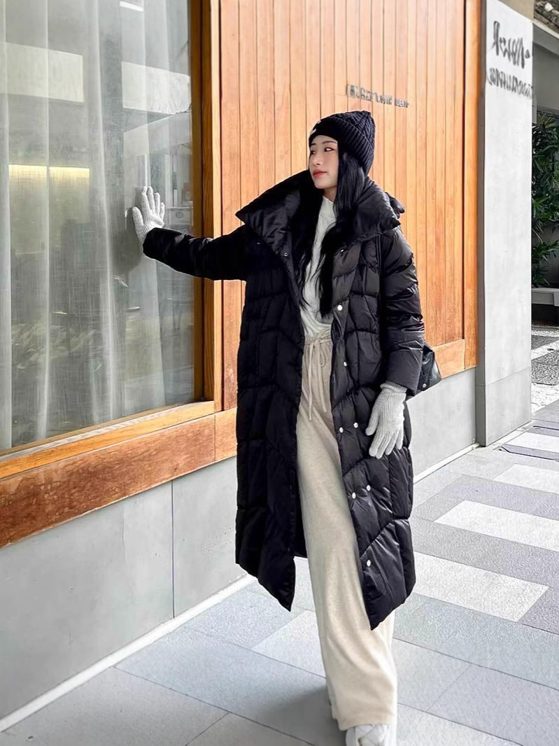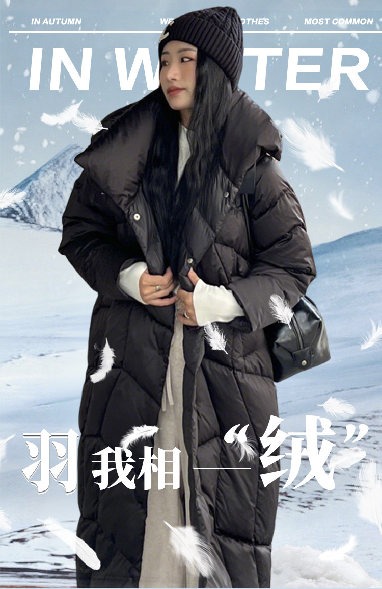 2025 겨울 신상품 같은 스타일의 무릎 위까지 오는 코트 블랙 두꺼운 롱 스타일 큰 카라 여성용 다운 재킷