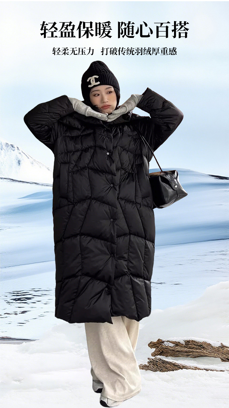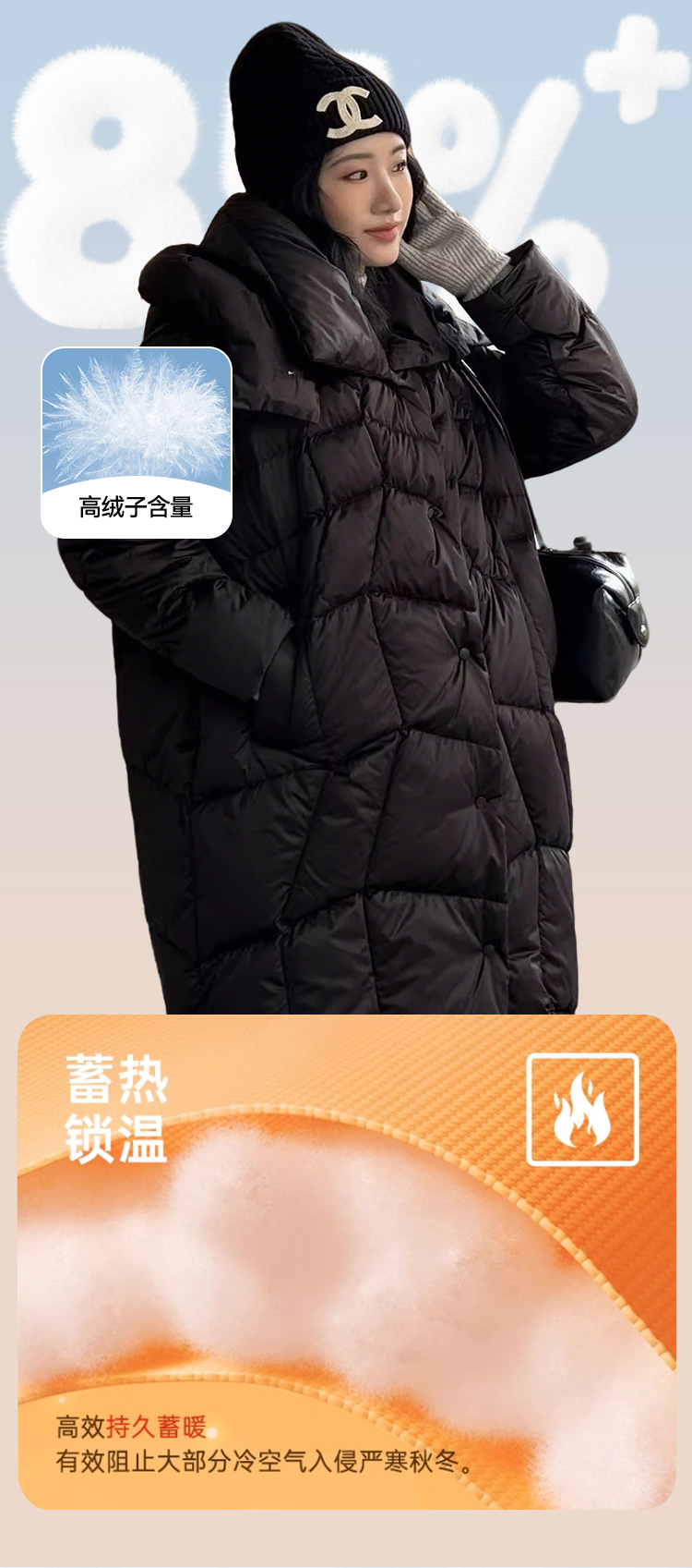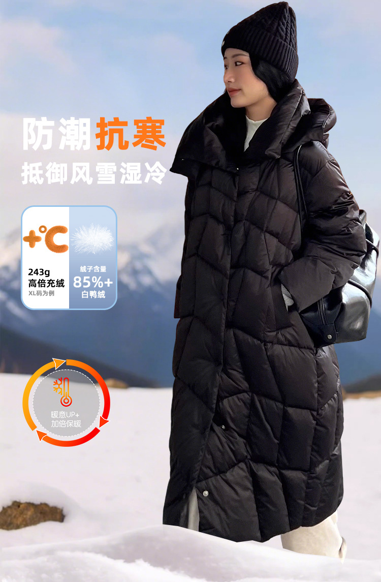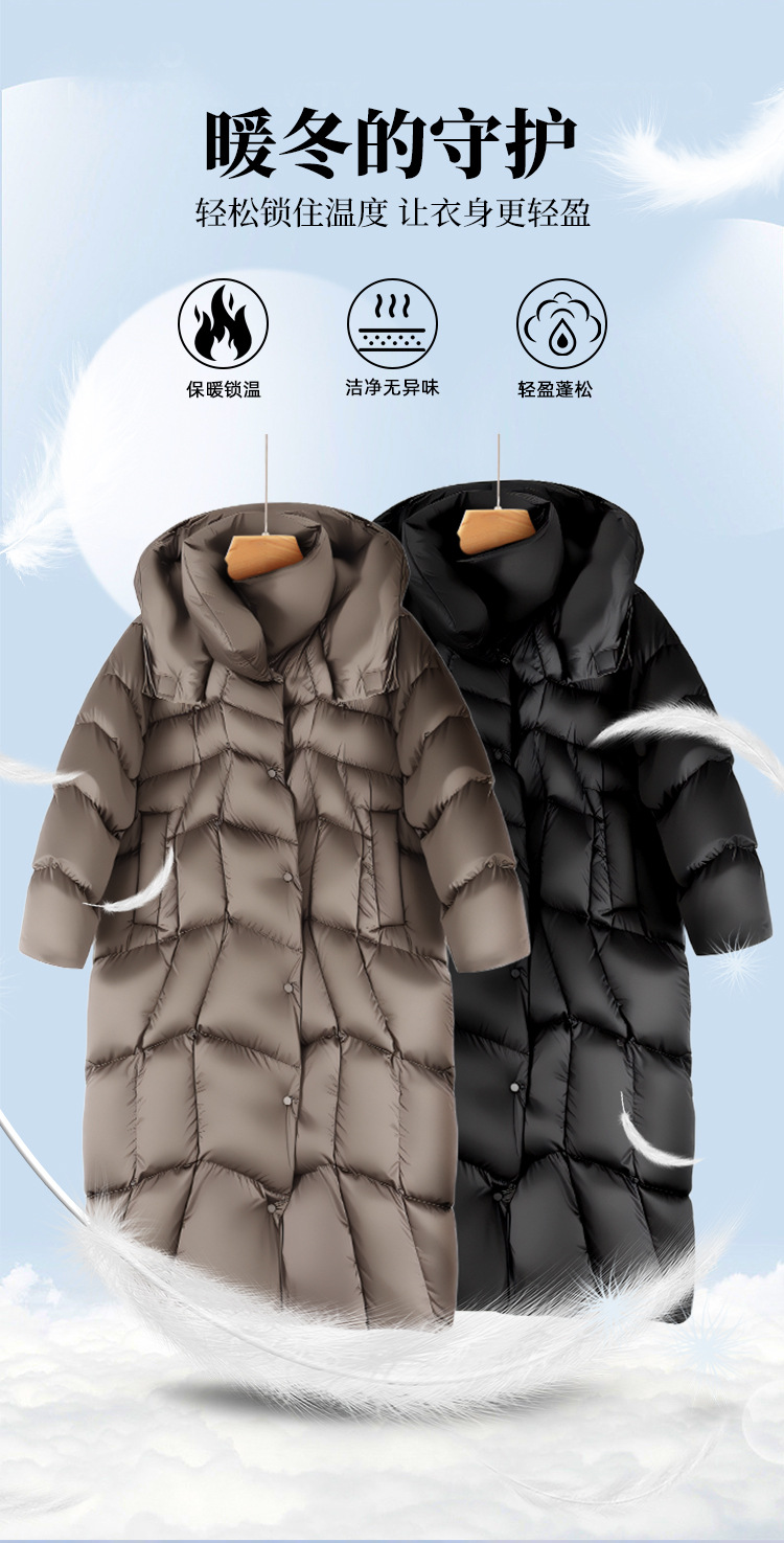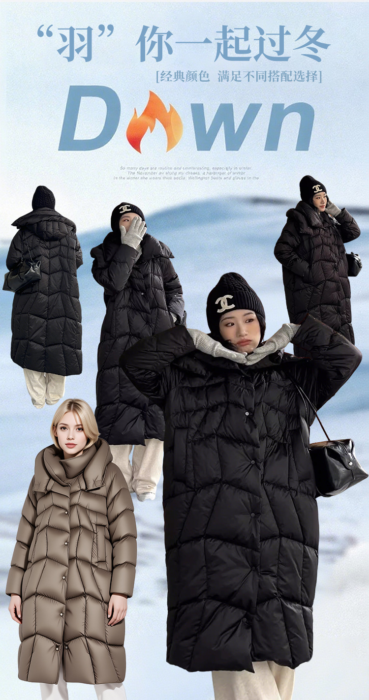 2025 겨울 신상품 같은 스타일의 무릎 위까지 오는 코트 블랙 두꺼운 롱 스타일 큰 카라 여성용 다운 재킷