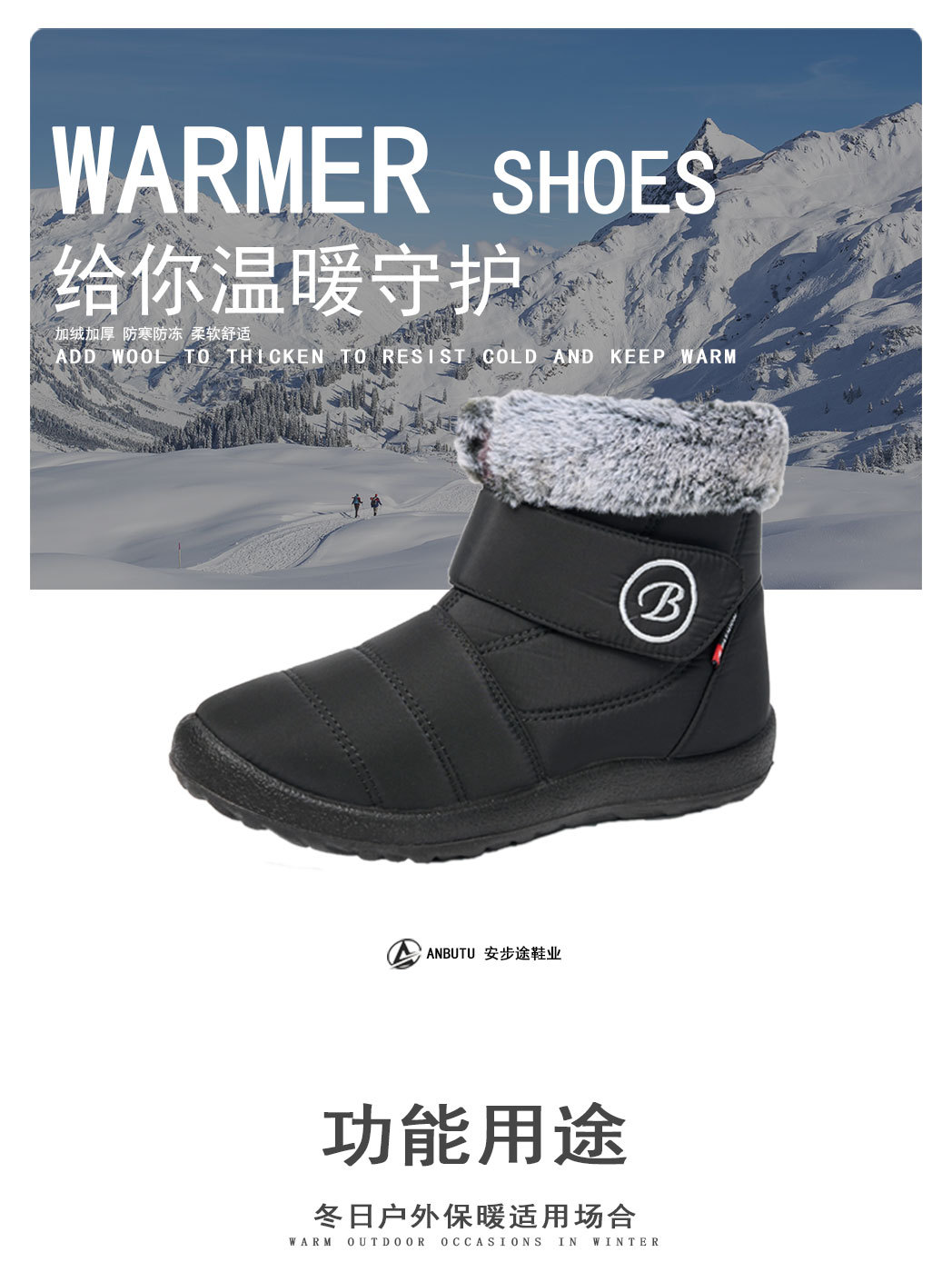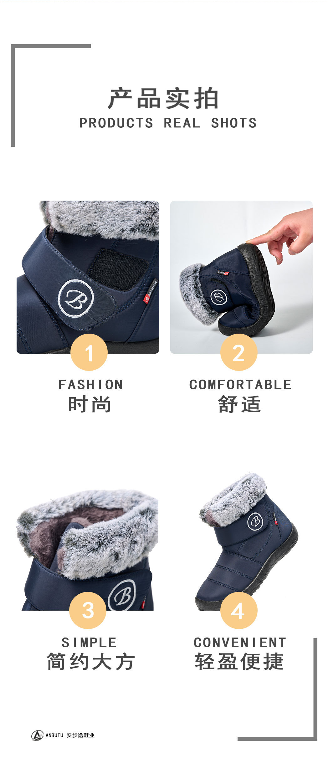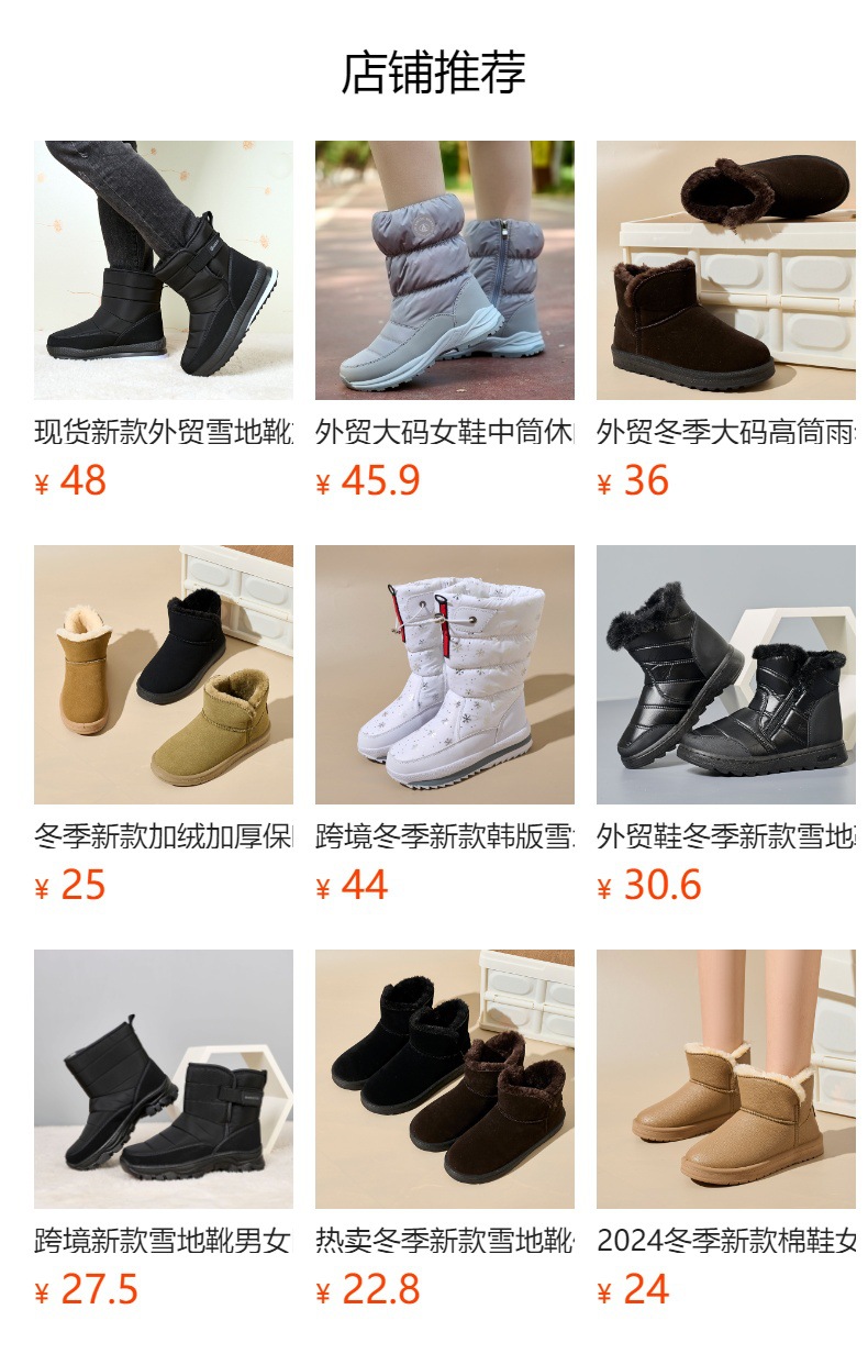 跨境保暖软底轻盈女鞋 冬季新款现货外贸棉鞋中筒加绒加厚雪地靴