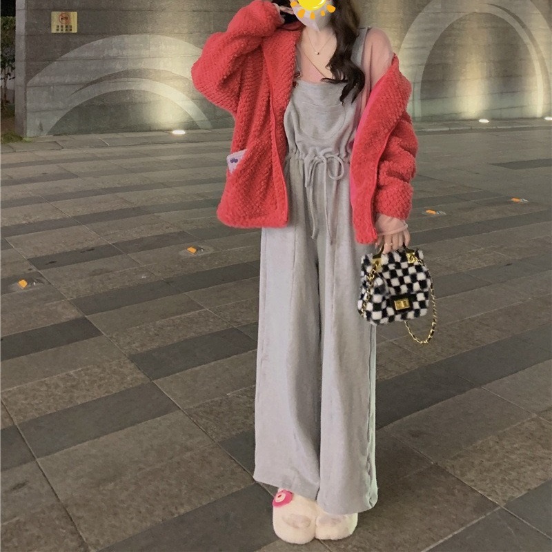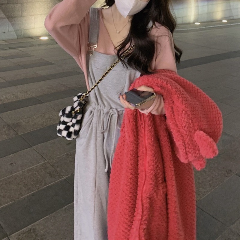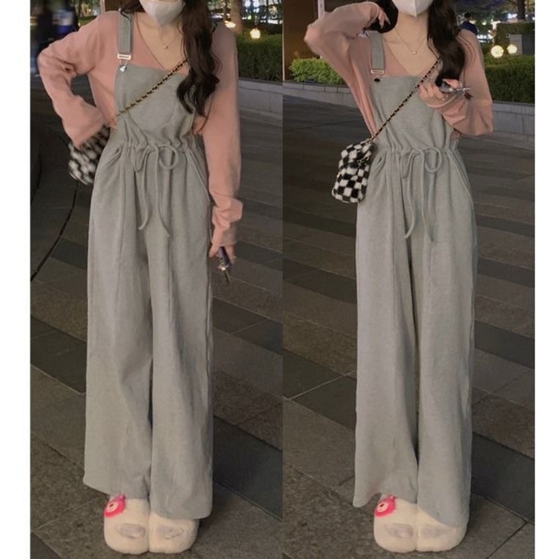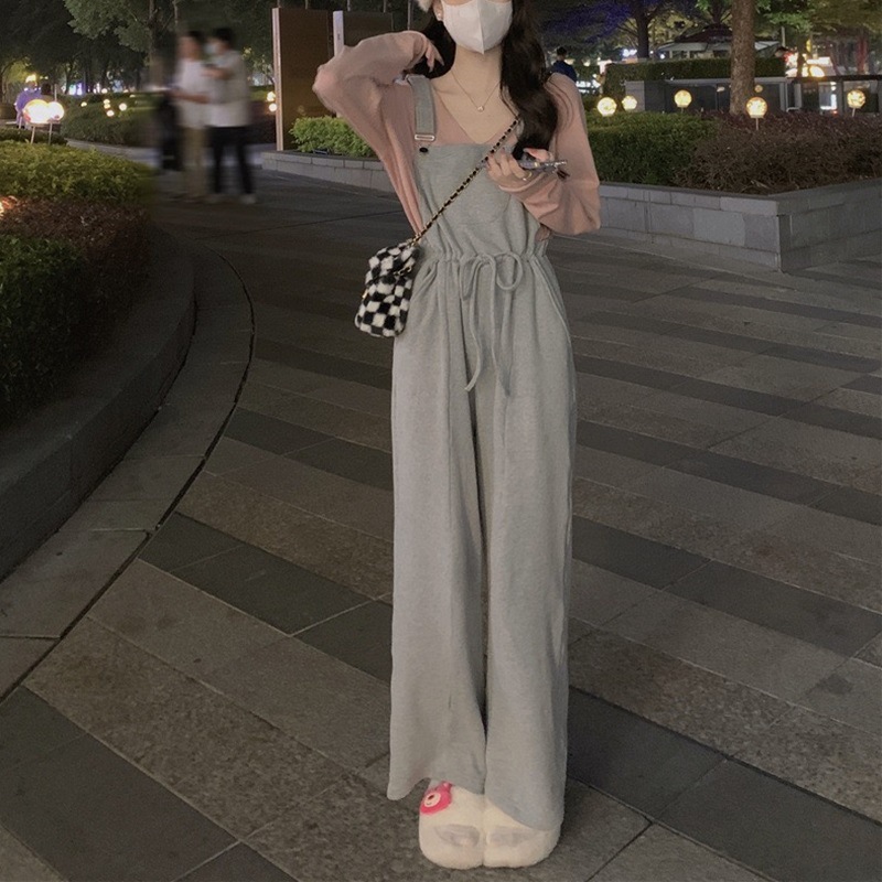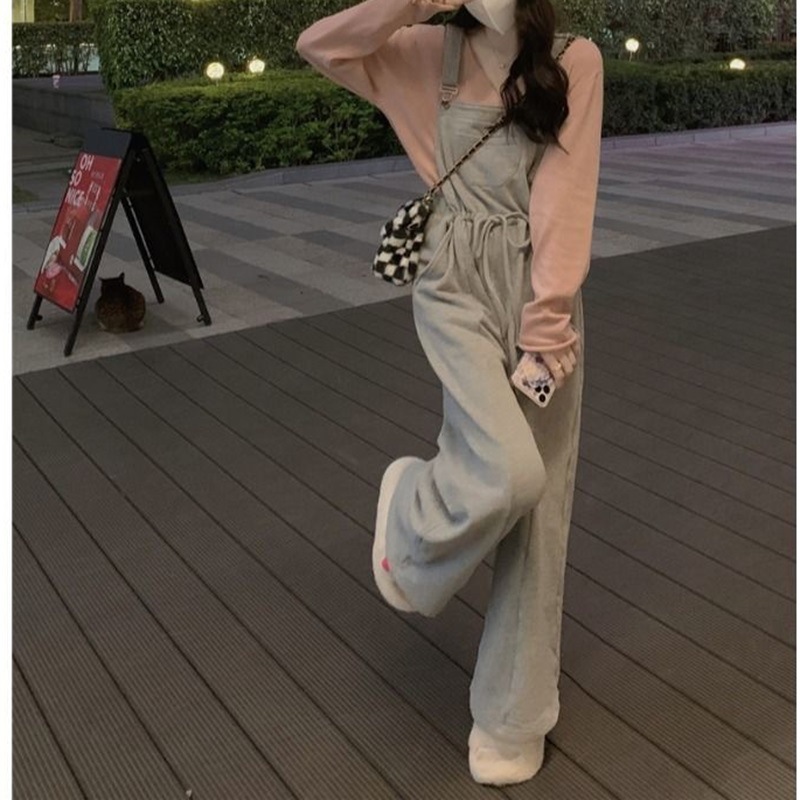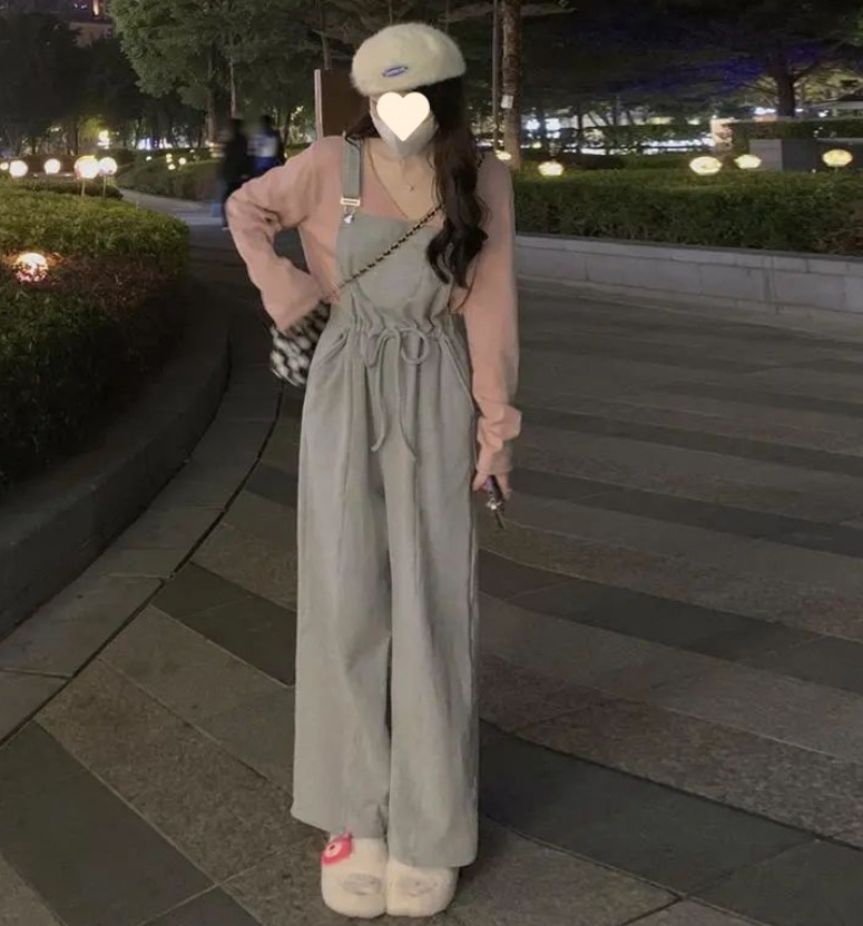 작은 사람은 긴 소매 티셔츠 바닥 셔츠를 입고 멜빵 투피스 야외 캐주얼 세트 여성 의류 헤어 세대