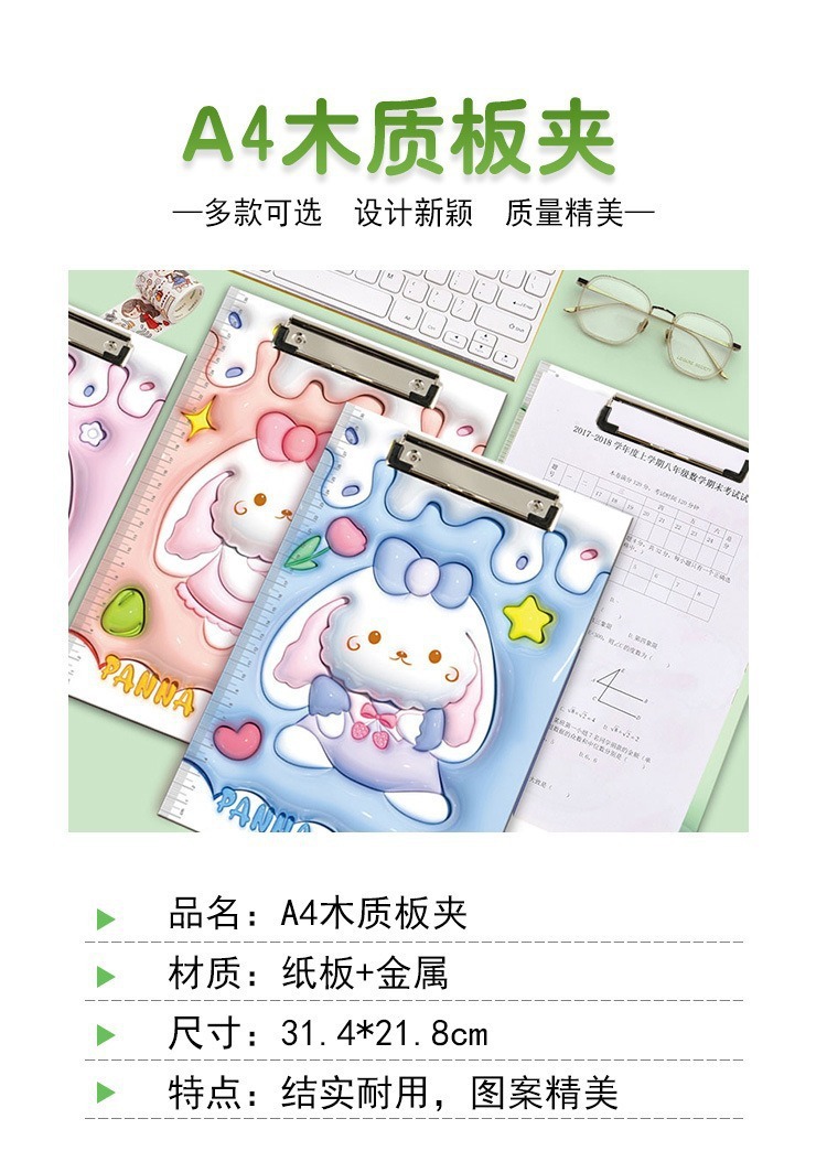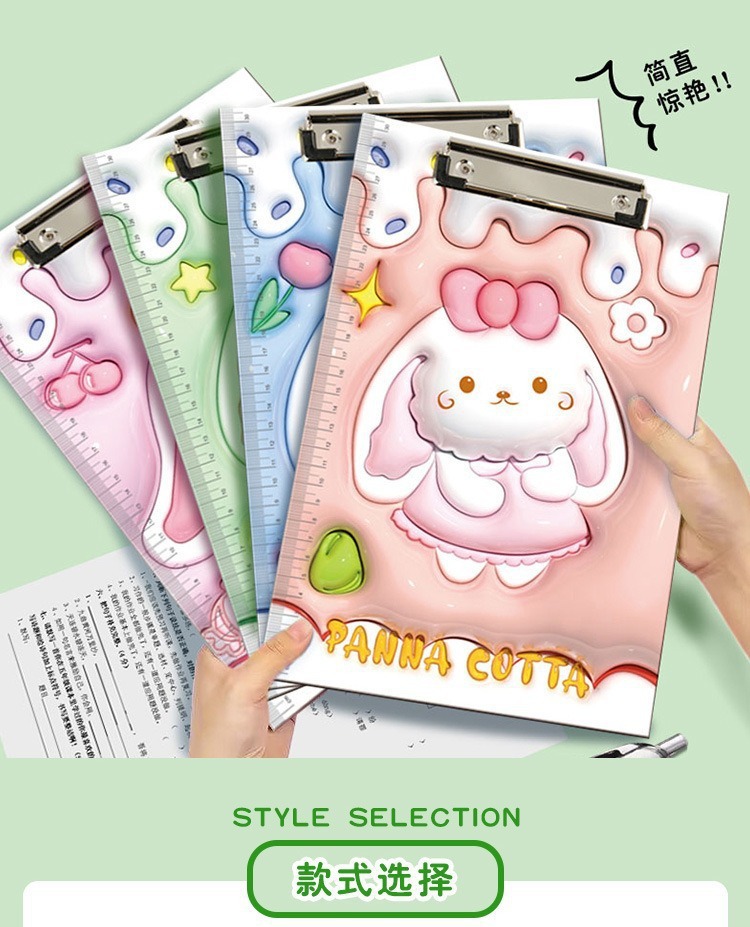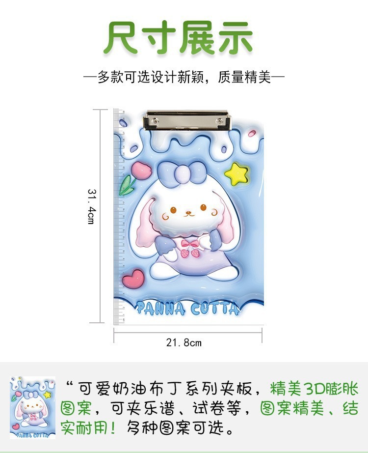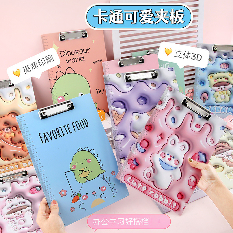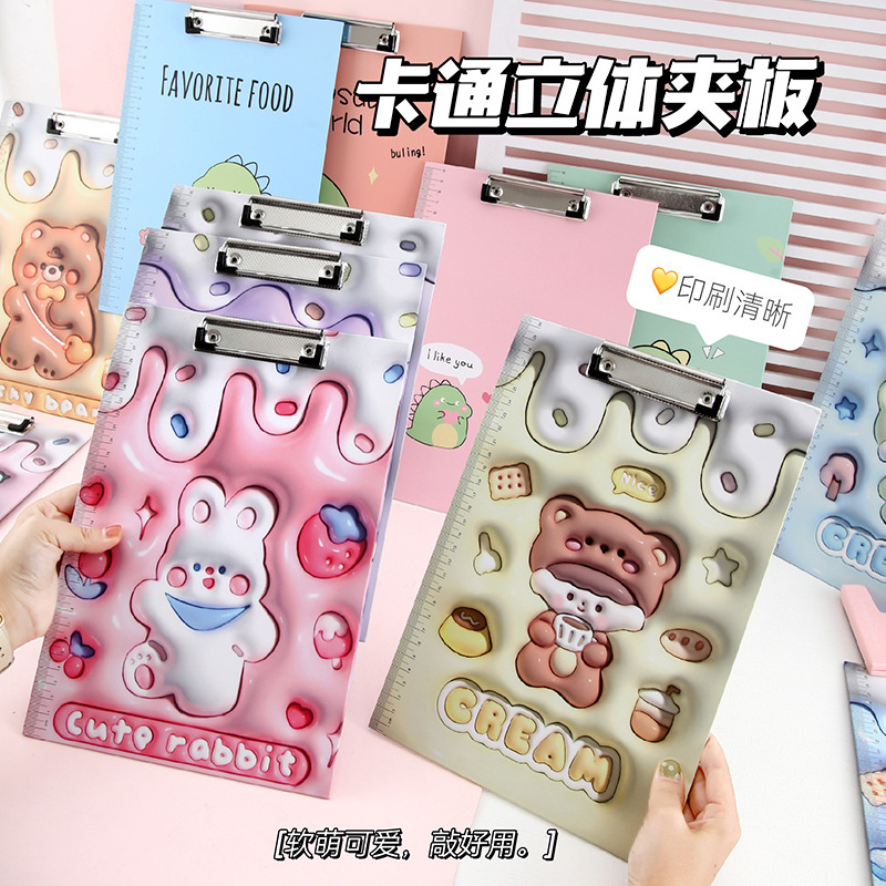 크림 파티 3D 확장 바람 학생 보드 클립 A4 폴더 귀여운 만화 학습 사무실 문구 검사 패드