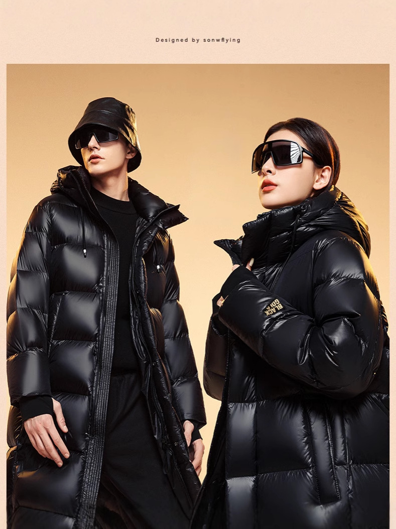 남성과 여성을위한 블랙 골드 구스 다운 하이 엔드 거위 다운 미드 길이 다운 재킷 같은 커플 겨울 후드 자켓 여성 패션