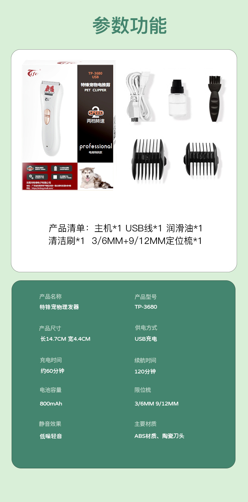 TP-3680 애완동물 전기 이발기