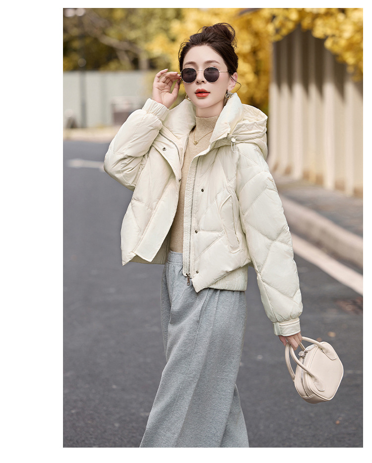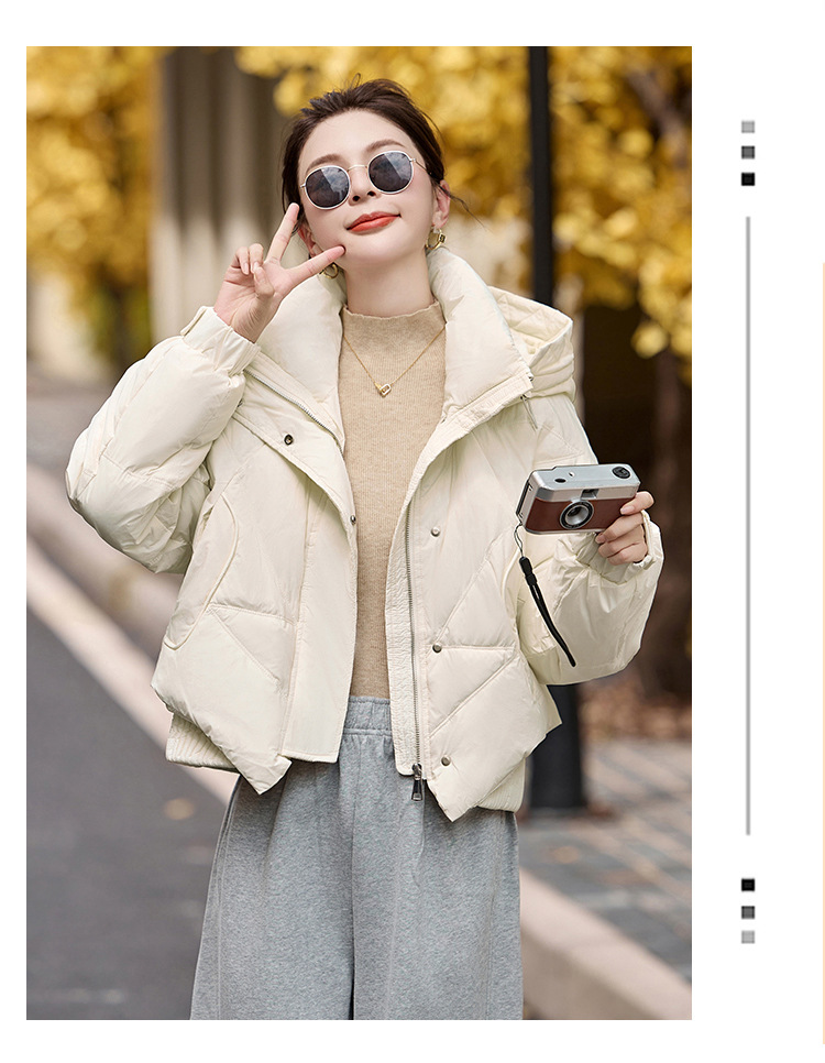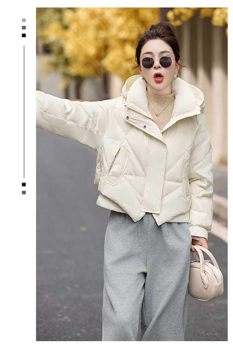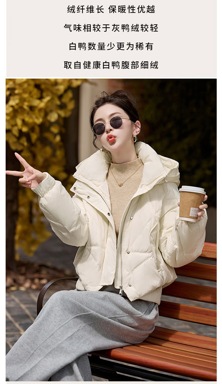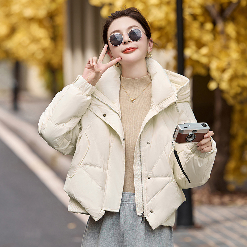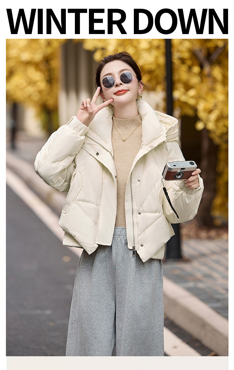여성용 숏 다운 재킷 2025 겨울 신상 슬림핏 고급스러운 캐주얼 후드 화이트 덕다운 보온 재킷