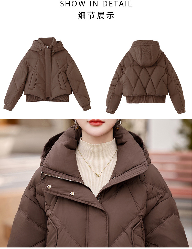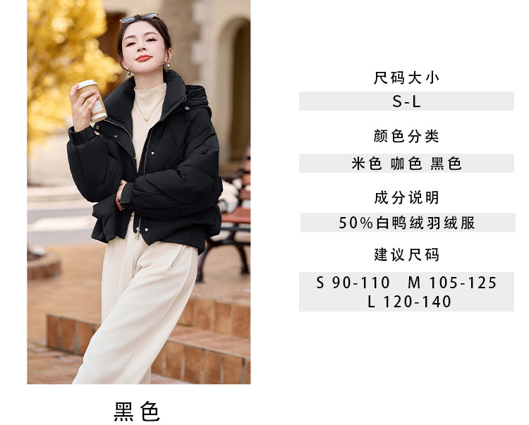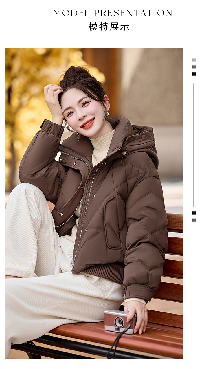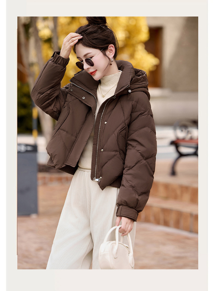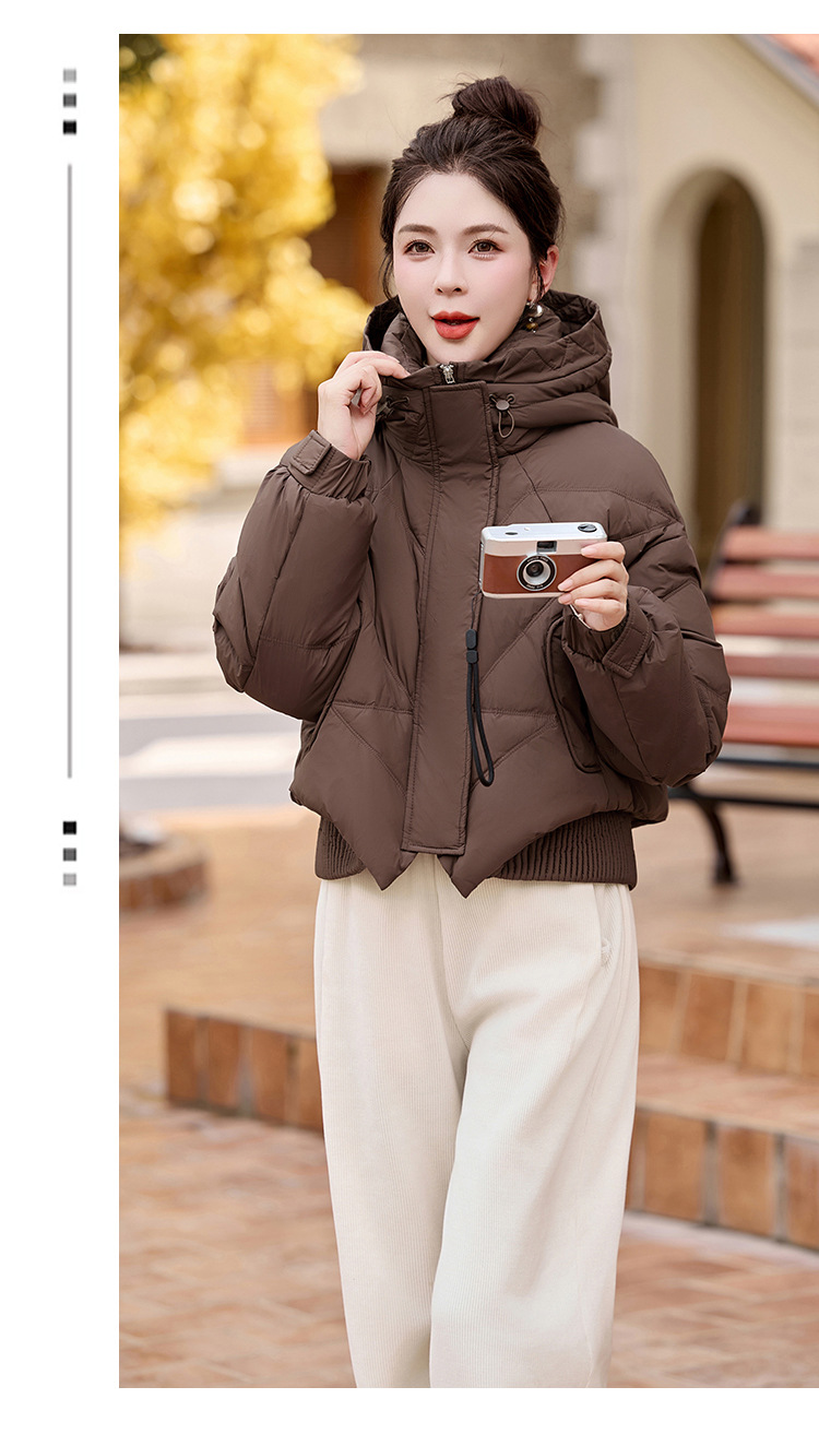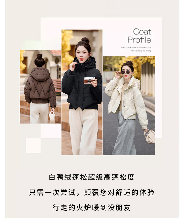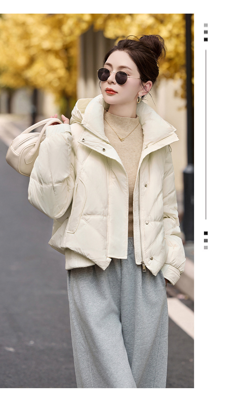 여성용 숏 다운 재킷 2025 겨울 신상 슬림핏 고급스러운 캐주얼 후드 화이트 덕다운 보온 재킷