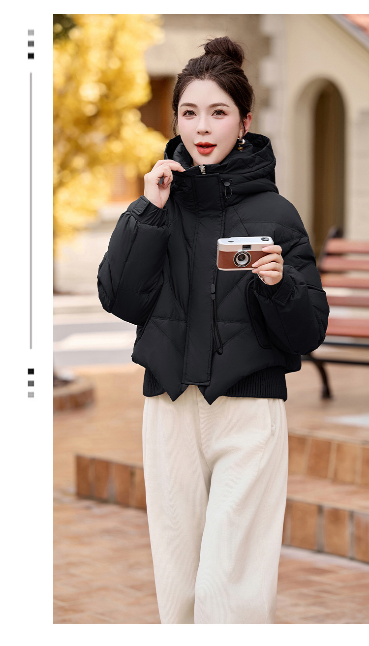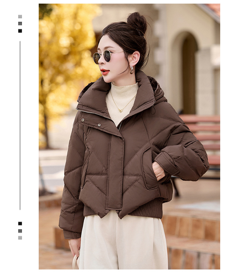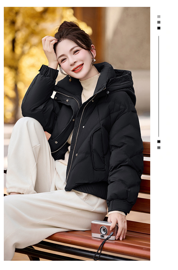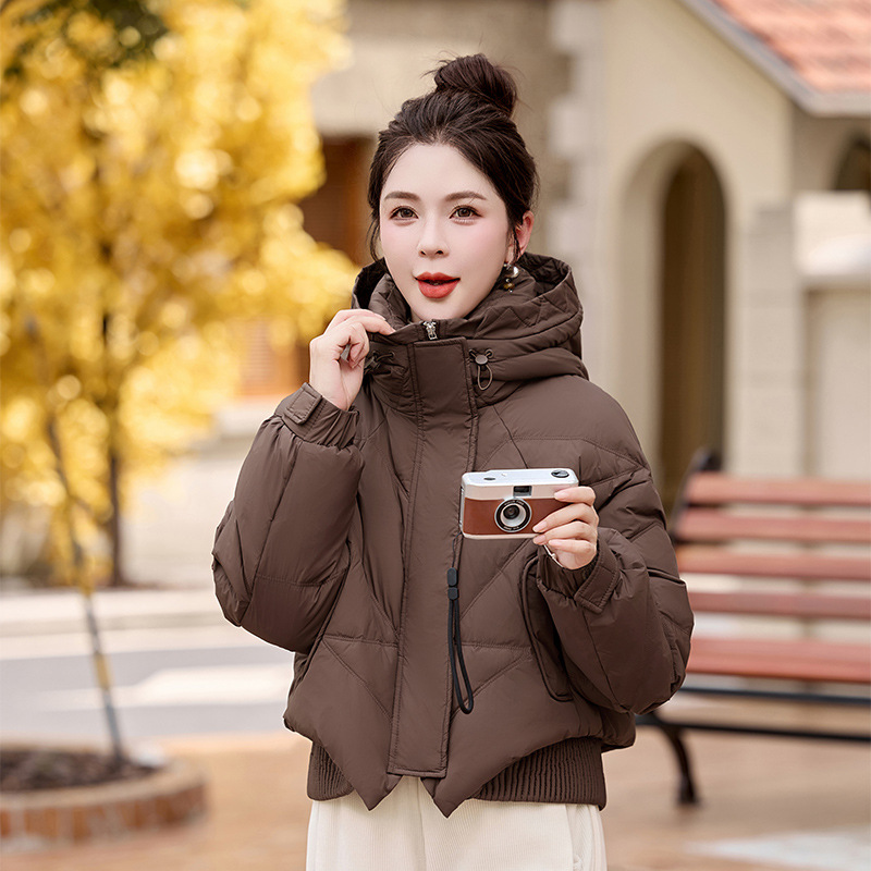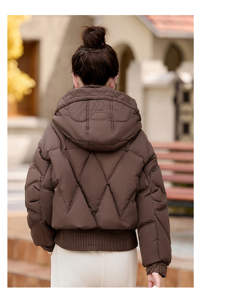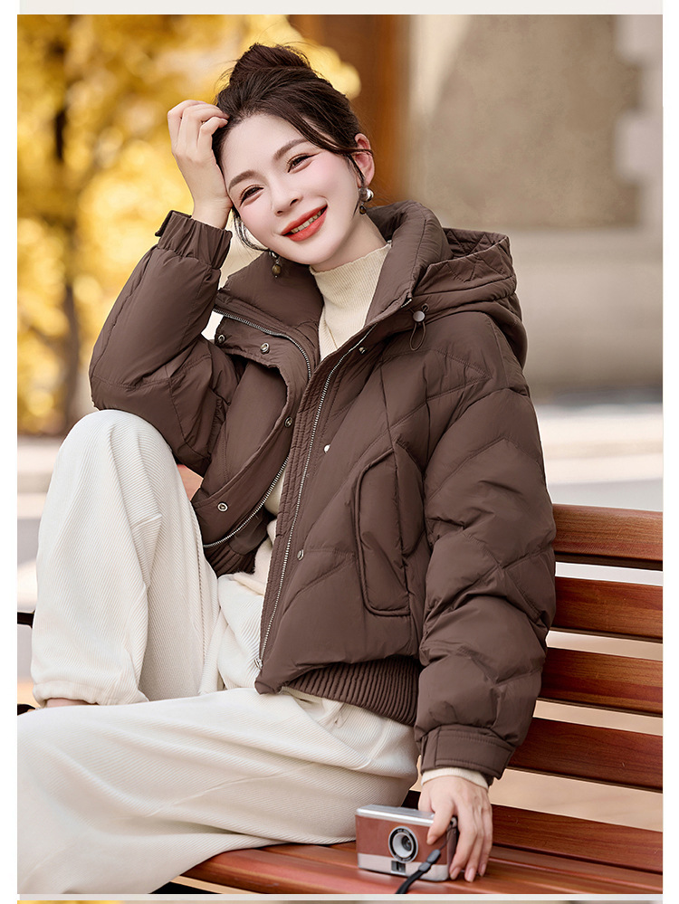 여성용 숏 다운 재킷 2025 겨울 신상 슬림핏 고급스러운 캐주얼 후드 화이트 덕다운 보온 재킷
