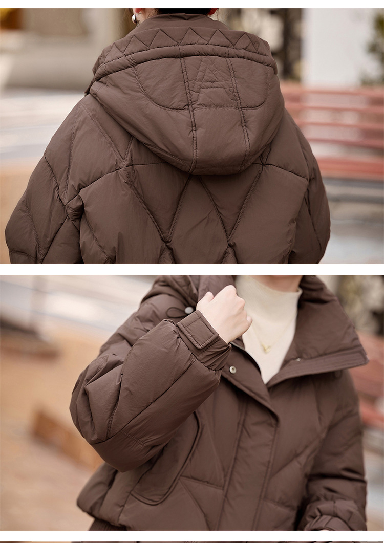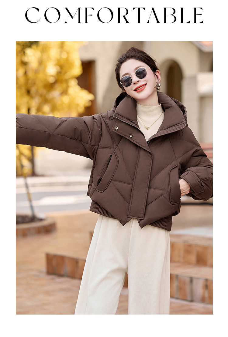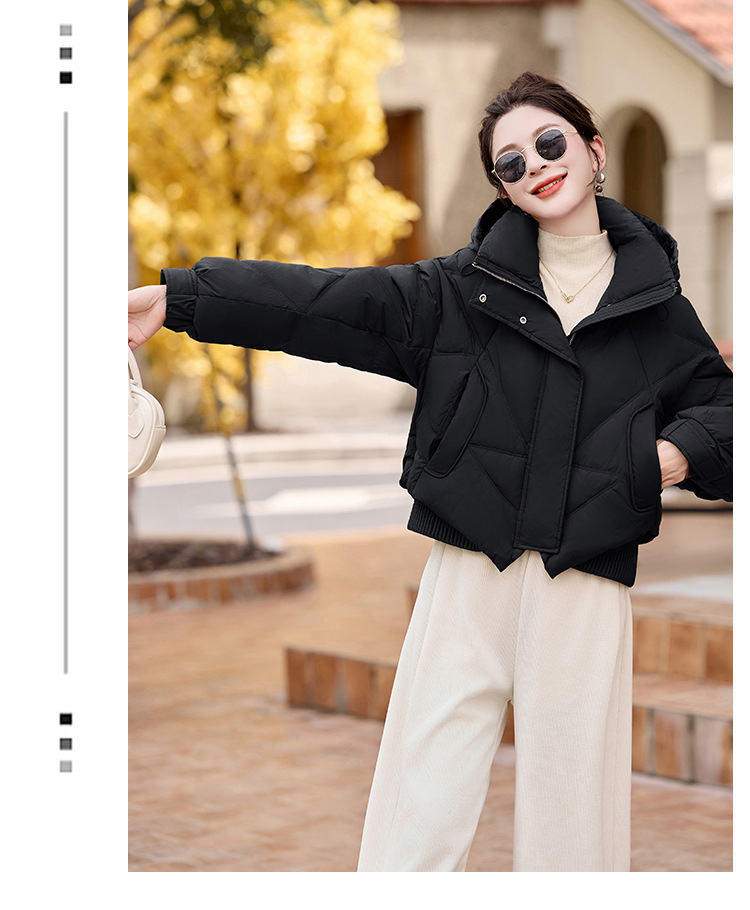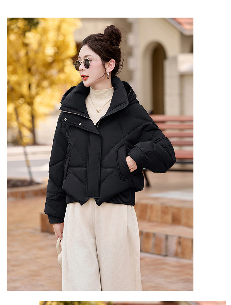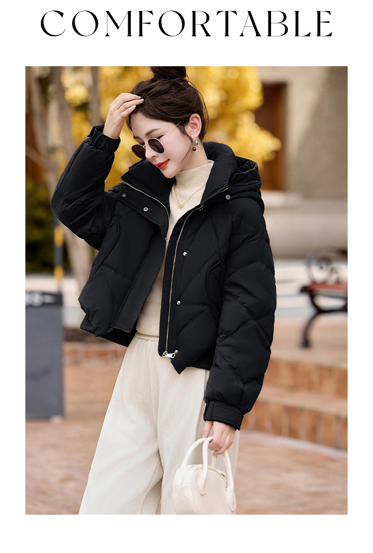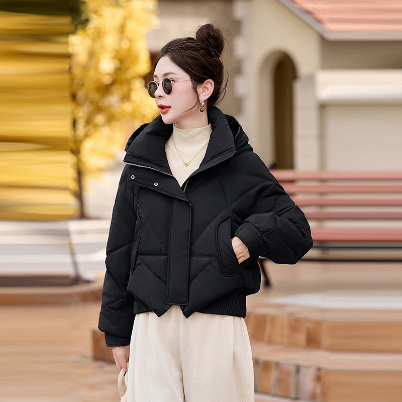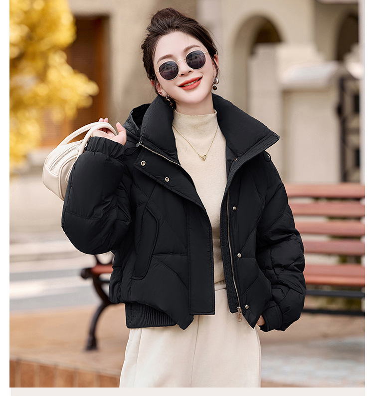 여성용 숏 다운 재킷 2025 겨울 신상 슬림핏 고급스러운 캐주얼 후드 화이트 덕다운 보온 재킷