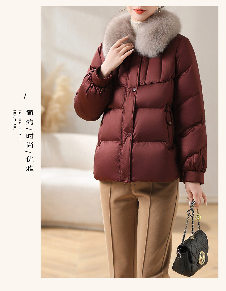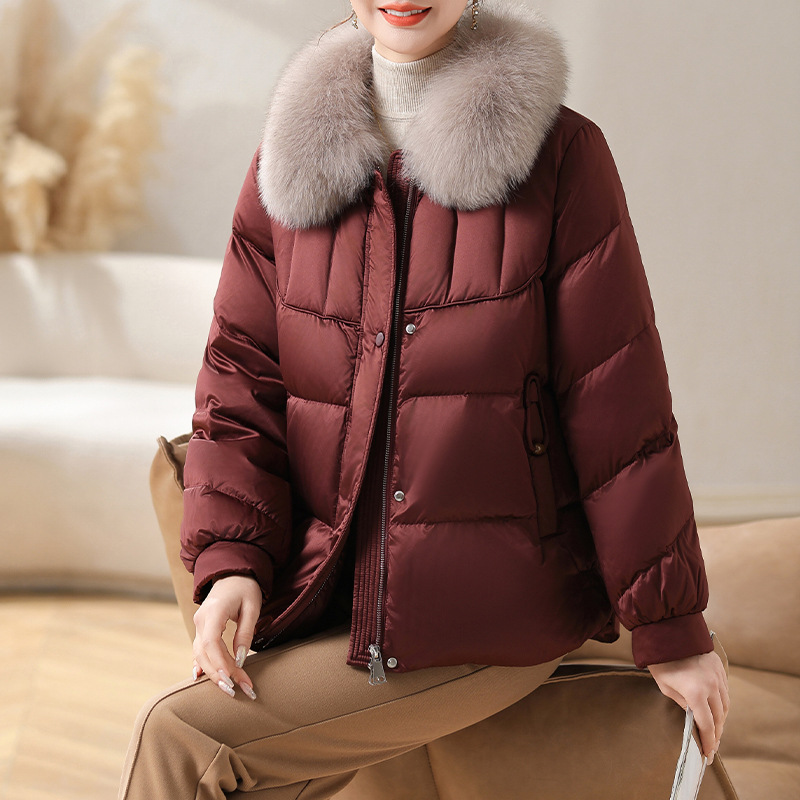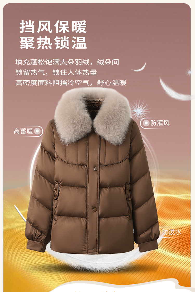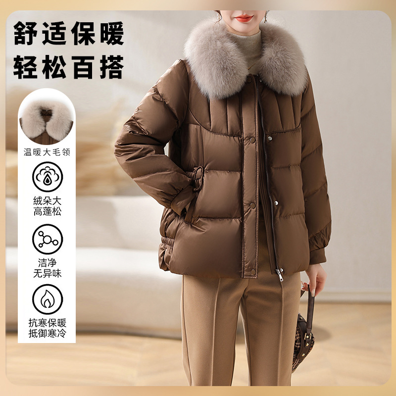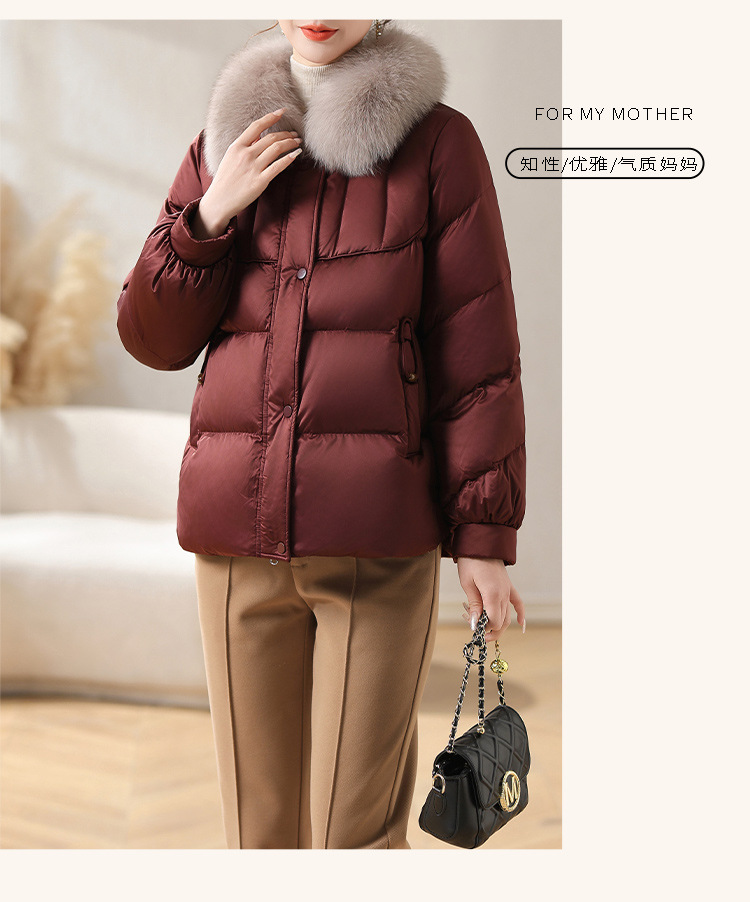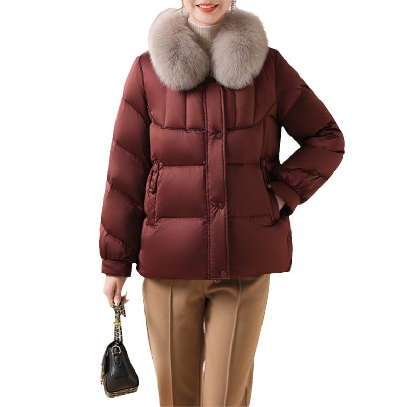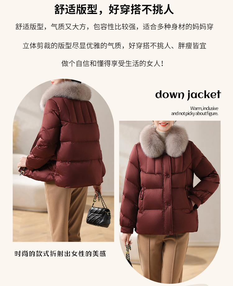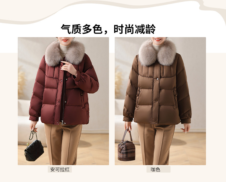 중년 어머니 겨울 다운 재킷 2024 새로운 중년 및 노인 여성 겨울 따뜻한 여우 모피 칼라 화이트 오리 다운 코트