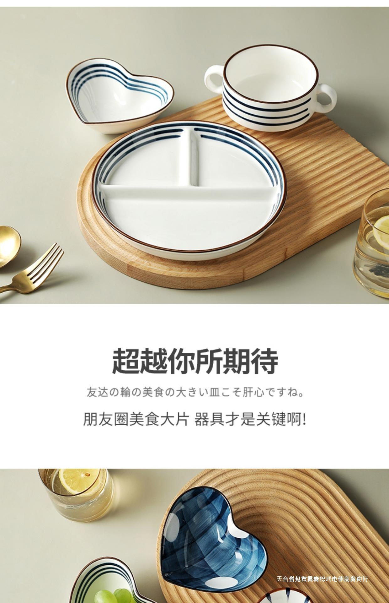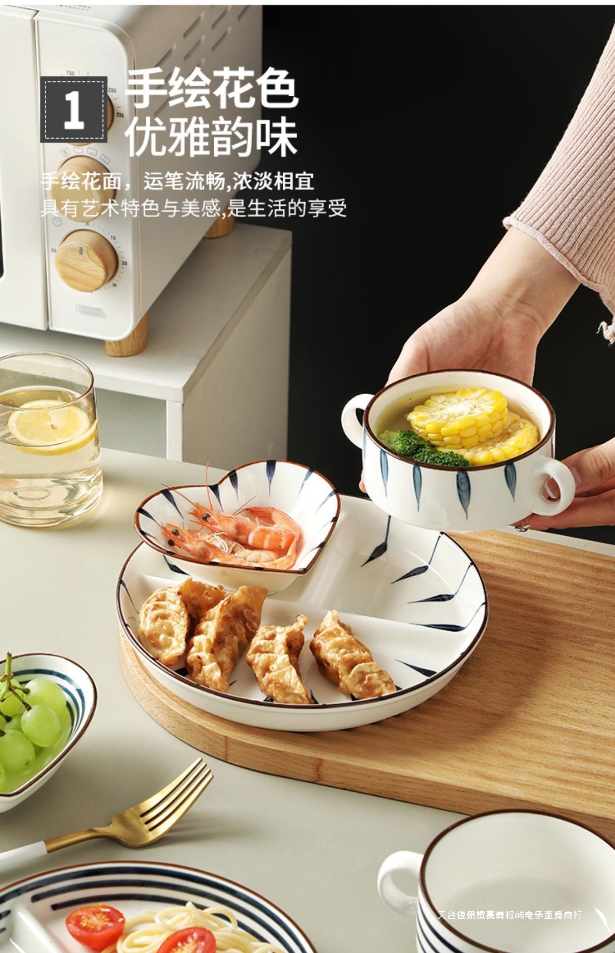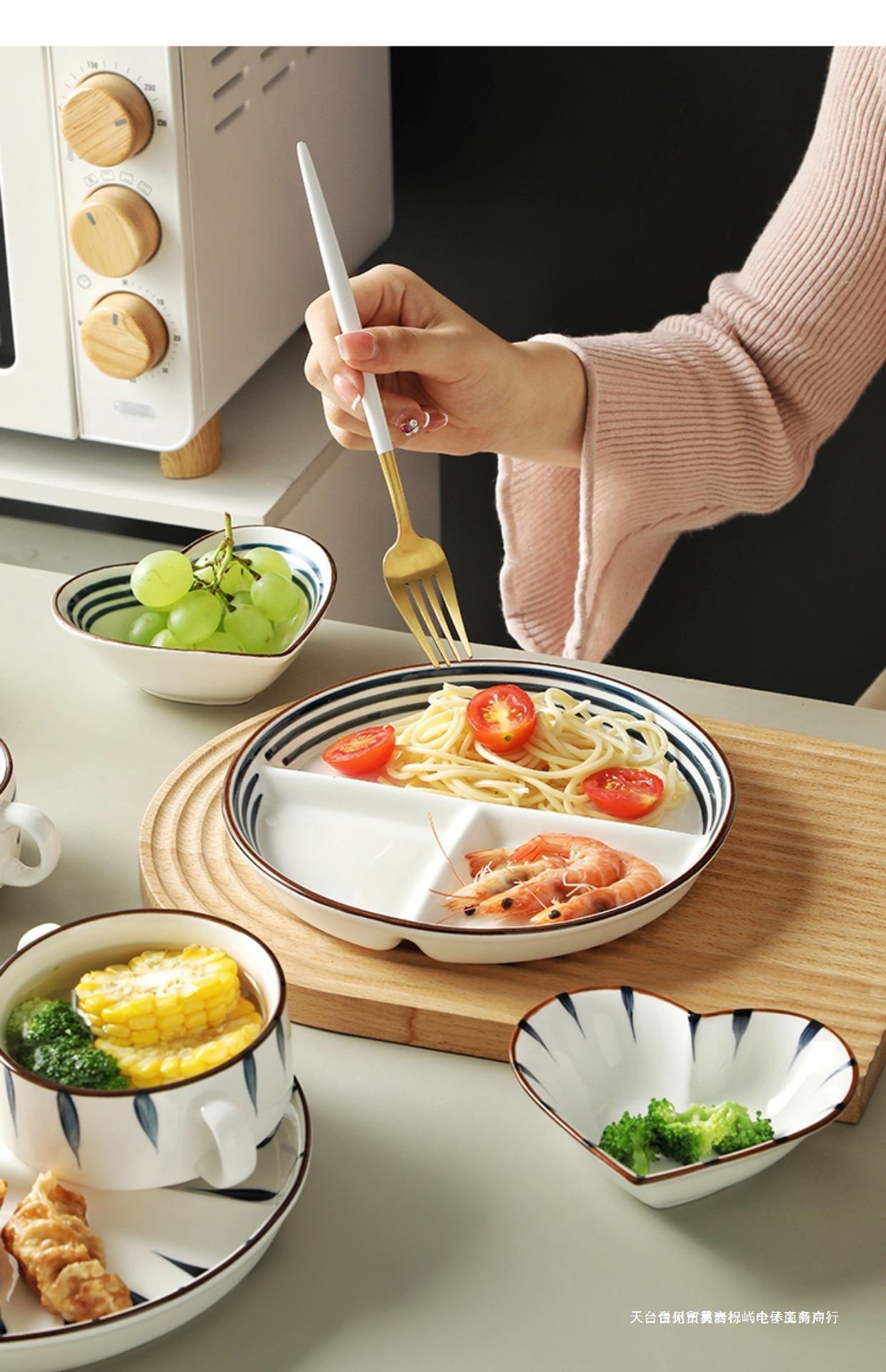 일본식 고온 방지 디너 플레이트 디스크 세라믹 식기 스플릿 플레이트 성인 디너 플레이트 가정용 더블 이어 그릇