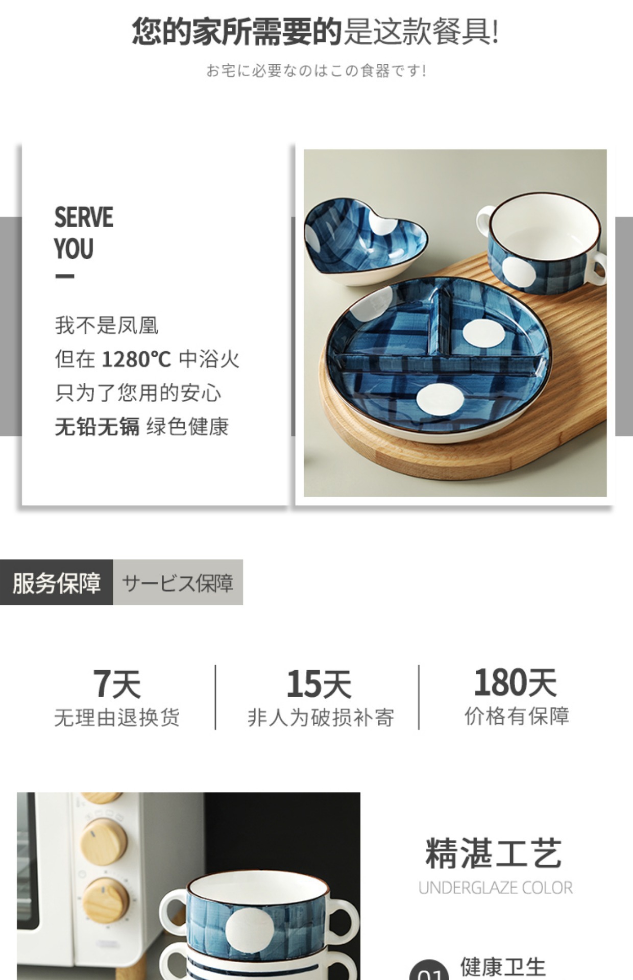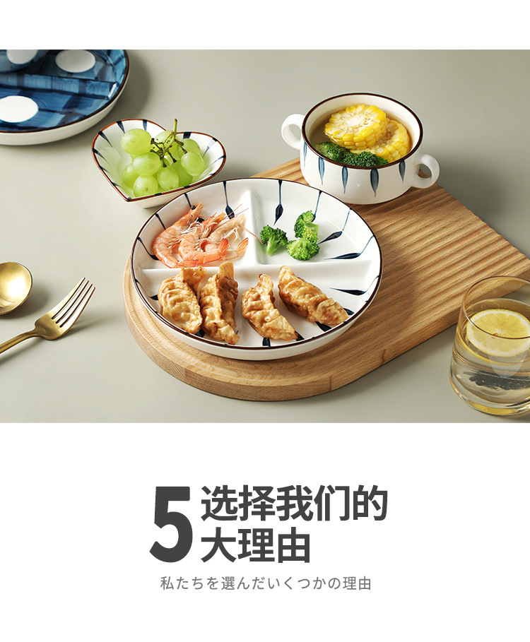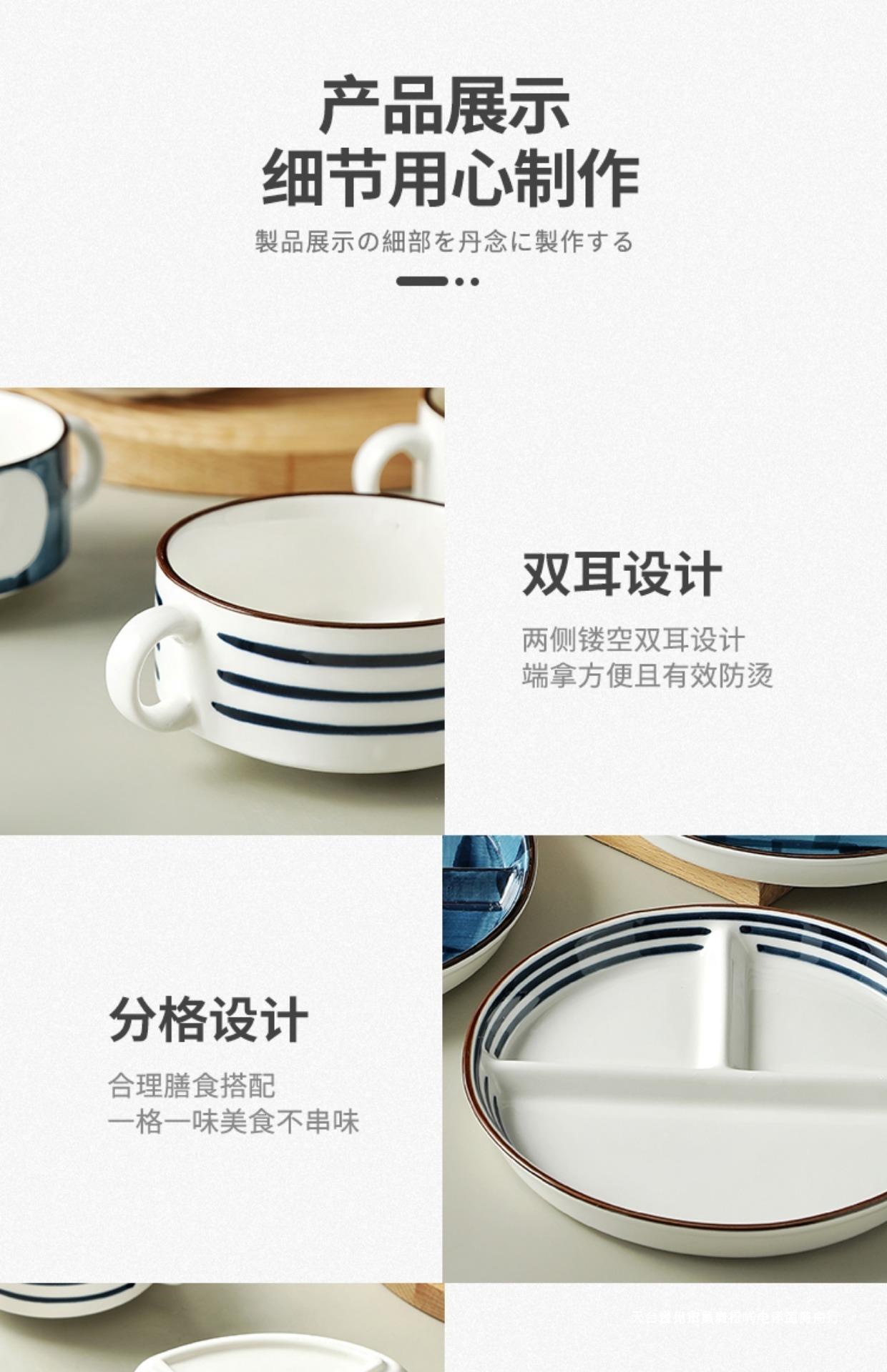 일본식 고온 방지 디너 플레이트 디스크 세라믹 식기 스플릿 플레이트 성인 디너 플레이트 가정용 더블 이어 그릇