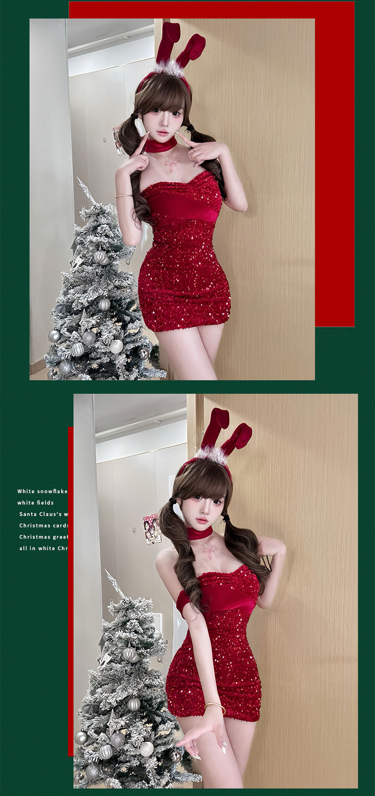 새해 섹시한 란제리 벨벳, 크리스마스 토끼 섹시한 란제리 파자마 유혹 할 수 8889