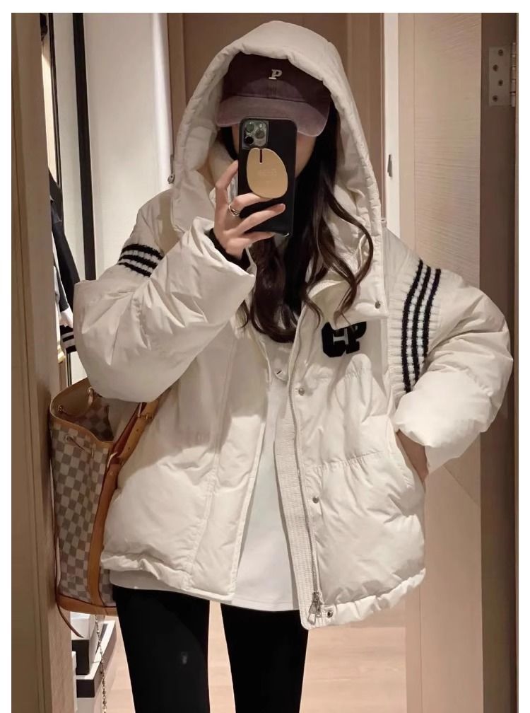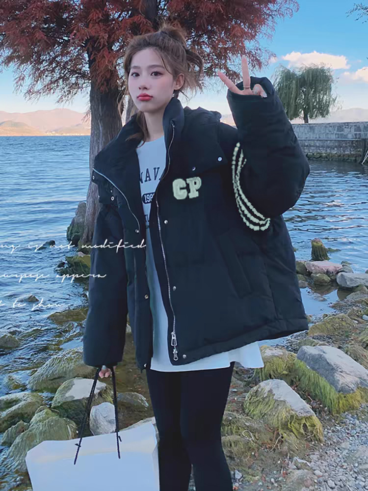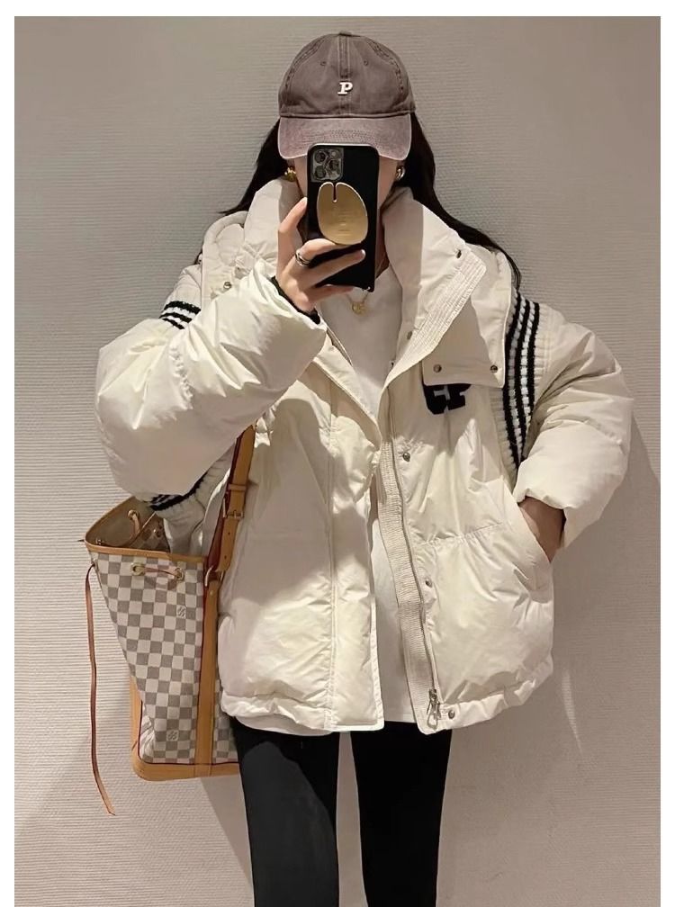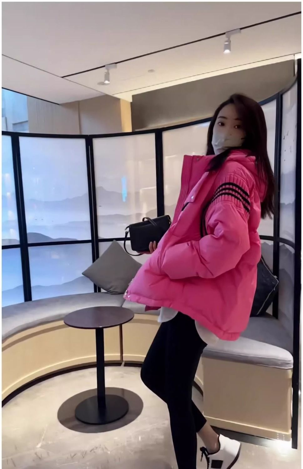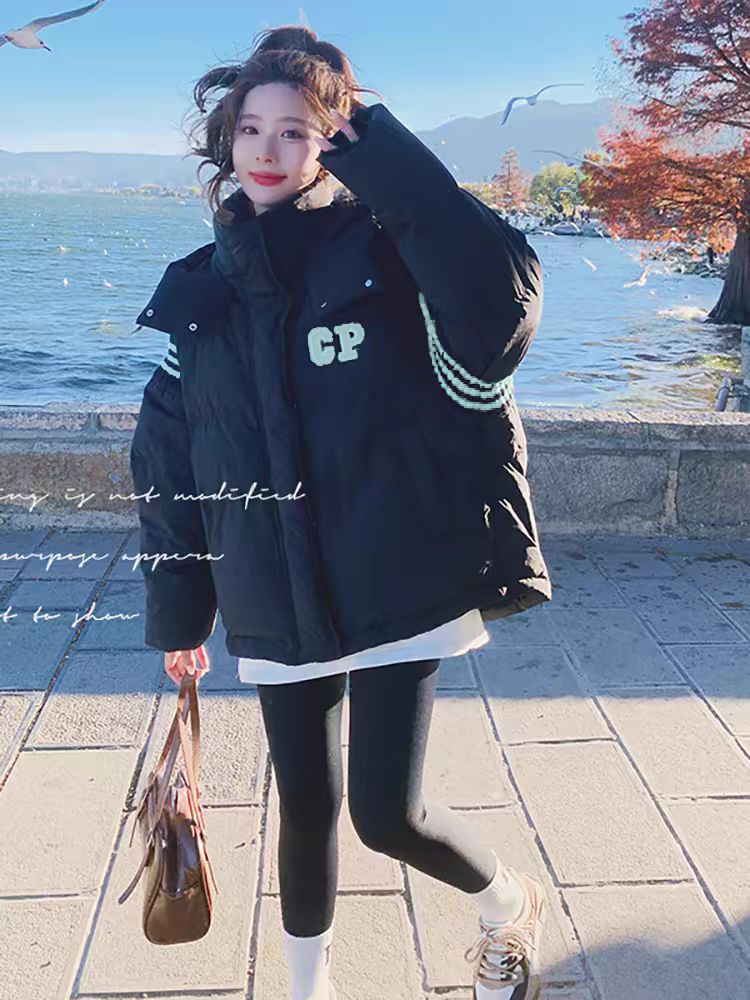 로즈 레드 후드 칼라 다운 코튼 패딩 재킷 여성의 겨울 새로운 니트 스티칭 코튼 패딩 재킷 루즈 코튼 패딩 재킷 캐주얼 빈티지 재킷