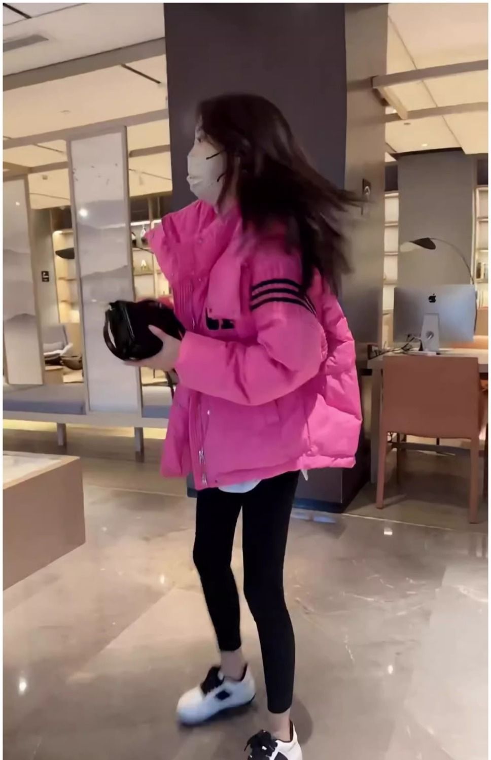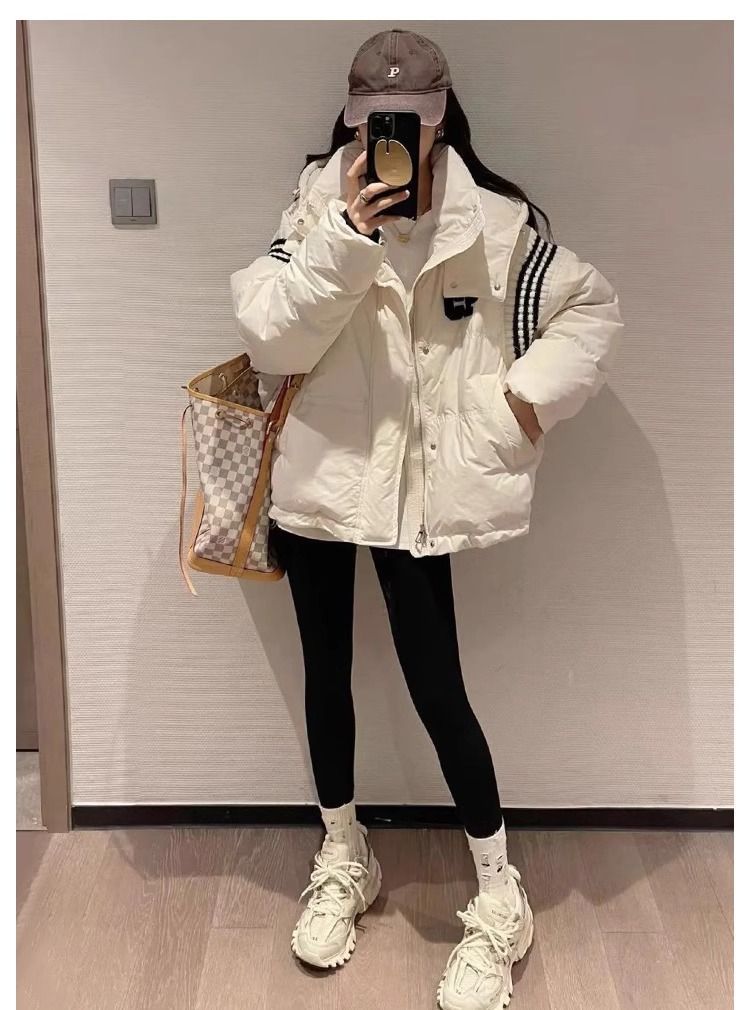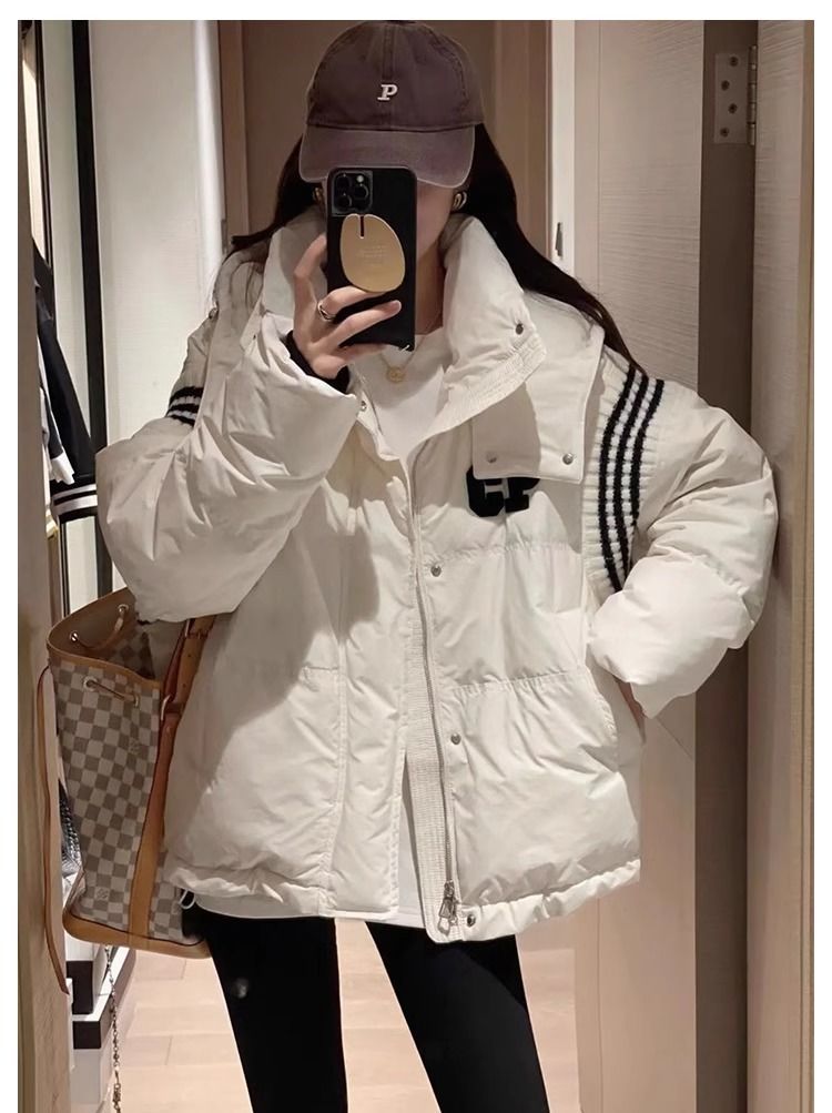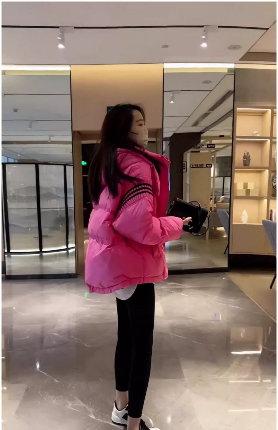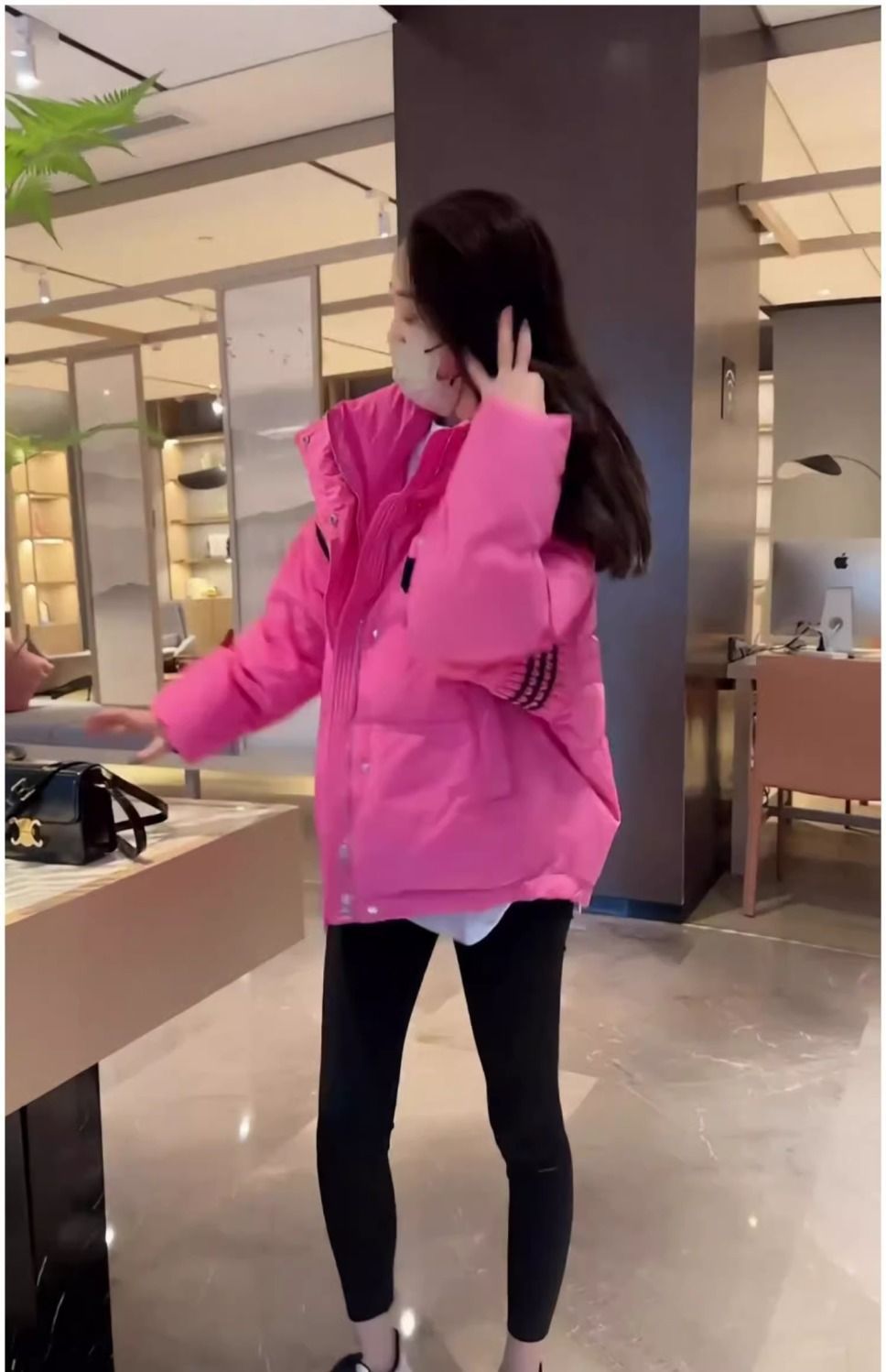 로즈 레드 후드 칼라 다운 코튼 패딩 재킷 여성의 겨울 새로운 니트 스티칭 코튼 패딩 재킷 루즈 코튼 패딩 재킷 캐주얼 빈티지 재킷