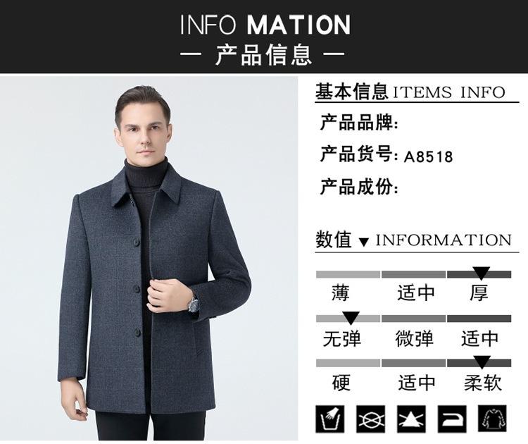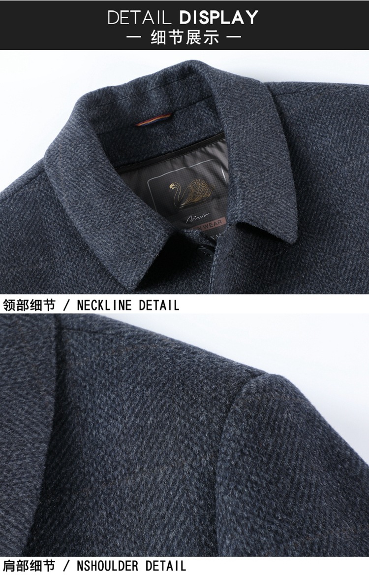 正品牌男士羊毛呢大衣男秋冬翻领商务休闲中年行政毛呢羊绒外套