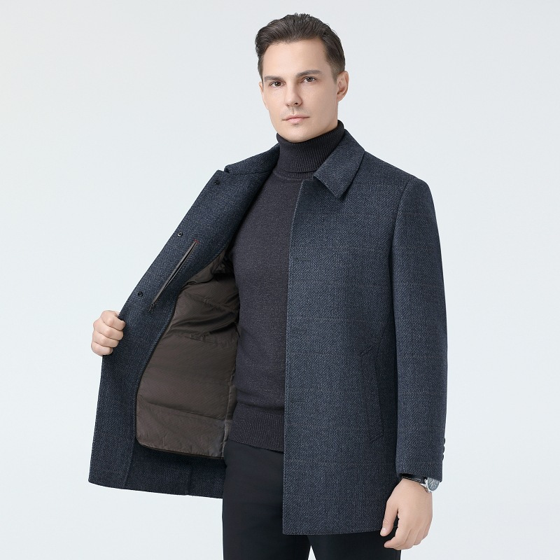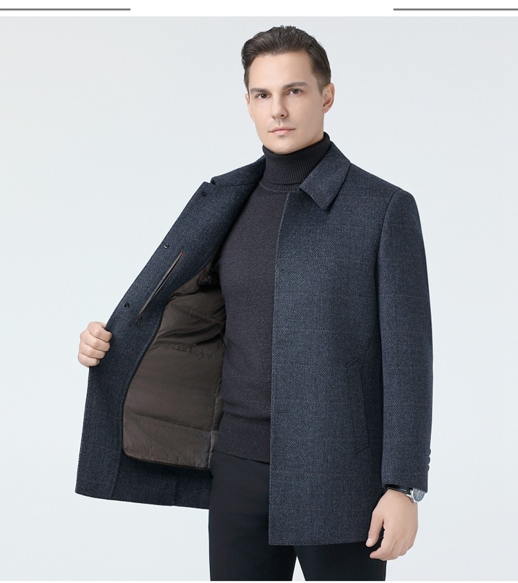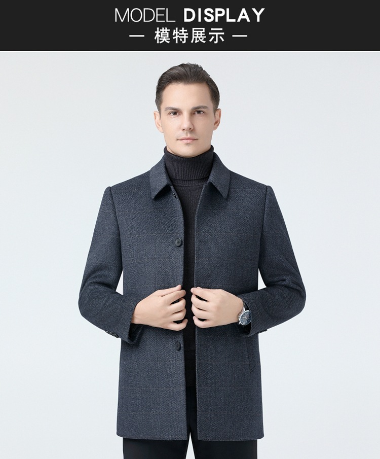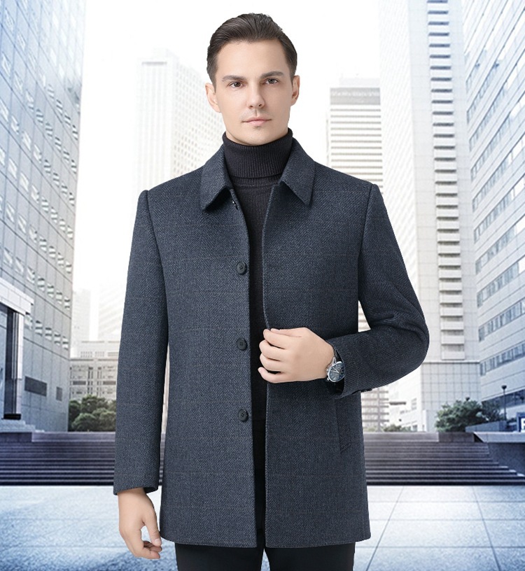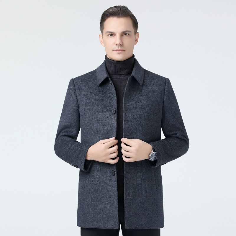 브랜드 남성 양모 코트 남성 가을 및 겨울 옷깃 비즈니스 캐주얼 중년 이그제큐티브 울 캐시미어 코트