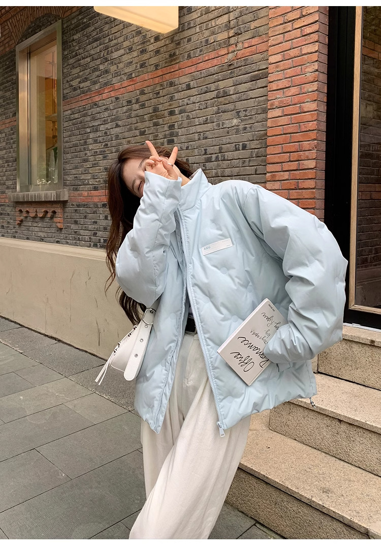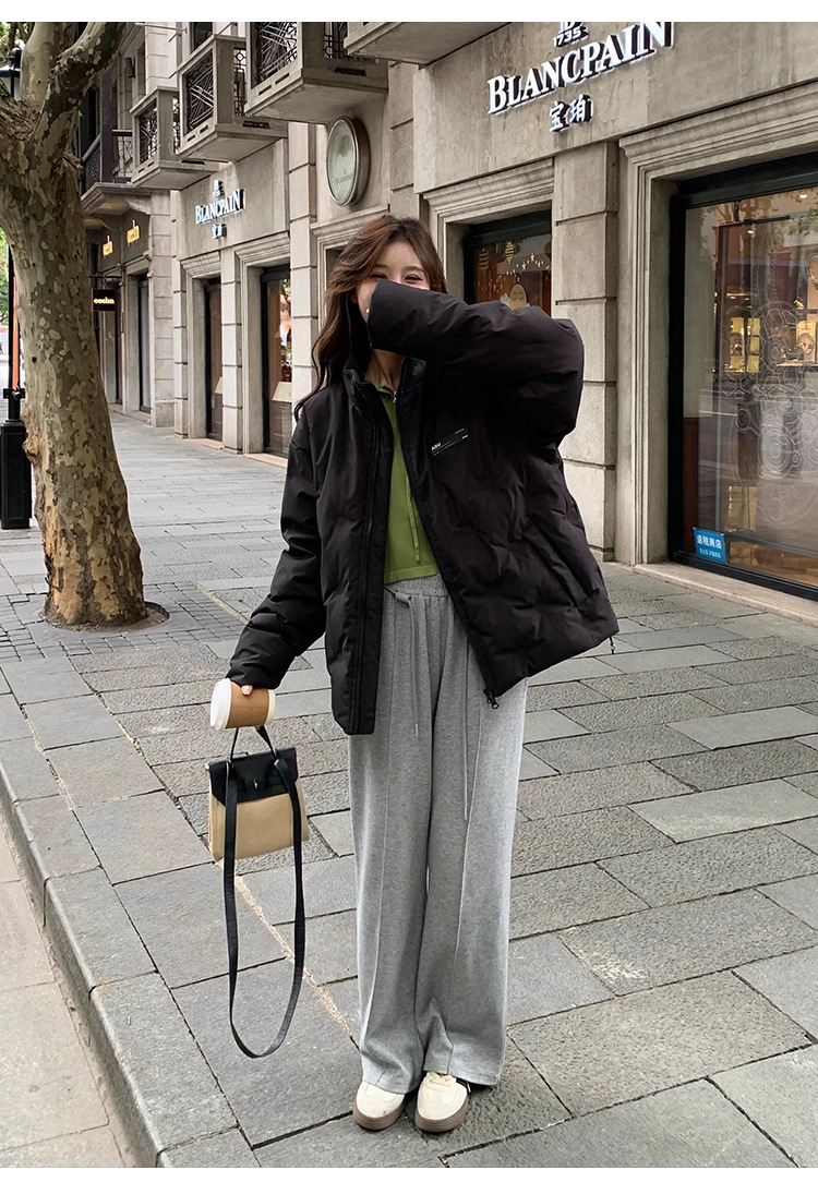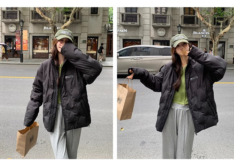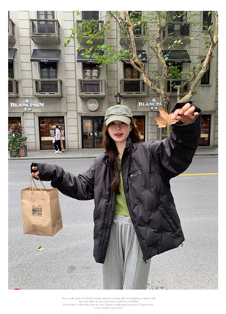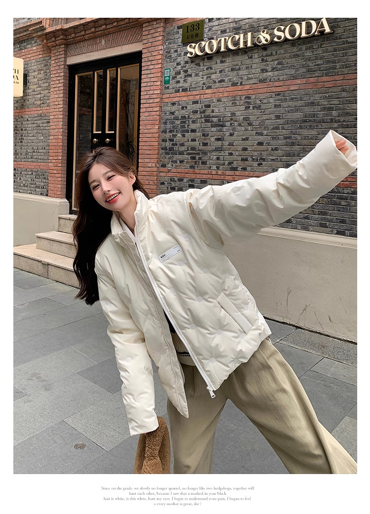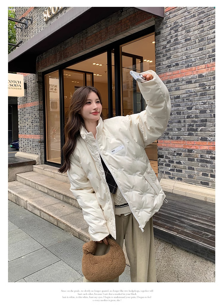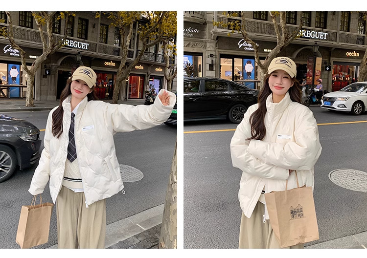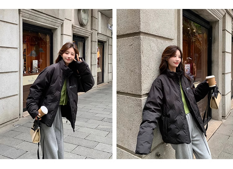 짧은 다운 재킷 여성의 2024 새로운 두꺼운 마름모꼴 임프린트 수직 칼라 작은 트렌디 브랜드 커플의 겨울 재킷