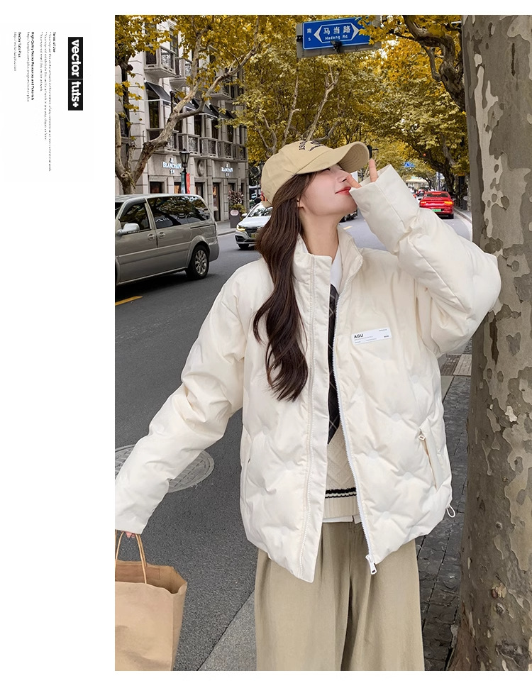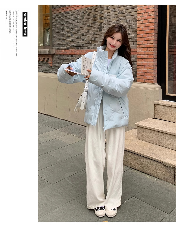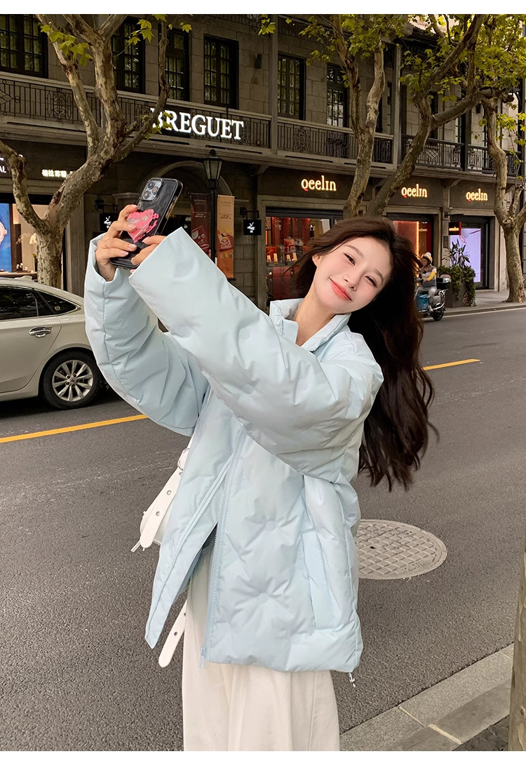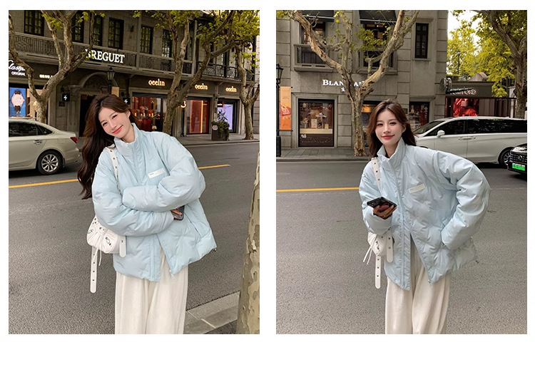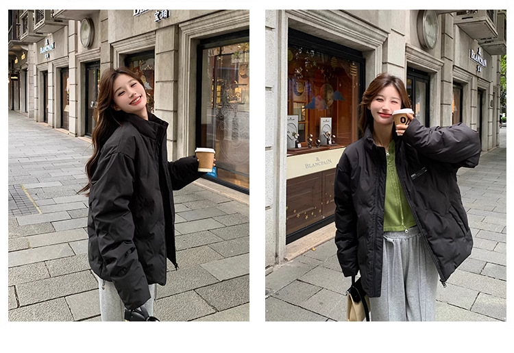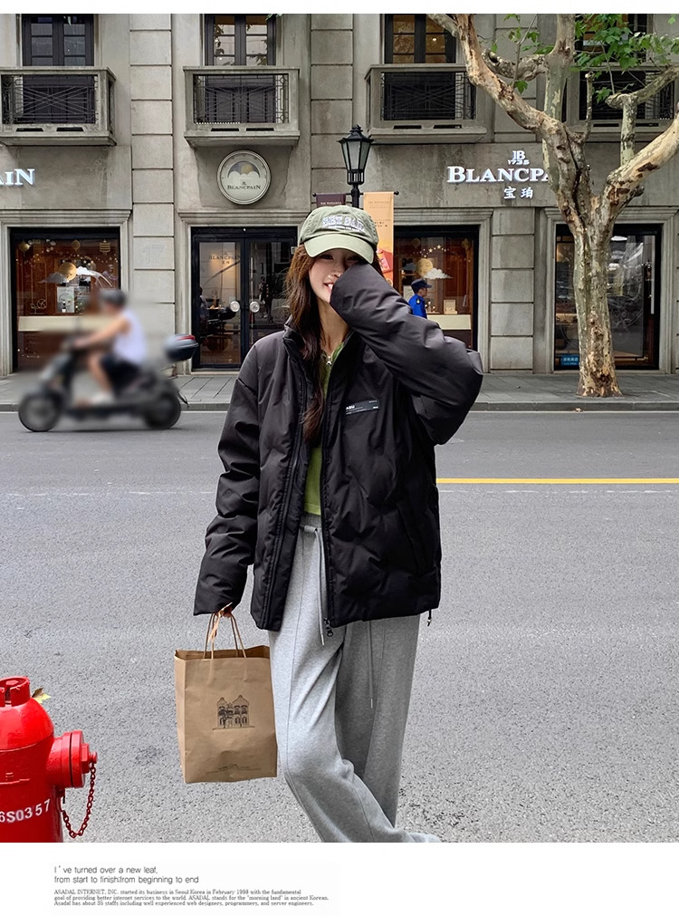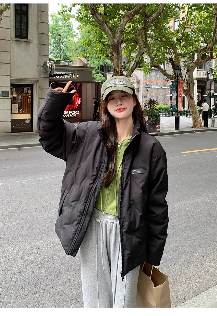 짧은 다운 재킷 여성의 2024 새로운 두꺼운 마름모꼴 임프린트 수직 칼라 작은 트렌디 브랜드 커플의 겨울 재킷