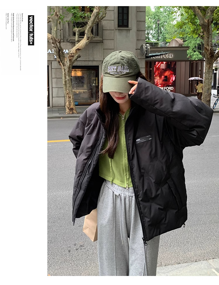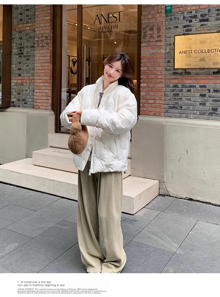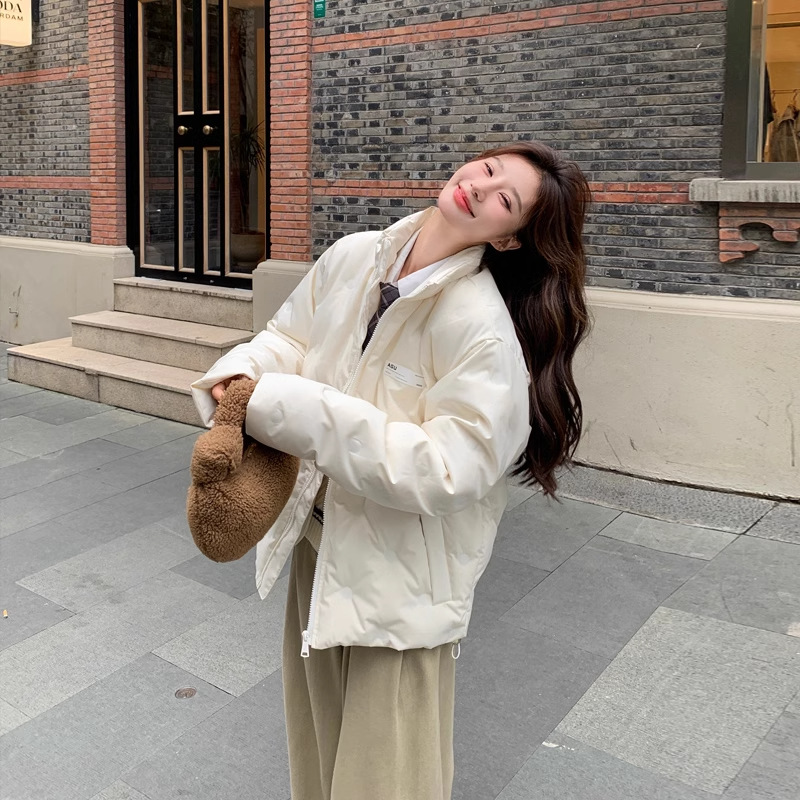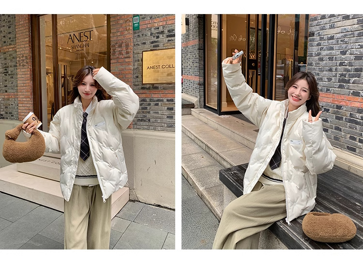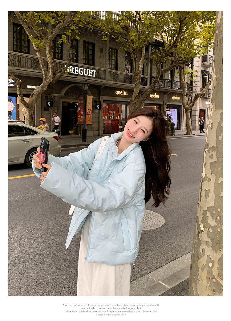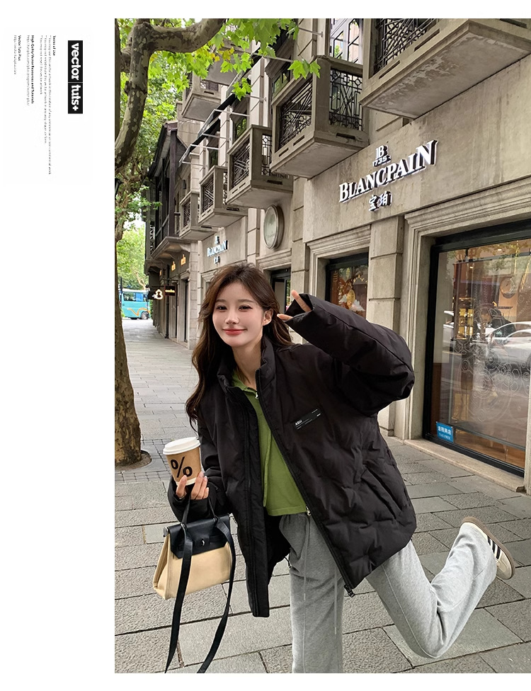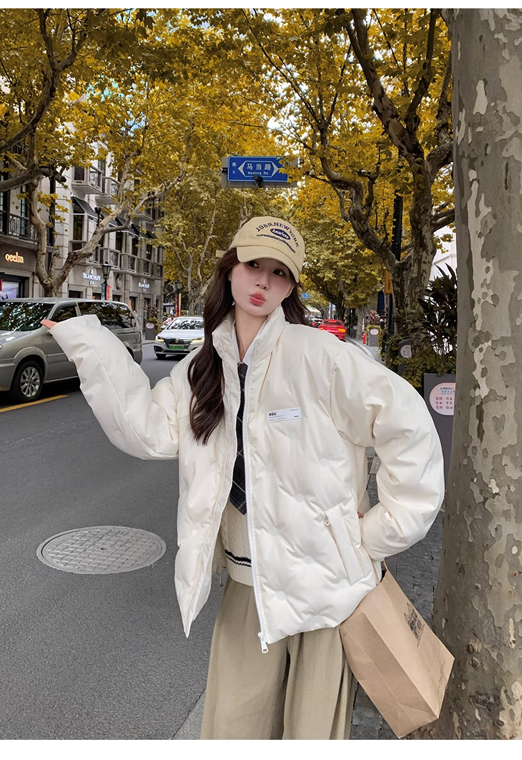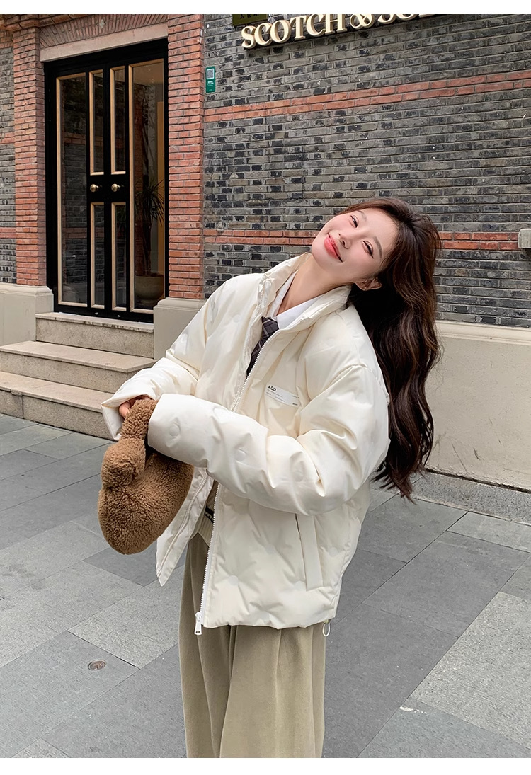짧은 다운 재킷 여성의 2024 새로운 두꺼운 마름모꼴 임프린트 수직 칼라 작은 트렌디 브랜드 커플의 겨울 재킷