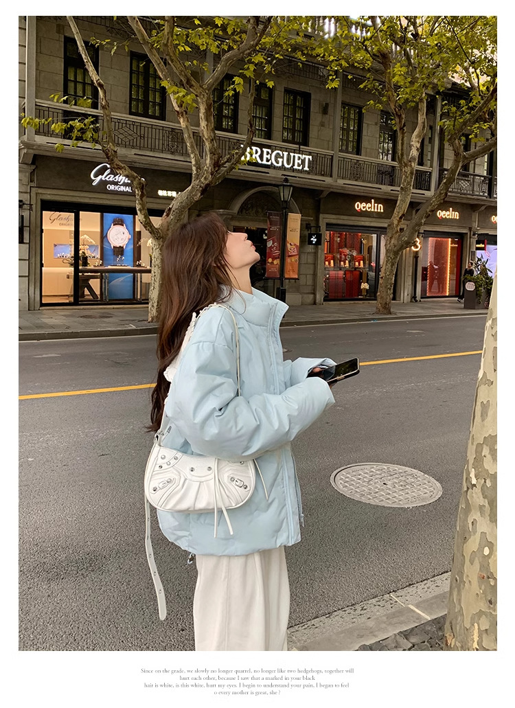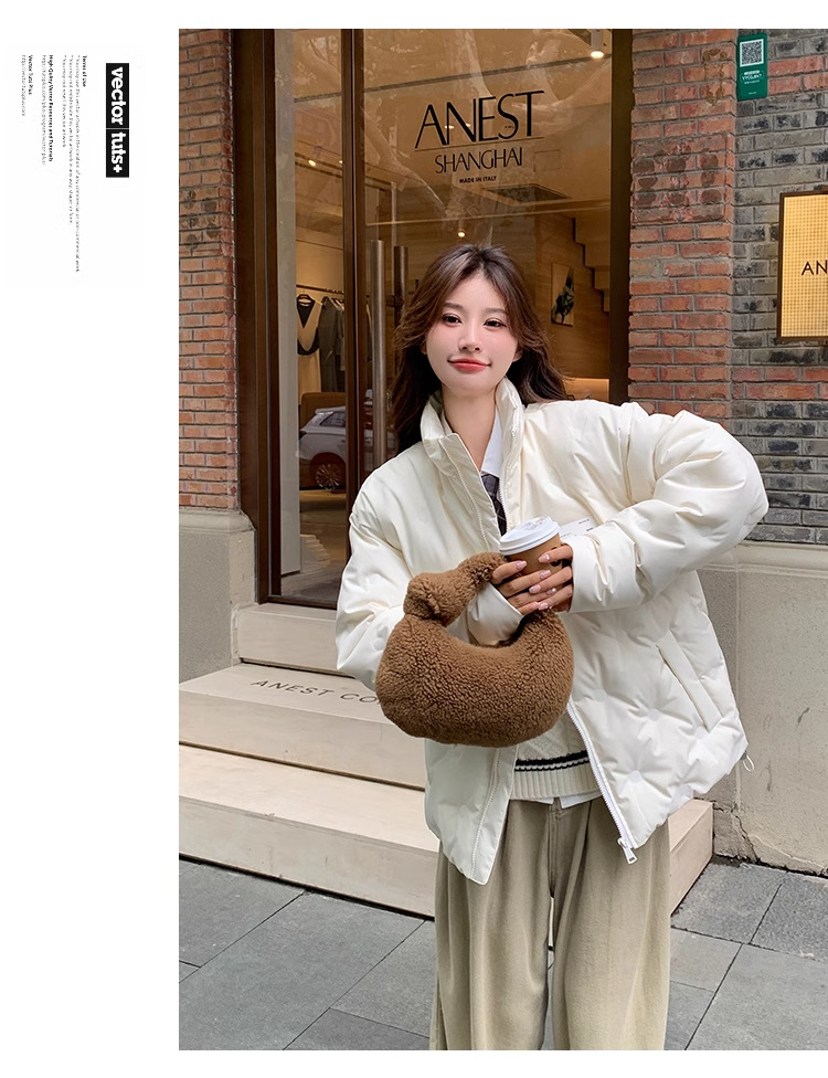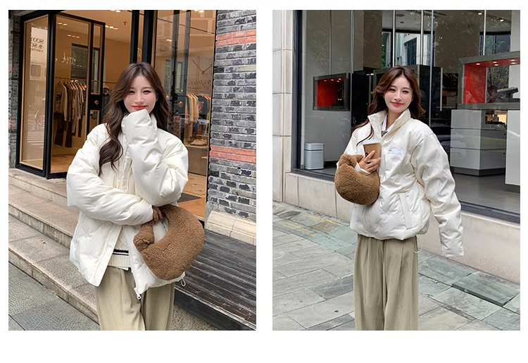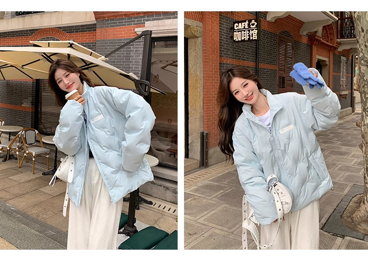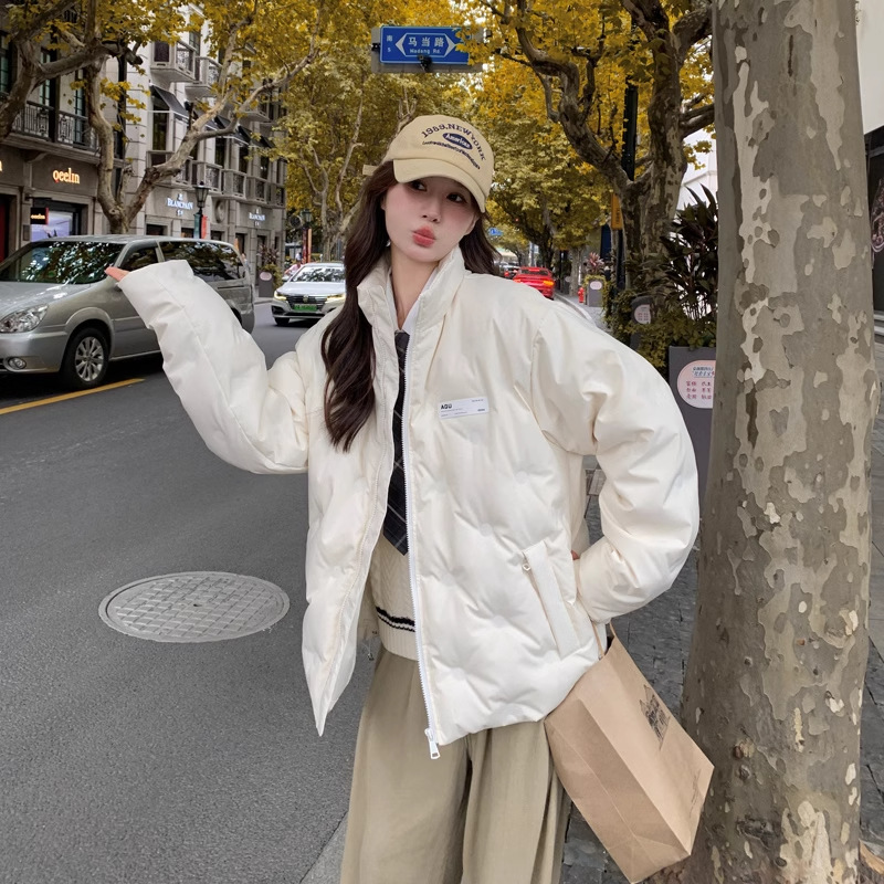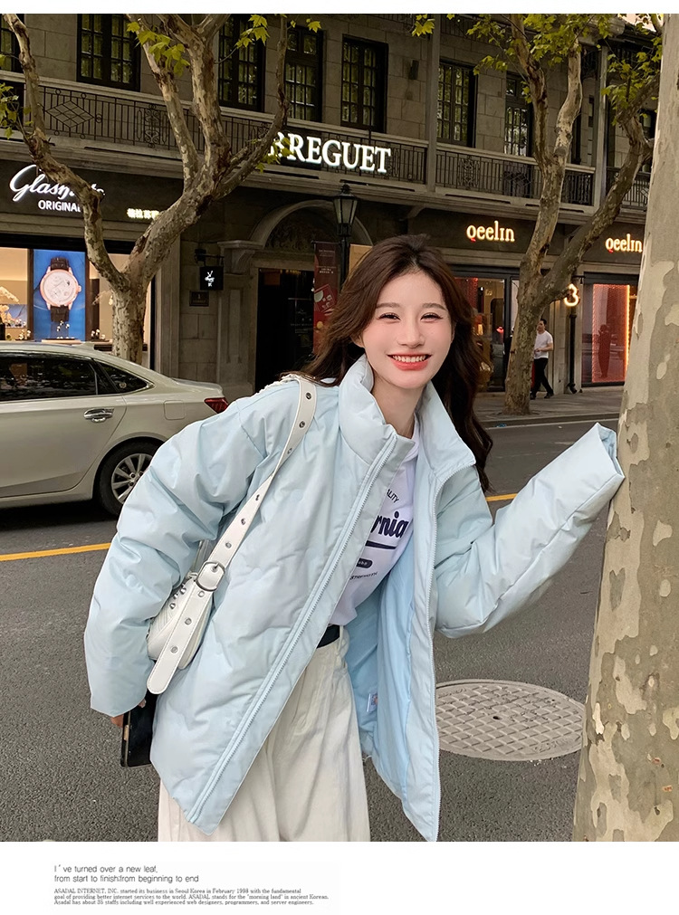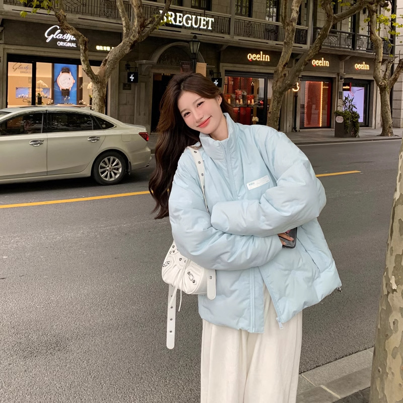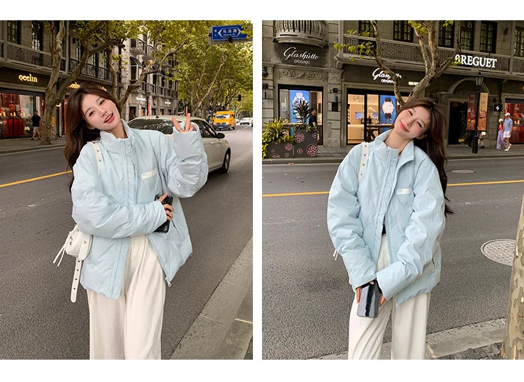 짧은 다운 재킷 여성의 2024 새로운 두꺼운 마름모꼴 임프린트 수직 칼라 작은 트렌디 브랜드 커플의 겨울 재킷