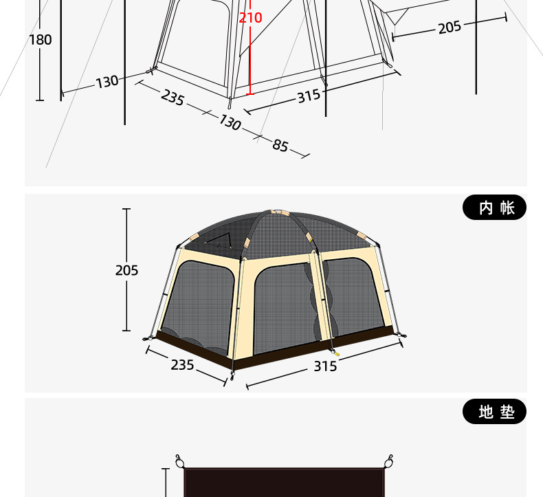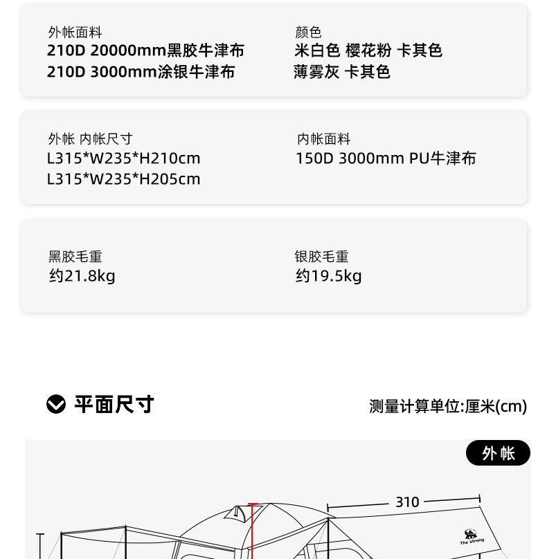 문 화이트 - 외부 텐트 210D3000MM 실버 코팅 옥스포드 천 - (내부 텐트 + 외부 텐트 +)