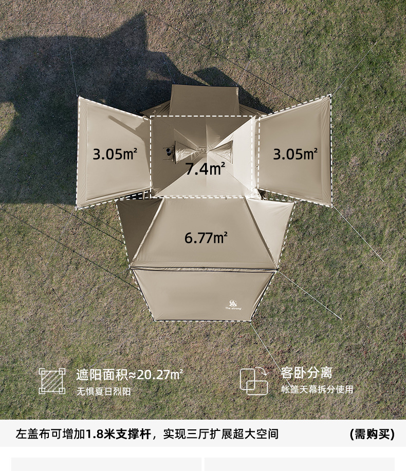 외부 텐트 확장: L450*W445/315*H210/180cmm