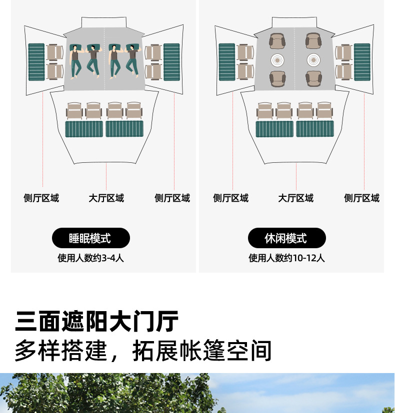 360 파노라마 전망 야외 텐트 대형 공간 스카이 커튼 2-in -1 야외 캠핑 방비 지붕 텐트