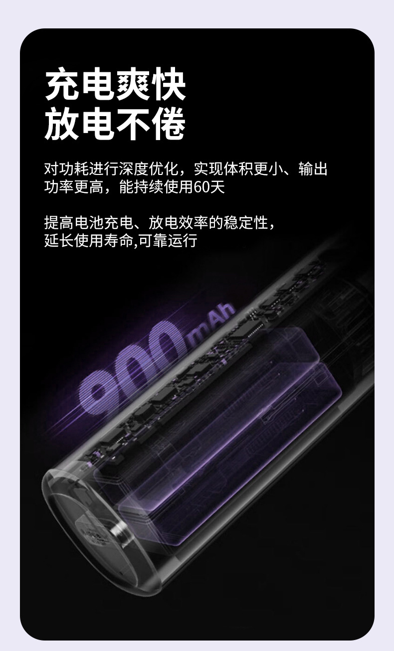 电池规格:900mAH,自带锂电保护