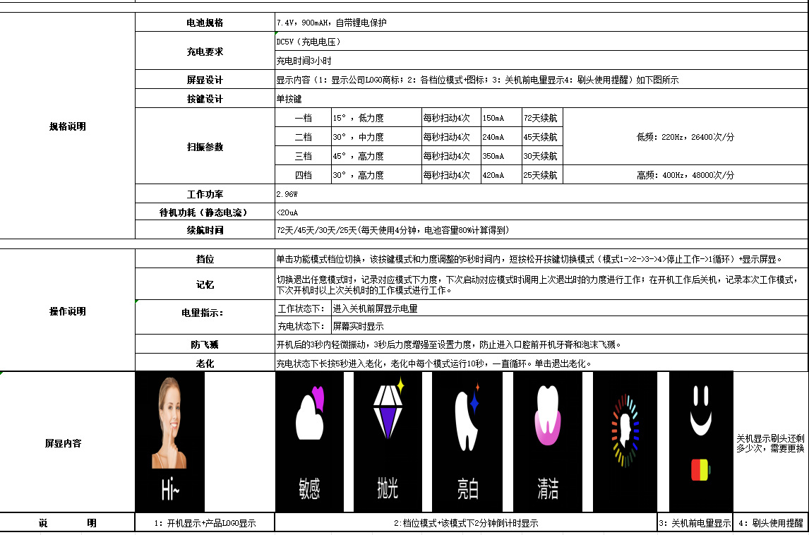 产品名称:扫振+屏显电动牙刷