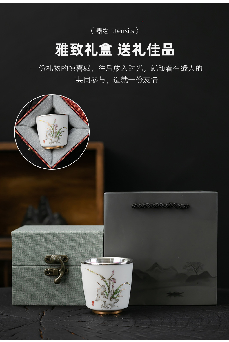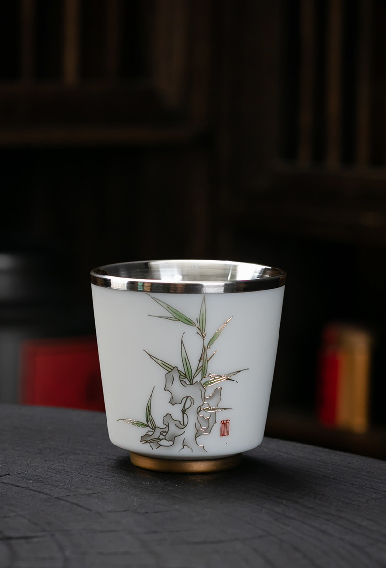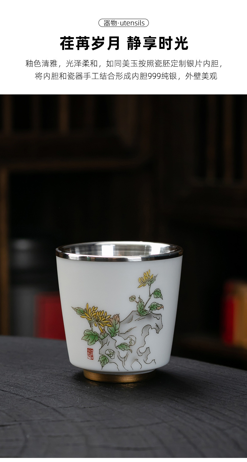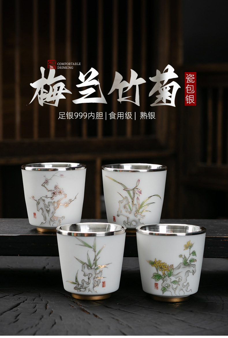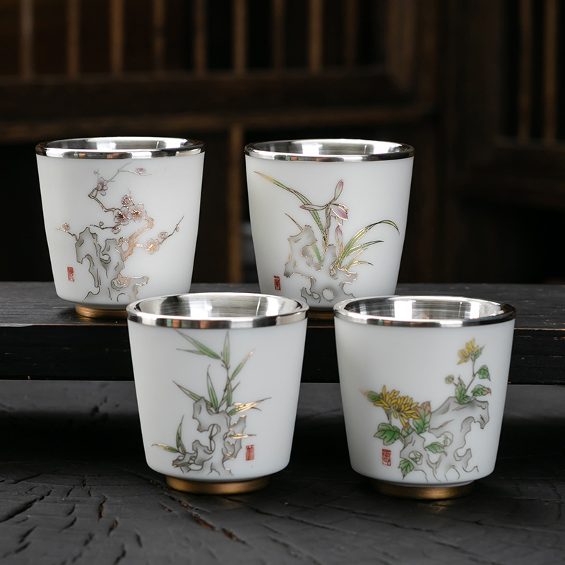세라믹 가방 실버 컵 999 스털링 실버 마스터 컵 창조적 인 중국 세라믹 실버 차 컵 차 그릇 선물 도매