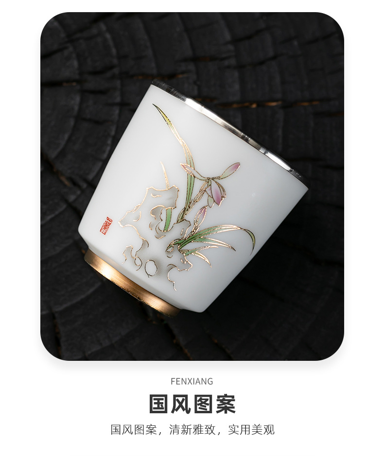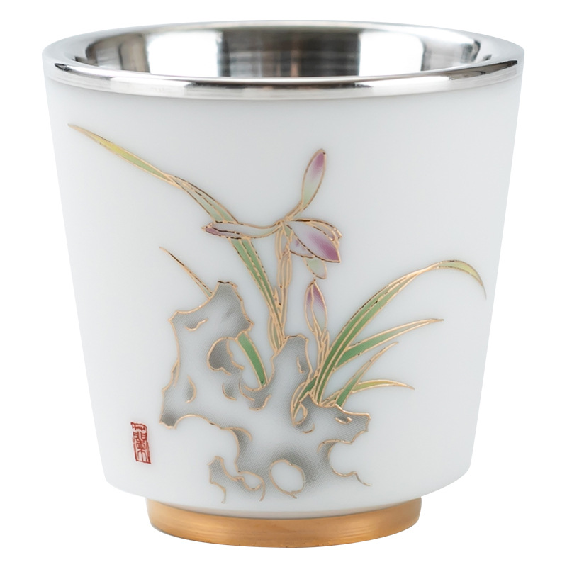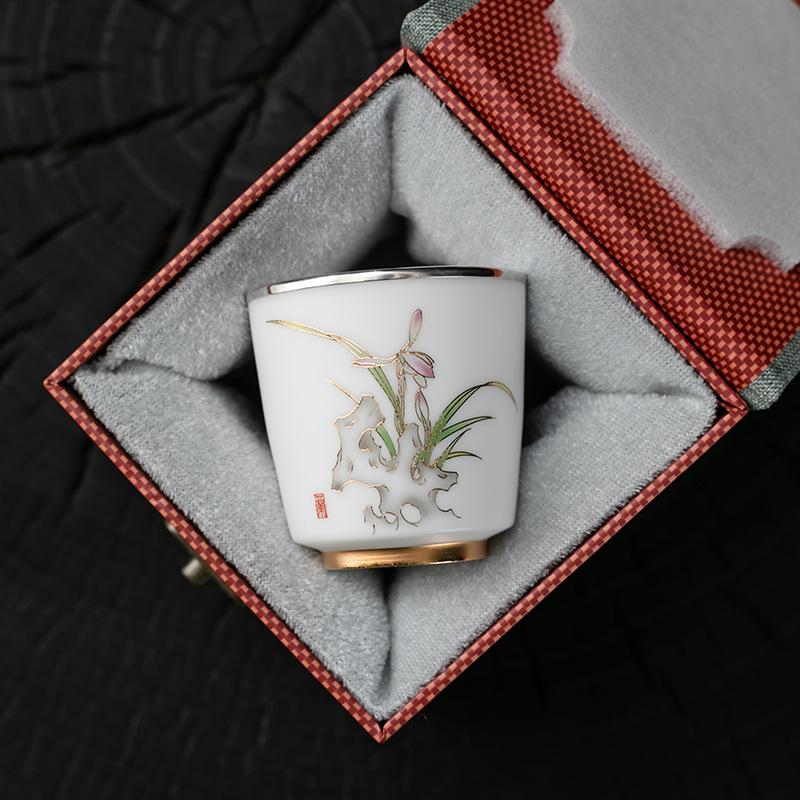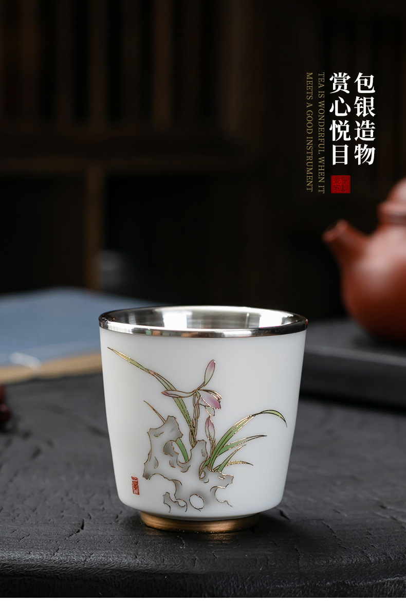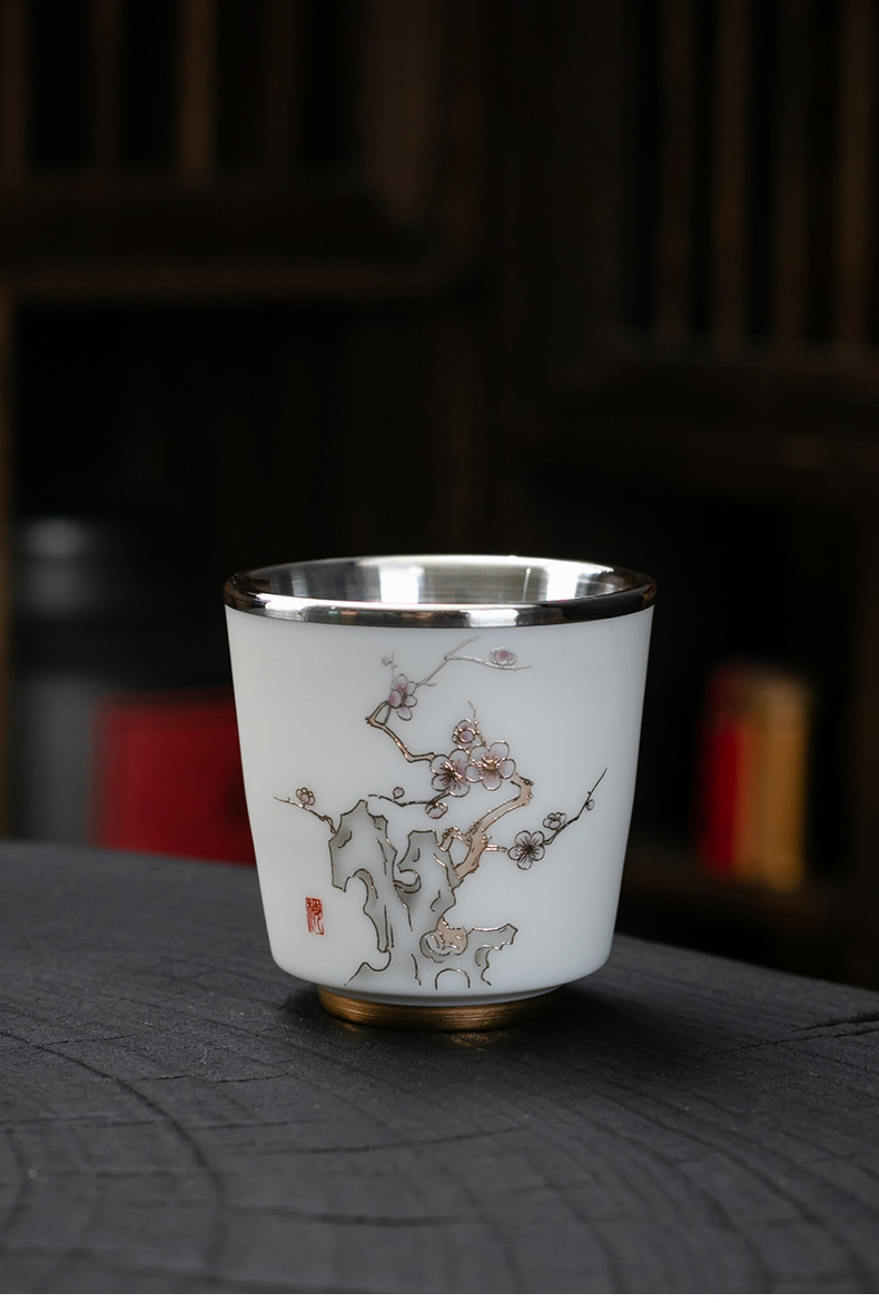 세라믹 가방 실버 컵 999 스털링 실버 마스터 컵 창조적 인 중국 세라믹 실버 차 컵 차 그릇 선물 도매