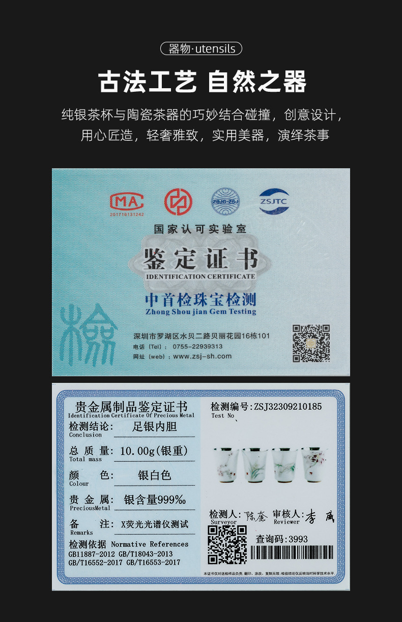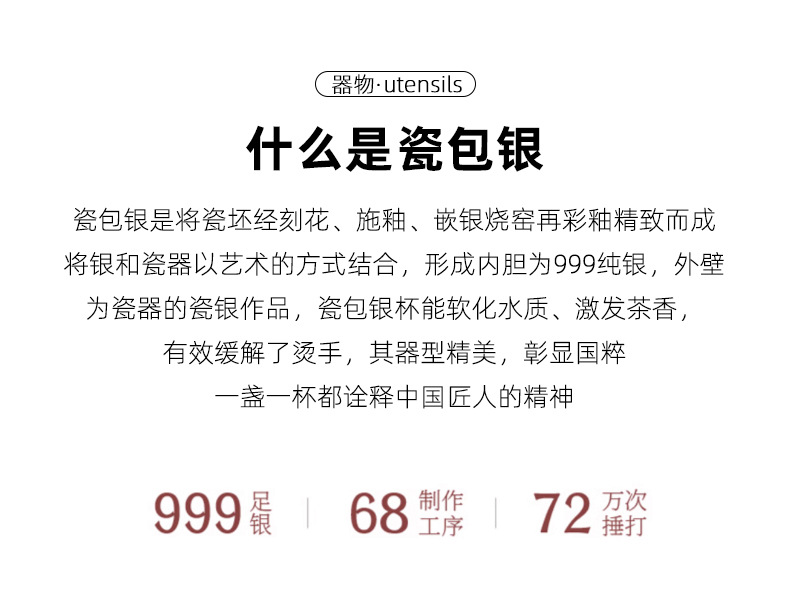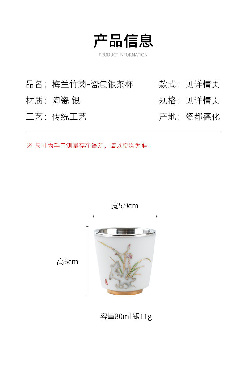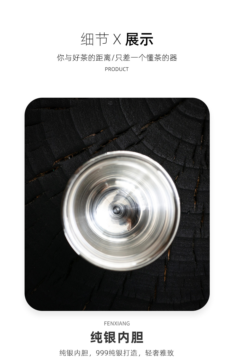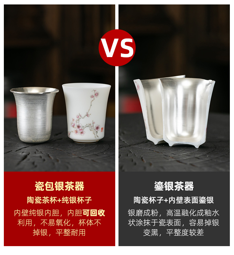 세라믹 가방 실버 컵 999 스털링 실버 마스터 컵 창조적 인 중국 세라믹 실버 차 컵 차 그릇 선물 도매