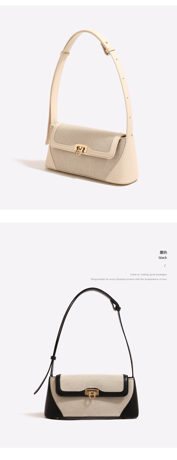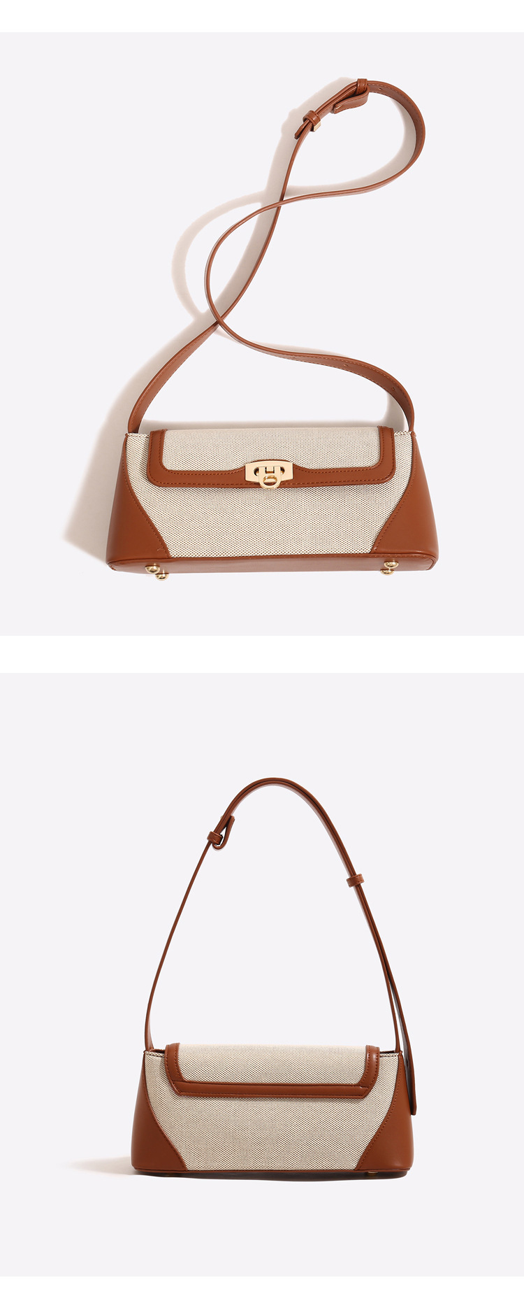 작은 가방 여성의 대외 무역 새로운 틈새 디자인 레트로 언더암 가방 고급 질감 캔버스 스티칭 어깨 크로스 바디 백