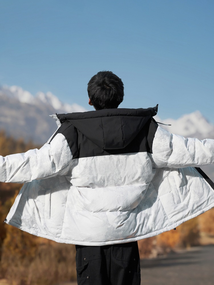 다운 재킷 남자 2024 년 겨울 뉴 화이트 덕 다운 후드 비즈니스 남자의 따뜻한 두꺼운 캐주얼 남성 자켓