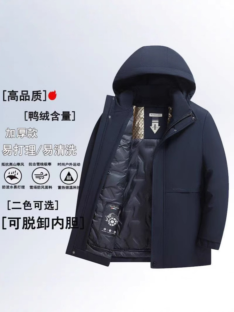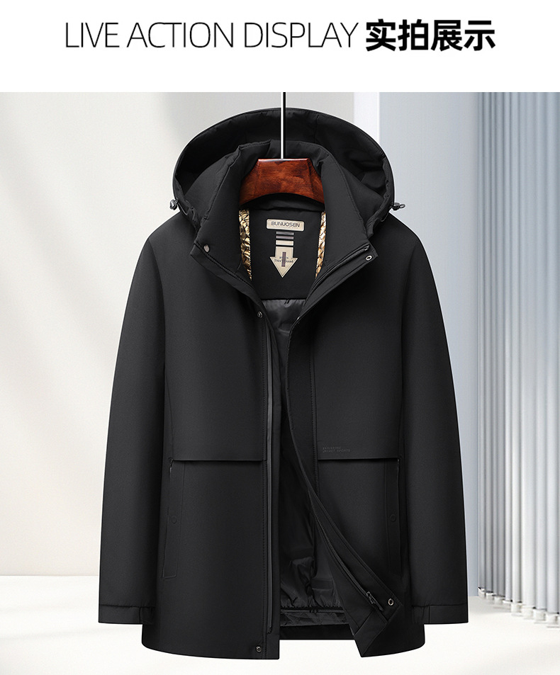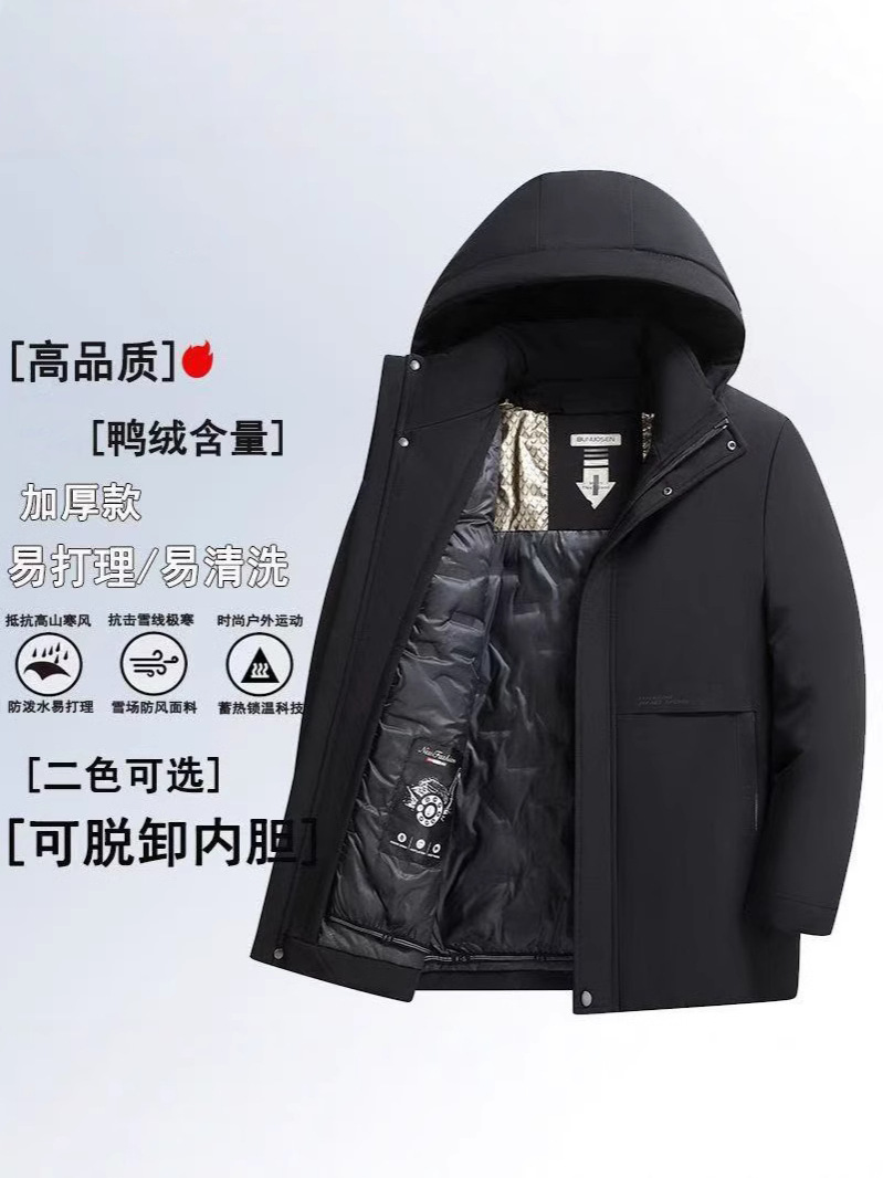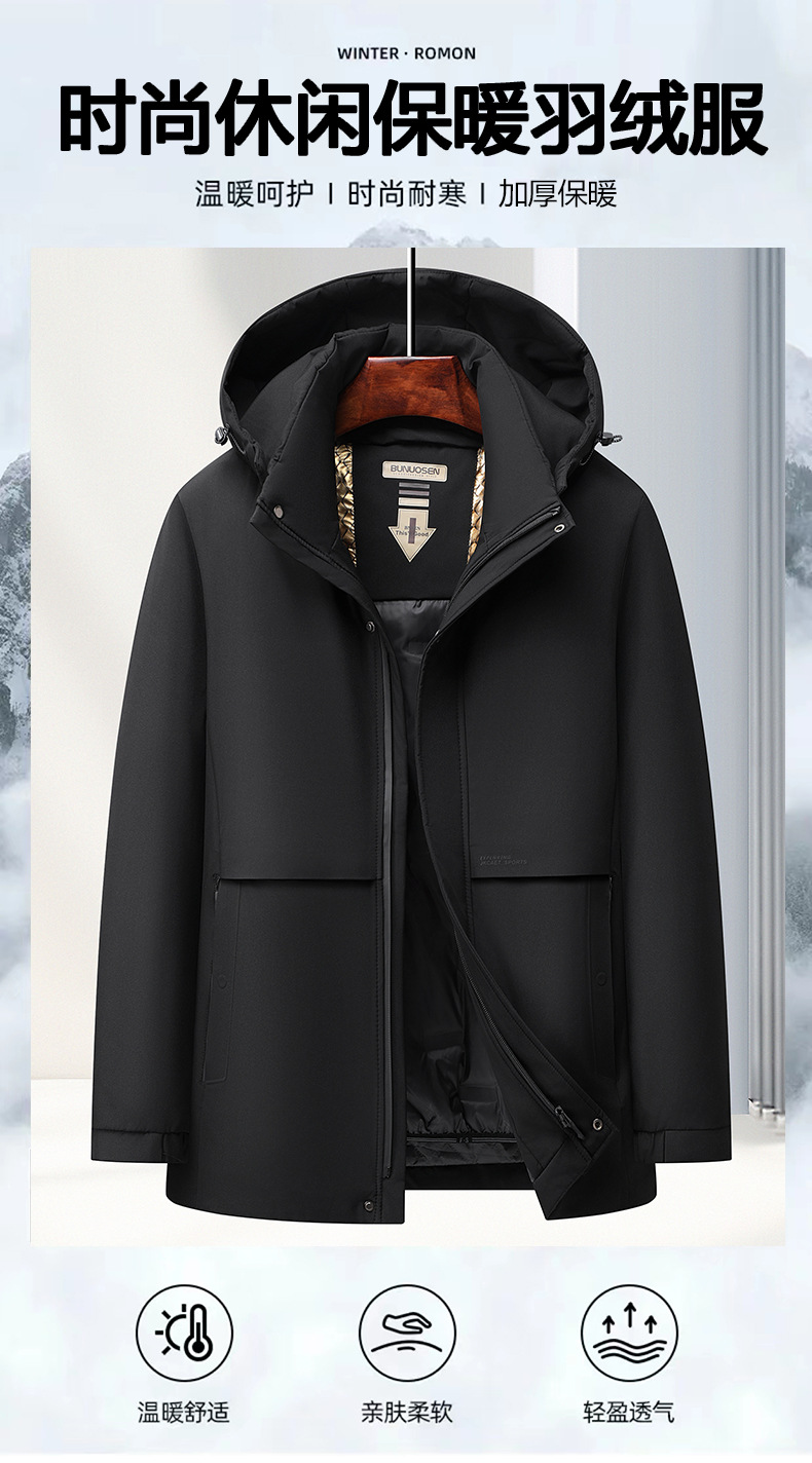 중년 및 노인을위한 남성용 짧은 이동식 다운 자켓 아빠를위한 두꺼운 따뜻한 흰색 오리 다운 재킷