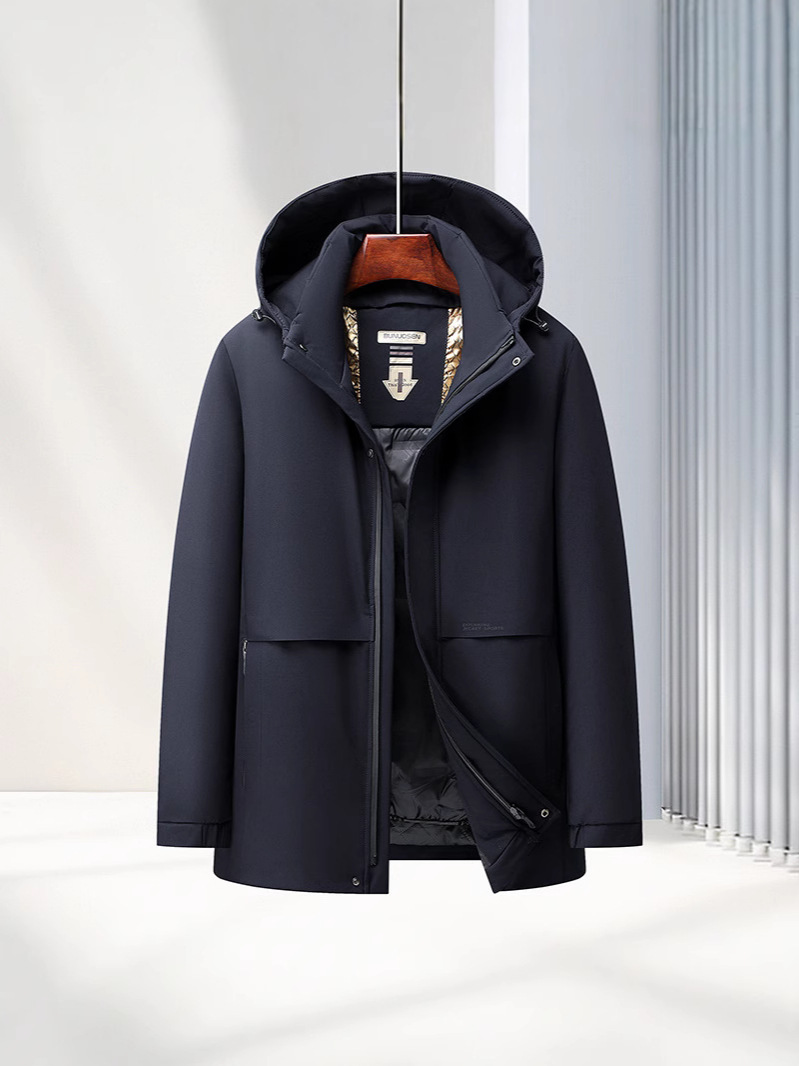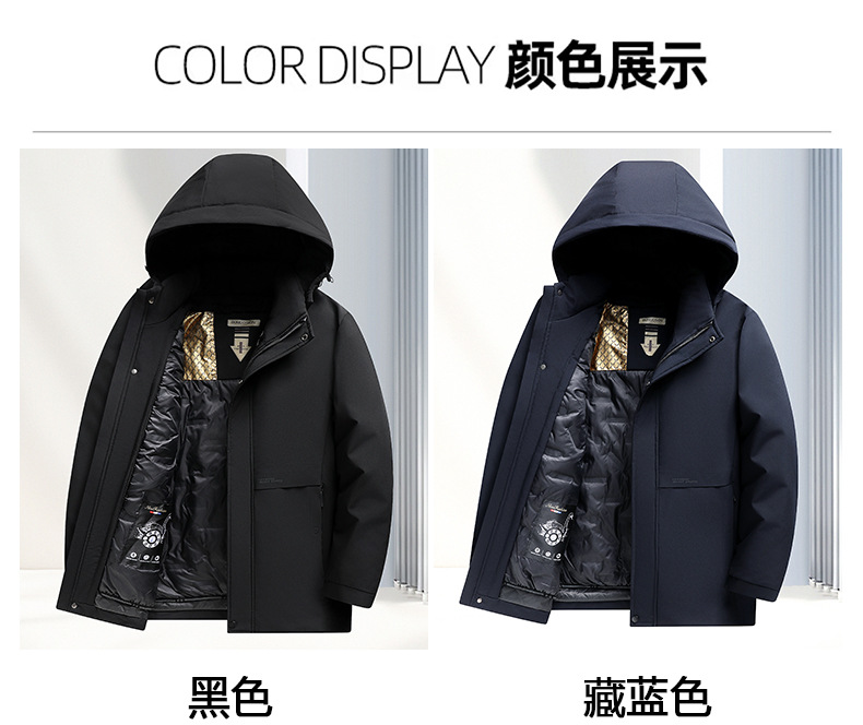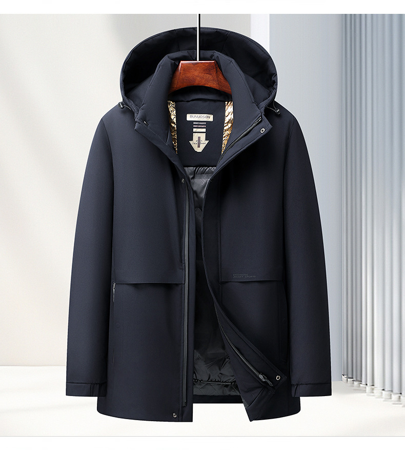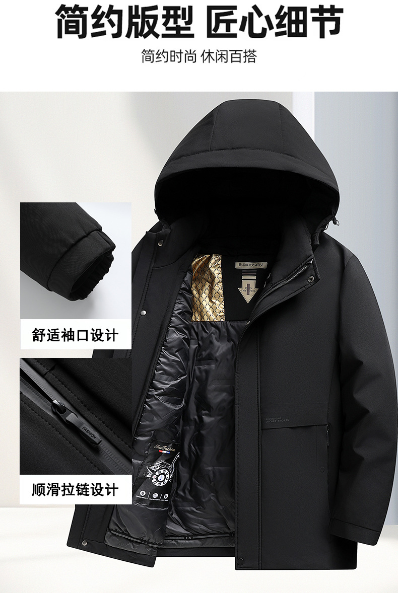 중년 및 노인을위한 남성용 짧은 이동식 다운 자켓 아빠를위한 두꺼운 따뜻한 흰색 오리 다운 재킷