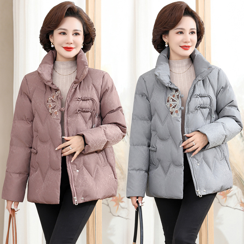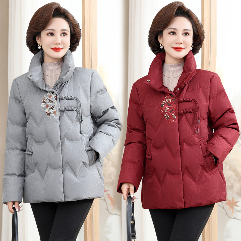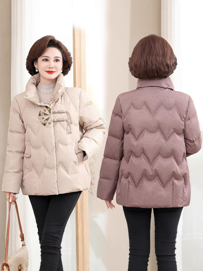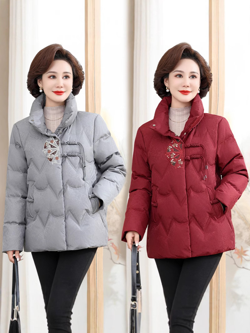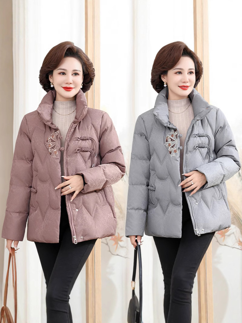 중년 어머니 겨울 서양식 고귀한 다운 재킷 여성의 짧은 24 새로운 중년 및 노인 기질 코트 90 오리 세트