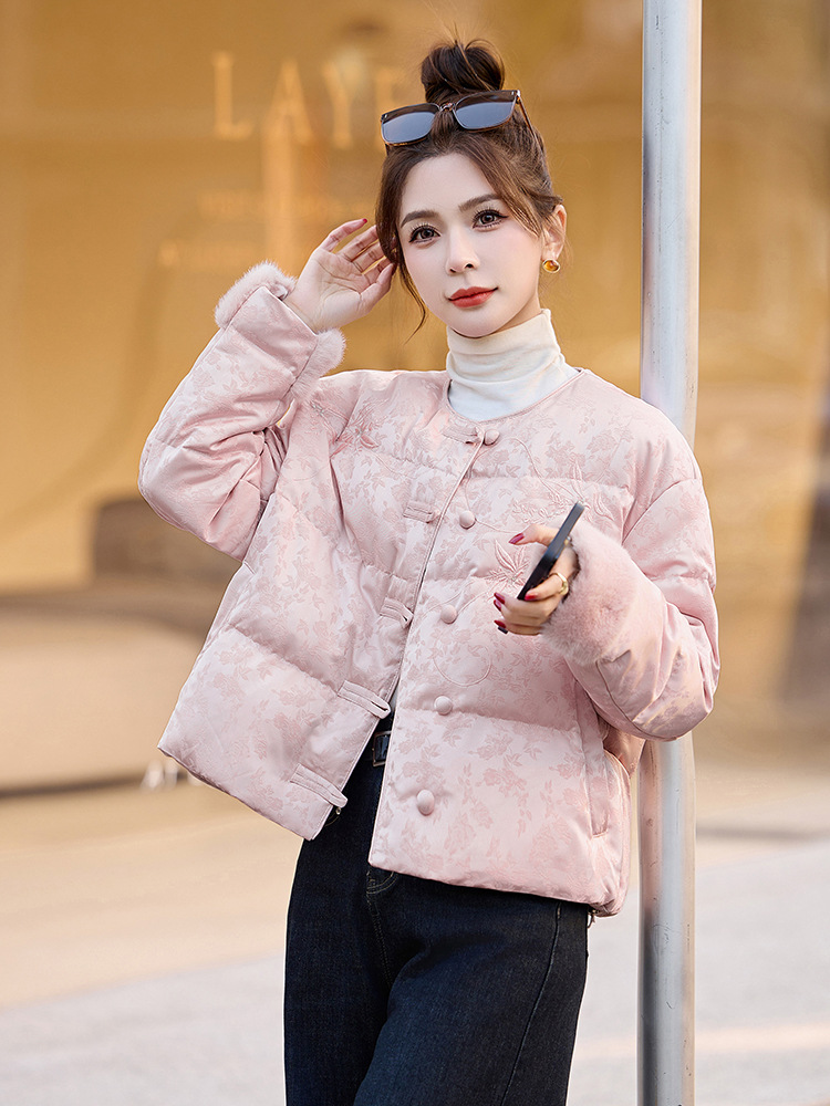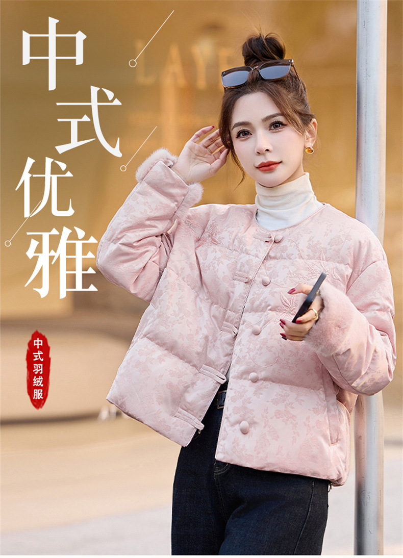 여성용 다운 재킷 겨울 신상 모피 패치워크 자카드 화이트 덕다운 패셔너블하고 따뜻한 코트 YE6335