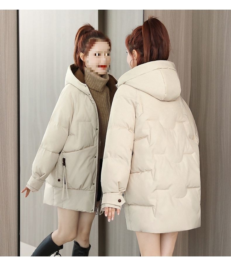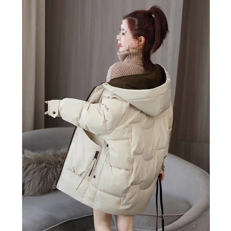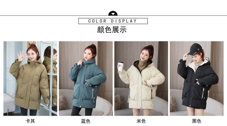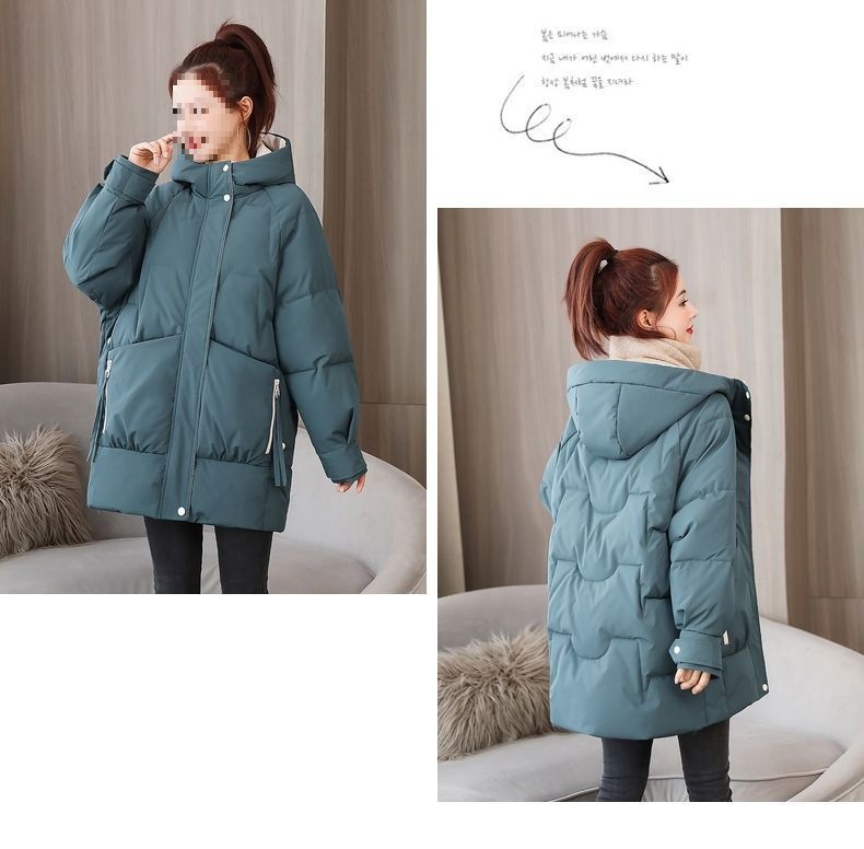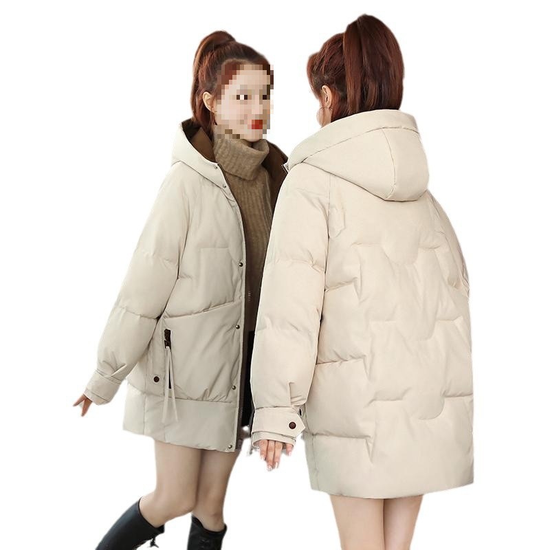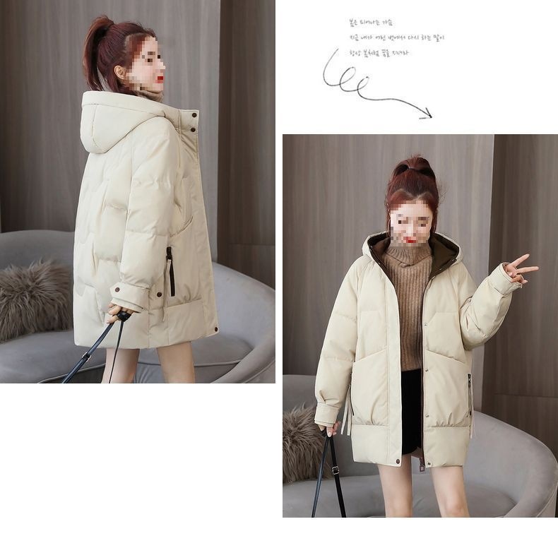 새로운 고급 다운 코튼 패딩 재킷 여성용 중간 길이의 코튼 패딩 2025 한국 스타일 루즈 한 우아한 코튼 패딩 코트 후드 코트