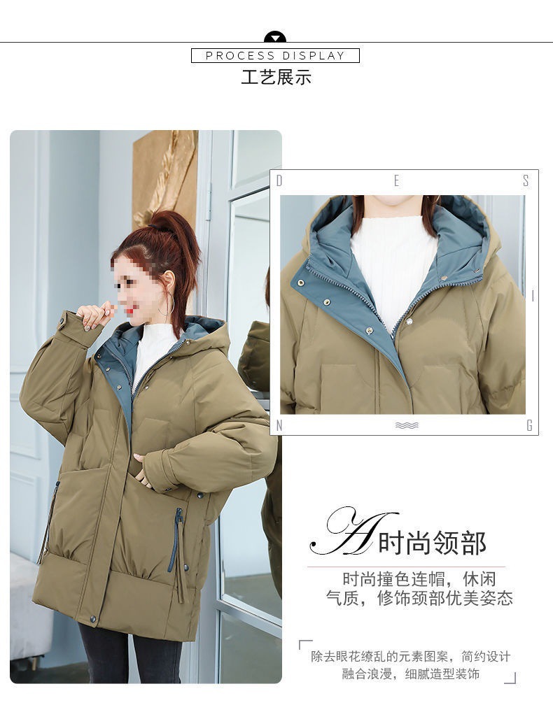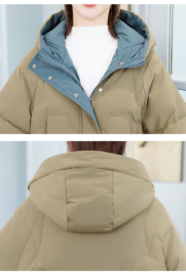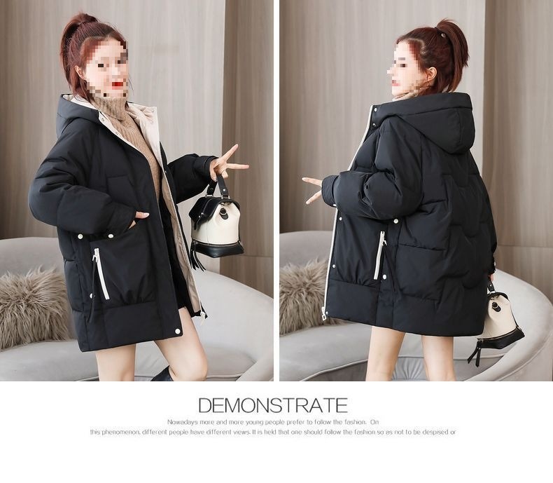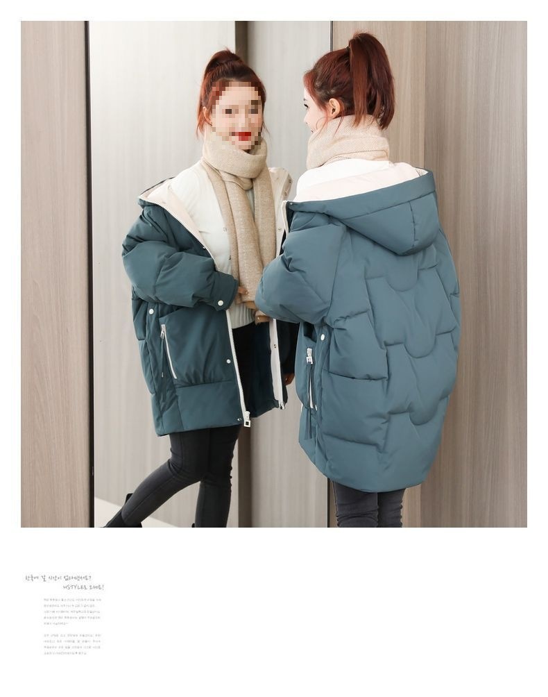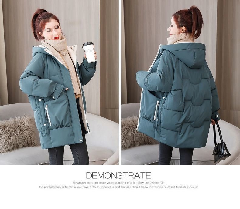 새로운 고급 다운 코튼 패딩 재킷 여성용 중간 길이의 코튼 패딩 2025 한국 스타일 루즈 한 우아한 코튼 패딩 코트 후드 코트
