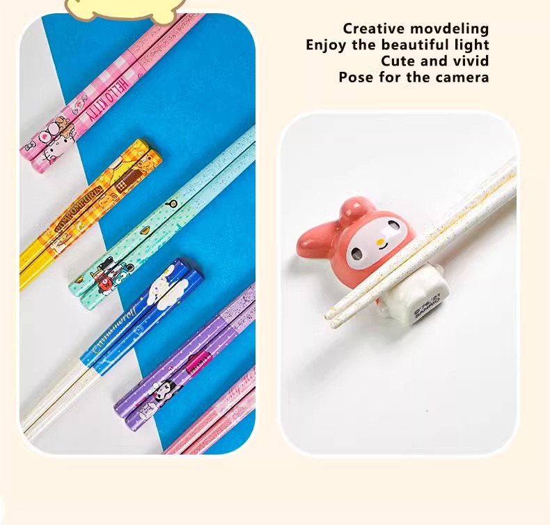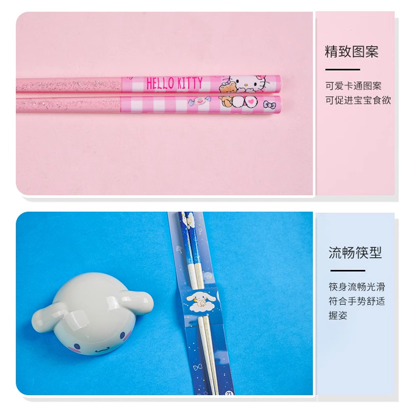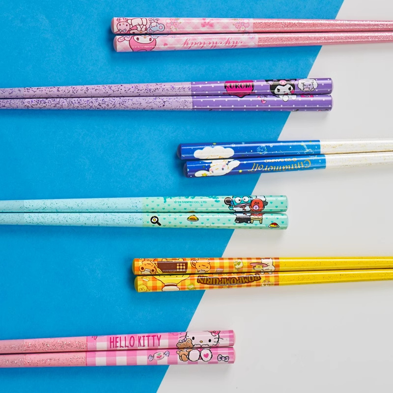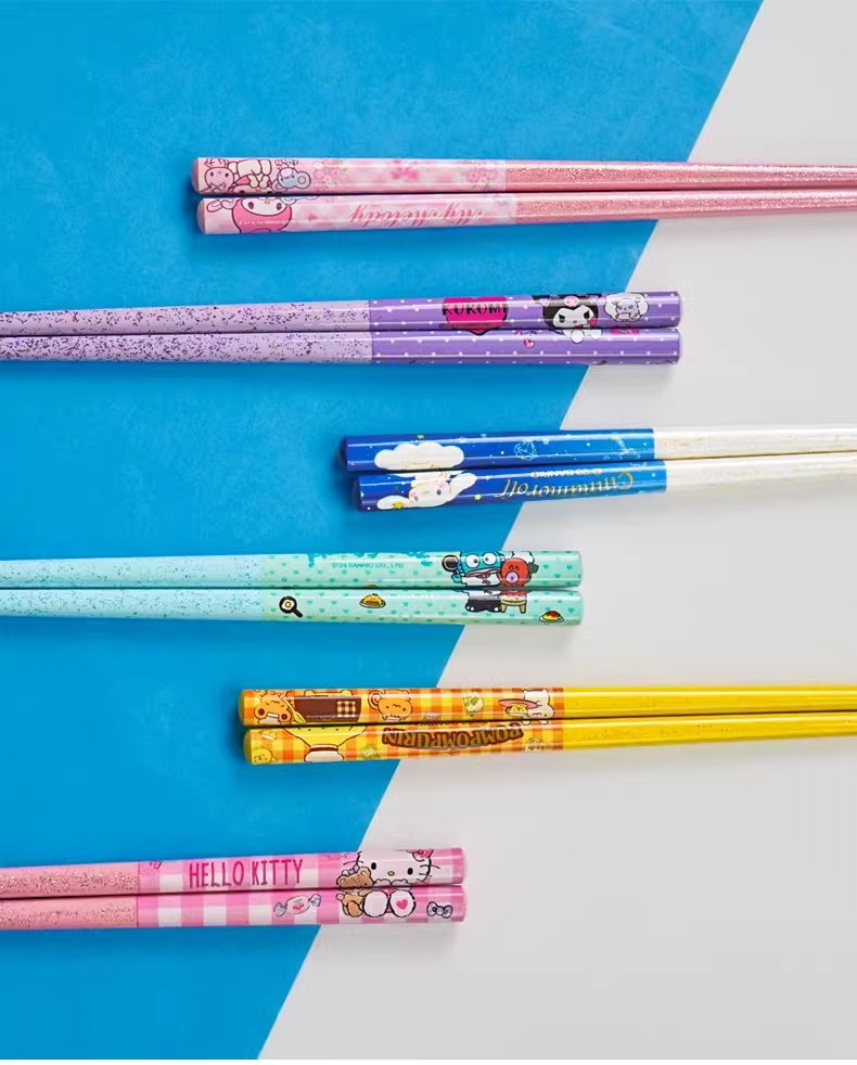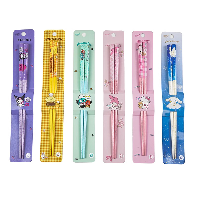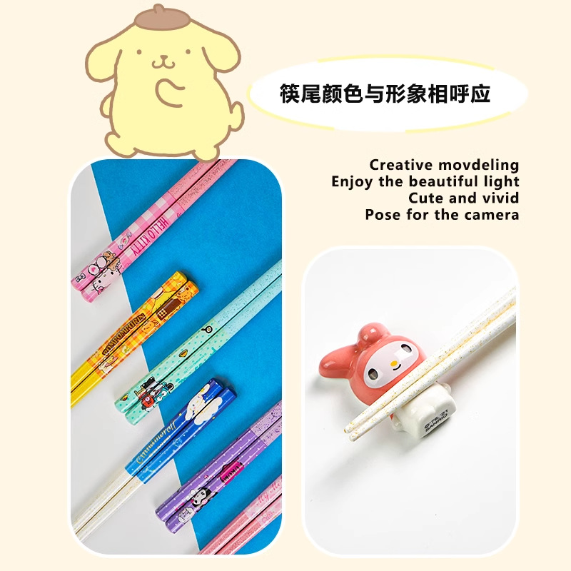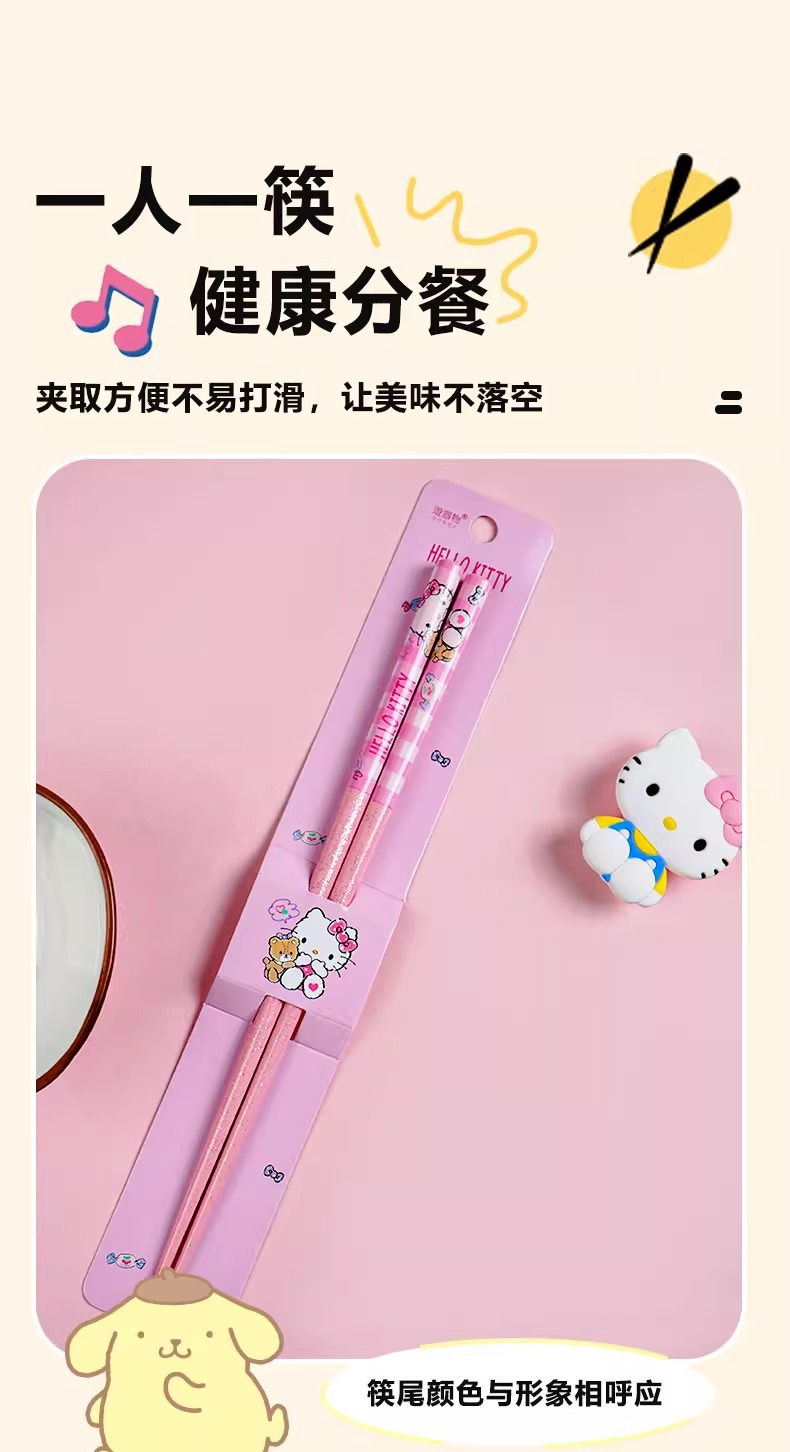 산리오 정품 귀여운 만화 소녀의 심장 부드러운 자연 대나무 나무 비 슬립 가정용 젓가락 식기 높은 모양 귀여운