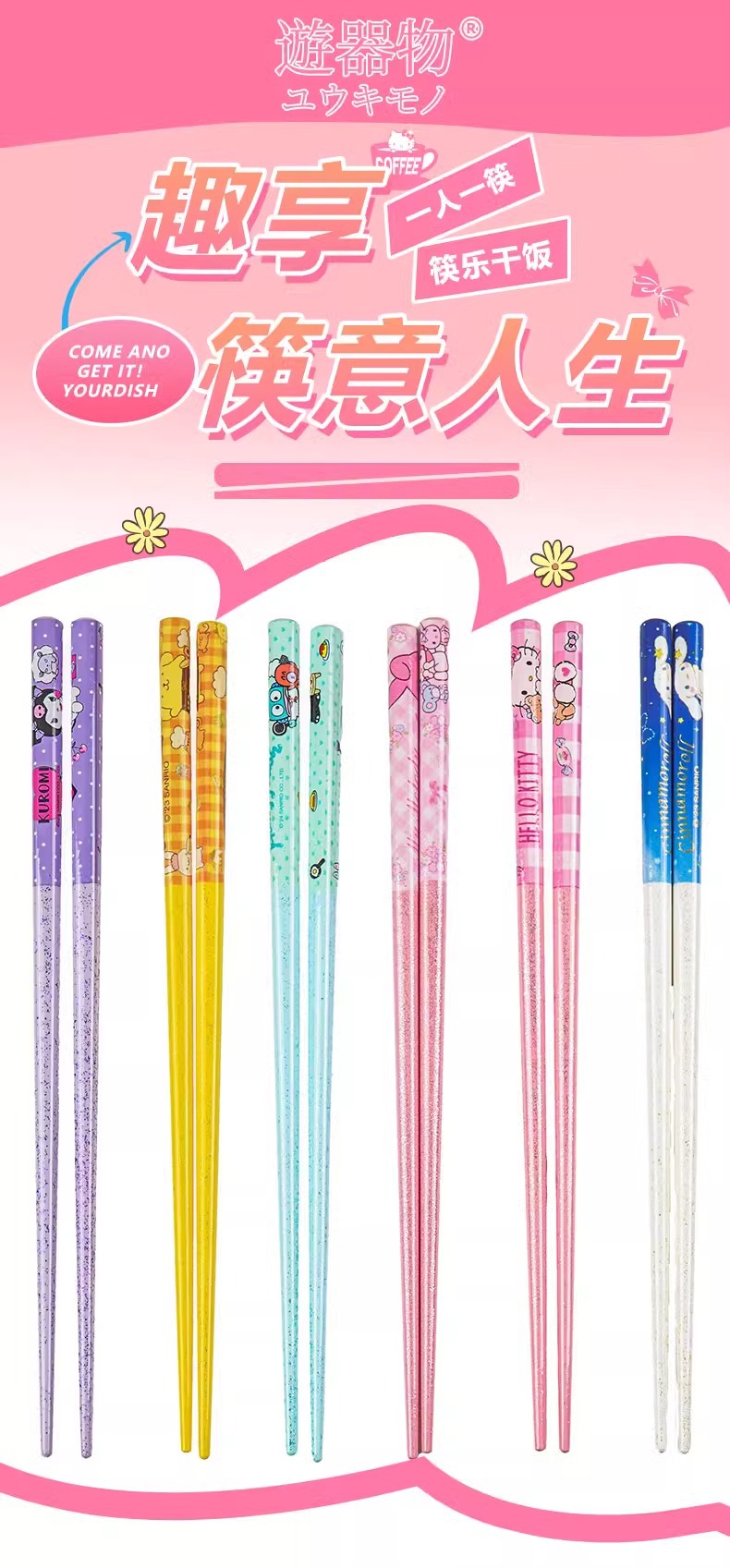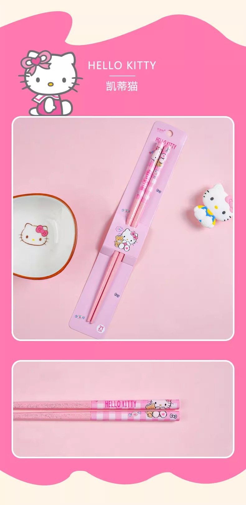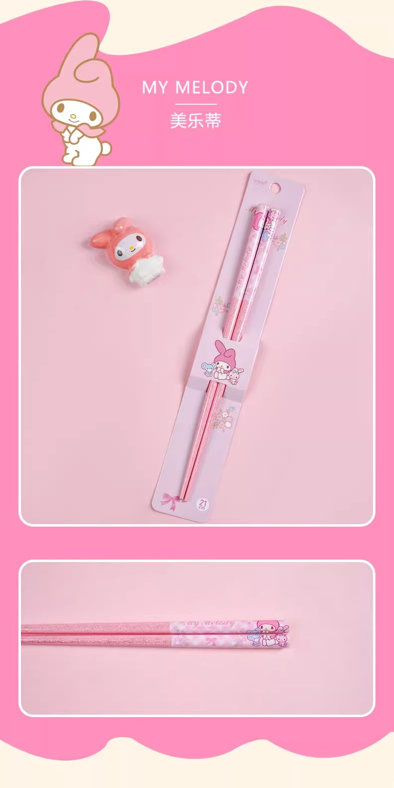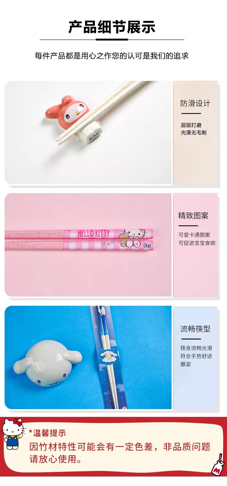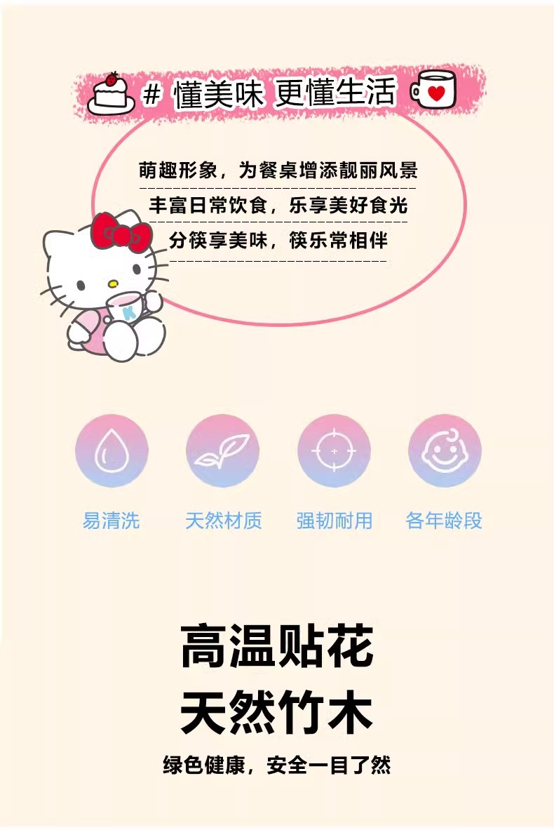 산리오 정품 귀여운 만화 소녀의 심장 부드러운 자연 대나무 나무 비 슬립 가정용 젓가락 식기 높은 모양 귀여운