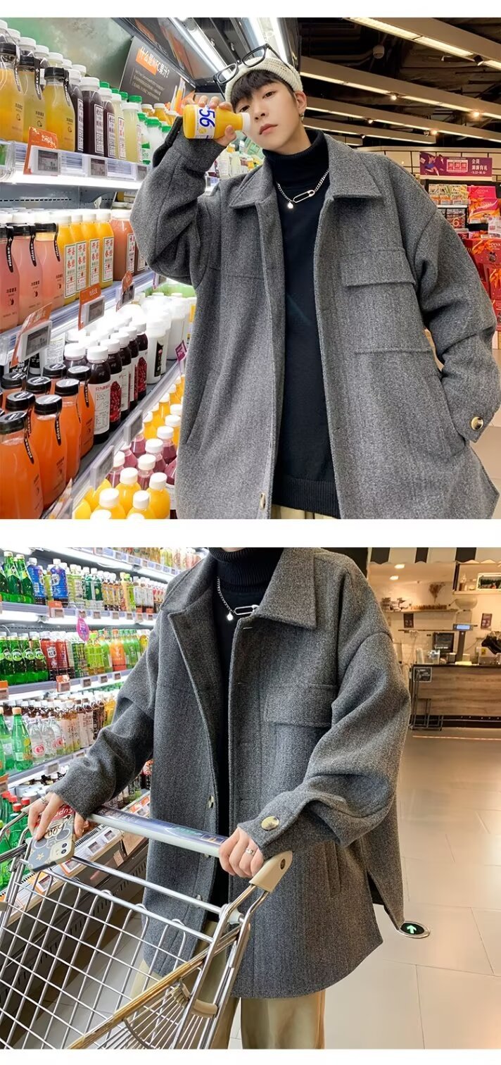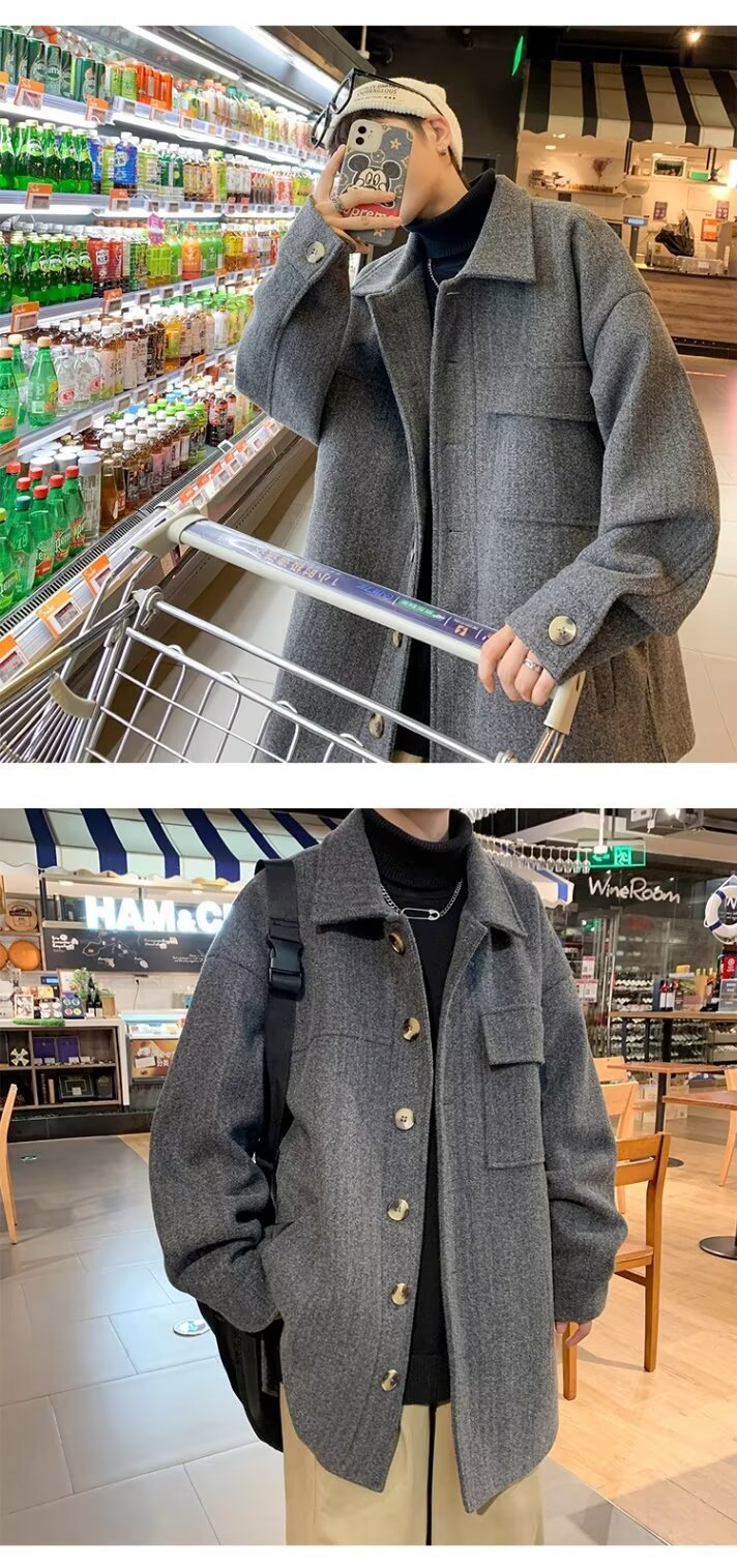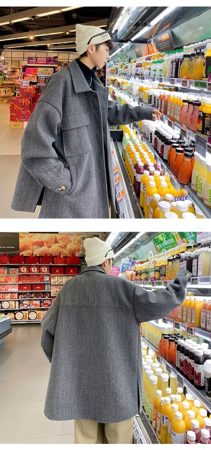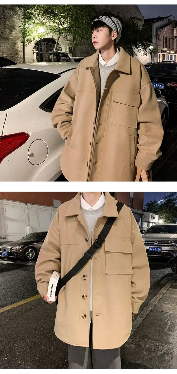 모직 코트 남자 겨울 두꺼운 따뜻한 솔리드 컬러 라이트 성숙한 스타일 한국 패셔너블 코트 트렌디 브랜드 인스타그램 커플 코트